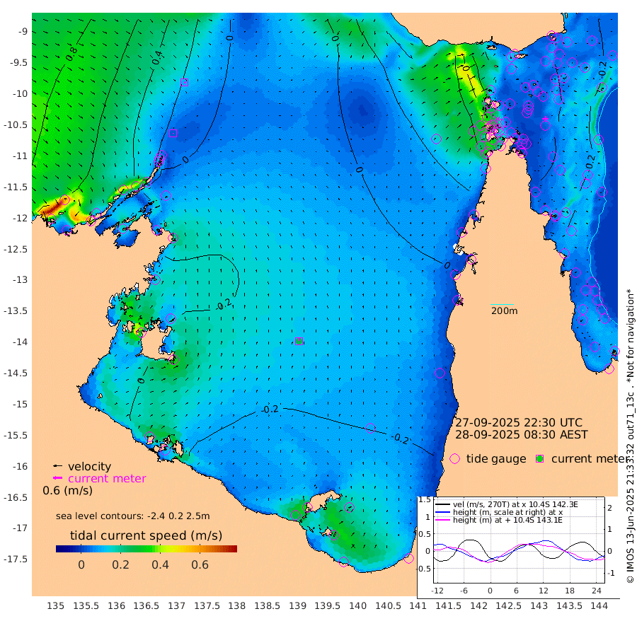 3cm/s 167T +3cm/s rms + 7cm/s -42T. ARA-GOC87 57m 25cm/s 3T +3cm/s rms + 2cm/s -2T. ARA-GOC87 60m 9cm/s 136T +2cm/s rms + 3cm/s 61T. ARA-GOC87 47m -42cm Daru -36cm Bobo Island -17cm Meer Island Barge -21cm Bramble Cay -31cm Unnamed Cay -27cm Pearce Cay -21cm Stephens Island -24cm Merrie England Shoals -37cm Mutacomal Reef -30cm Darnley Island Barge -13cm East Cay -38cm Yorke Island Barge -25cm Rennel Island -36cm Aureed Island -38cm Dungeness Reef -63cm Zagai Island -51cm Yam Island -89cm Dauan Island -96cm Saibai Island -87cm Phipi Reef -76cm Warrior Reef - West -49cm Mabuiag Island Barge -19cm Half Way Island -35cm Coconut Island -27cm Dugong Islet -38cm Poll Island -32cm Kirkcaldie Reef -45cm Suarji Island -52cm Sue Islet 7cm Hawkesbury Island -35cm Alert Patches -32cm Twin Island -15cm Badu Island -40cm St Pauls (Moa Island) -2cm Kubin (Moa Island) -25cm Ince Point -15cm Thursday Island -19cm Nardana Patches -10cm Turtle Head 7cm Round Island 12cm Goods Island 30cm Booby Island 35cm White Rocks Area 35cm Carpentaria -26cm Papou Point 34cm Bampfield Head 33cm Crab Island 30cm Red Wallis Island 8cm Packe Island -22cm Harrington Reef 17cm Herald Camp -18cm Sharp Point -4cm Red Island Point -12cm Possession Island -35cm Alpha Rock -31cm Frederick Point -35cm Wyborn Reef Light -37cm Tetley Island -23cm Triangle Reef -16cm Turtle Head Island -13cm Maclennan Cay -8cm Raine Island -27cm Mcsweeny Reef -29cm Collette Reef -23cm Shadwell Reef -29cm Hannibal Island -16cm Round Point 38cm Vrilya Point -15cm Cape Grenville -13cm Hicks Island -28cm Sir Charles Hardy Island -4cm Harvey Island -14cm Kay Reef -15cm Rocky Island -16cm Chapman Island -14cm Ham Reef -14cm Jubilee Reef -8cm Night Island -11cm Unnamed Reef No. 3 -10cm Morris Island -8cm 1st 3 Mile Opening -10cm Creech Reef -7cm Fife Island -12cm Eden Reef -8cm Stanley Island -4cm Normanby River 68cm Yabooma Island 57cm Hutchison River 60cm Elcho Island 61cm North West Crocodile Island 23cm Cape Wessel 45cm Stevens Island -28cm Guluwuru Island 39cm Hopeful Bay 36cm Auster Point 40cm Two Island Bay 21cm Cadell Strait -147cm Mallison Island -16cm Melville Bay (Gove Harbour) -12cm Truant Island -18cm Cape Arnhem -15cm Cape Grey -14cm Hawk Island 7cm Milner Bay (Groote Eylandt) 2cm Cape Beatrice 6cm West Island 11cm Centre Island -34cm Mornington Island -33cm West Wellesley Islands -58cm Bountiful Island -38cm Albert River Mouth -38cm Sweers Island -38cm Karumba -43cm Nassau River Offshore -42cm Christmas Creek -19cm Archer River -11cm Boyd Point -10cm Weipa (Humbug Point) 17cm Pennefather River 21cm Cullen Point
