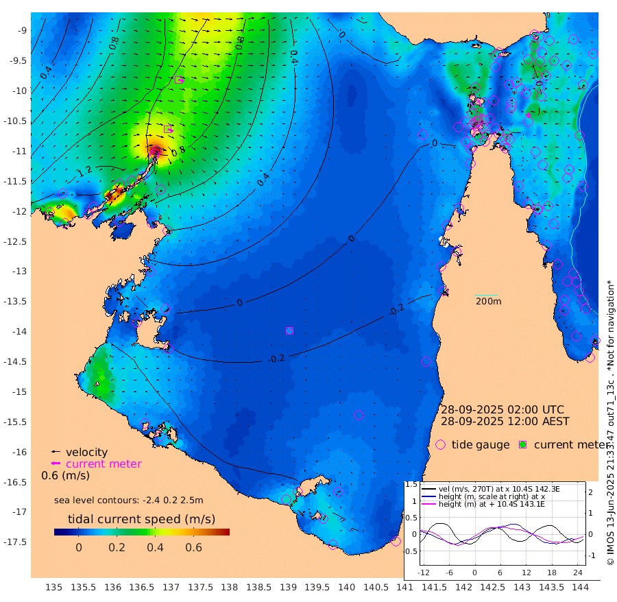39cm/s 114T +3cm/s rms + 7cm/s -42T. ARA-GOC87 57m 7cm/s 23T +3cm/s rms + 2cm/s -2T. ARA-GOC87 60m 38cm/s 106T +2cm/s rms + 3cm/s 61T. ARA-GOC87 47m 32cm Daru 30cm Bobo Island 12cm Meer Island Barge 18cm Bramble Cay 25cm Unnamed Cay 26cm Pearce Cay 21cm Stephens Island 20cm Merrie England Shoals 25cm Mutacomal Reef 17cm Darnley Island Barge 10cm East Cay 21cm Yorke Island Barge 24cm Rennel Island 19cm Aureed Island 30cm Dungeness Reef 39cm Zagai Island 36cm Yam Island 44cm Dauan Island 29cm Saibai Island 48cm Phipi Reef 35cm Warrior Reef - West 36cm Mabuiag Island Barge 23cm Half Way Island 34cm Coconut Island 21cm Dugong Islet 33cm Poll Island 30cm Kirkcaldie Reef 30cm Suarji Island 25cm Sue Islet 54cm Hawkesbury Island 34cm Alert Patches 35cm Twin Island 60cm Badu Island 40cm St Pauls (Moa Island) 54cm Kubin (Moa Island) 37cm Ince Point 39cm Thursday Island 39cm Nardana Patches 43cm Turtle Head 60cm Round Island 48cm Goods Island 43cm Booby Island 39cm White Rocks Area 13cm Carpentaria 40cm Papou Point 65cm Bampfield Head 40cm Crab Island 35cm Red Wallis Island 45cm Packe Island 25cm Harrington Reef 50cm Herald Camp 4cm Sharp Point 33cm Red Island Point 47cm Possession Island 26cm Alpha Rock 33cm Frederick Point 37cm Wyborn Reef Light 38cm Tetley Island 13cm Triangle Reef 49cm Turtle Head Island 8cm Maclennan Cay 10cm Raine Island 20cm Mcsweeny Reef 16cm Collette Reef 12cm Shadwell Reef 18cm Hannibal Island 19cm Round Point 27cm Vrilya Point 8cm Cape Grenville 15cm Hicks Island 6cm Sir Charles Hardy Island 4cm Harvey Island 3cm Kay Reef 6cm Rocky Island 2cm Chapman Island 0cm Ham Reef 6cm Jubilee Reef 6cm Night Island -2cm Unnamed Reef No. 3 7cm Morris Island 12cm 1st 3 Mile Opening 4cm Creech Reef 3cm Fife Island 6cm Eden Reef 3cm Stanley Island 2cm Normanby River 152cm Yabooma Island 182cm Hutchison River 150cm Elcho Island 140cm North West Crocodile Island 102cm Cape Wessel 146cm Stevens Island 105cm Guluwuru Island 125cm Hopeful Bay 120cm Auster Point 125cm Two Island Bay 163cm Cadell Strait 83cm Mallison Island 98cm Melville Bay (Gove Harbour) 107cm Truant Island 65cm Cape Arnhem 31cm Cape Grey 17cm Hawk Island -17cm Milner Bay (Groote Eylandt) -35cm Cape Beatrice -82cm West Island -78cm Centre Island -80cm Mornington Island -92cm West Wellesley Islands -92cm Bountiful Island -84cm Albert River Mouth -86cm Sweers Island -82cm Karumba -66cm Nassau River Offshore -43cm Christmas Creek -13cm Archer River -2cm Boyd Point 1cm Weipa (Humbug Point) 15cm Pennefather River 18cm Cullen Point