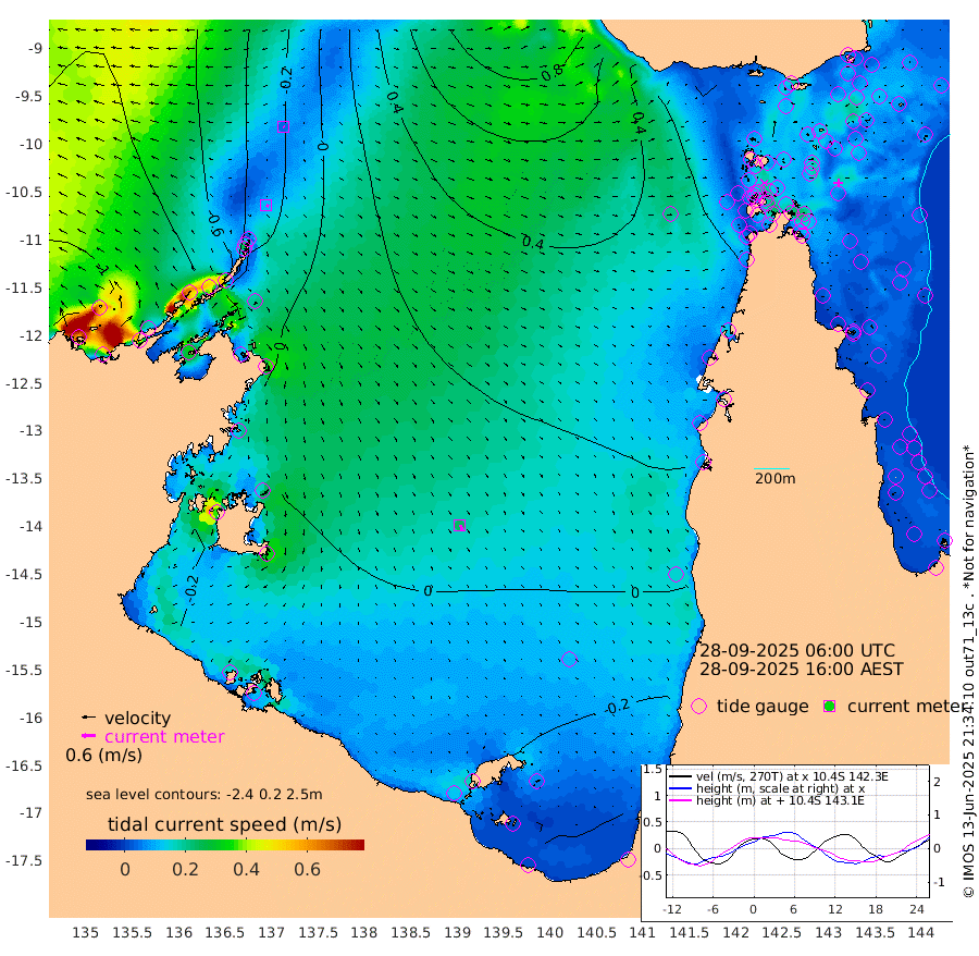 12cm/s 114T +3cm/s rms + 7cm/s -42T. ARA-GOC87 57m 23cm/s 153T +3cm/s rms + 2cm/s -2T. ARA-GOC87 60m 4cm/s 134T +2cm/s rms + 3cm/s 61T. ARA-GOC87 47m 25cm Daru 25cm Bobo Island 31cm Meer Island Barge 29cm Bramble Cay 29cm Unnamed Cay 22cm Pearce Cay 24cm Stephens Island 29cm Merrie England Shoals 27cm Mutacomal Reef 35cm Darnley Island Barge 28cm East Cay 33cm Yorke Island Barge 19cm Rennel Island 28cm Aureed Island 18cm Dungeness Reef 27cm Zagai Island 18cm Yam Island 30cm Dauan Island 45cm Saibai Island 23cm Phipi Reef 27cm Warrior Reef - West 24cm Mabuiag Island Barge 18cm Half Way Island 25cm Coconut Island 18cm Dugong Islet 18cm Poll Island 15cm Kirkcaldie Reef 16cm Suarji Island 32cm Sue Islet 18cm Hawkesbury Island 22cm Alert Patches 19cm Twin Island 17cm Badu Island 17cm St Pauls (Moa Island) 12cm Kubin (Moa Island) 17cm Ince Point 17cm Thursday Island 17cm Nardana Patches 15cm Turtle Head 18cm Round Island 14cm Goods Island 19cm Booby Island 6cm White Rocks Area 43cm Carpentaria 11cm Papou Point 36cm Bampfield Head 14cm Crab Island 17cm Red Wallis Island 18cm Packe Island 16cm Harrington Reef 26cm Herald Camp 7cm Sharp Point 10cm Red Island Point 18cm Possession Island 25cm Alpha Rock 20cm Frederick Point 28cm Wyborn Reef Light 28cm Tetley Island 33cm Triangle Reef 19cm Turtle Head Island 26cm Maclennan Cay 26cm Raine Island 28cm Mcsweeny Reef 34cm Collette Reef 35cm Shadwell Reef 35cm Hannibal Island 29cm Round Point 24cm Vrilya Point 32cm Cape Grenville 26cm Hicks Island 39cm Sir Charles Hardy Island 8cm Harvey Island 36cm Kay Reef 31cm Rocky Island 39cm Chapman Island 37cm Ham Reef 32cm Jubilee Reef 27cm Night Island 35cm Unnamed Reef No. 3 29cm Morris Island 28cm 1st 3 Mile Opening 31cm Creech Reef 27cm Fife Island 35cm Eden Reef 33cm Stanley Island 26cm Normanby River -108cm Yabooma Island -119cm Hutchison River -109cm Elcho Island -115cm North West Crocodile Island -30cm Cape Wessel -75cm Stevens Island 2cm Guluwuru Island -62cm Hopeful Bay -49cm Auster Point -54cm Two Island Bay -68cm Cadell Strait 181cm Mallison Island -10cm Melville Bay (Gove Harbour) -4cm Truant Island 3cm Cape Arnhem -13cm Cape Grey -14cm Hawk Island -33cm Milner Bay (Groote Eylandt) -39cm Cape Beatrice -41cm West Island -36cm Centre Island -40cm Mornington Island -40cm West Wellesley Islands -58cm Bountiful Island -107cm Albert River Mouth -98cm Sweers Island -97cm Karumba -16cm Nassau River Offshore 13cm Christmas Creek 26cm Archer River 33cm Boyd Point 26cm Weipa (Humbug Point) 26cm Pennefather River 30cm Cullen Point