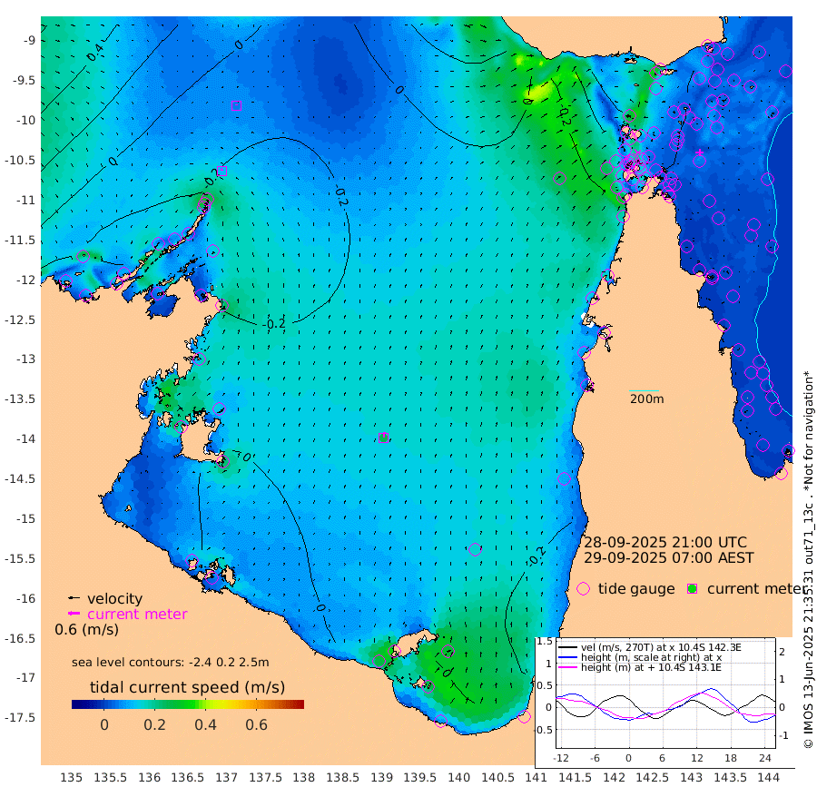 12cm/s -25T +3cm/s rms + 7cm/s -42T. ARA-GOC87 57m 26cm/s 5T +3cm/s rms + 2cm/s -2T. ARA-GOC87 60m 6cm/s -1T +2cm/s rms + 3cm/s 61T. ARA-GOC87 47m -59cm Daru -49cm Bobo Island -28cm Meer Island Barge -32cm Bramble Cay -45cm Unnamed Cay -47cm Pearce Cay -38cm Stephens Island -34cm Merrie England Shoals -48cm Mutacomal Reef -39cm Darnley Island Barge -24cm East Cay -49cm Yorke Island Barge -45cm Rennel Island -46cm Aureed Island -66cm Dungeness Reef -81cm Zagai Island -78cm Yam Island -123cm Dauan Island -106cm Saibai Island -130cm Phipi Reef -96cm Warrior Reef - West -85cm Mabuiag Island Barge -41cm Half Way Island -55cm Coconut Island -49cm Dugong Islet -64cm Poll Island -62cm Kirkcaldie Reef -77cm Suarji Island -66cm Sue Islet -86cm Hawkesbury Island -75cm Alert Patches -68cm Twin Island -96cm Badu Island -81cm St Pauls (Moa Island) -83cm Kubin (Moa Island) -74cm Ince Point -72cm Thursday Island -75cm Nardana Patches -81cm Turtle Head -80cm Round Island -77cm Goods Island -63cm Booby Island -53cm White Rocks Area -16cm Carpentaria -65cm Papou Point -69cm Bampfield Head -46cm Crab Island -51cm Red Wallis Island -71cm Packe Island -45cm Harrington Reef -81cm Herald Camp -20cm Sharp Point -64cm Red Island Point -72cm Possession Island -54cm Alpha Rock -61cm Frederick Point -53cm Wyborn Reef Light -56cm Tetley Island -33cm Triangle Reef -56cm Turtle Head Island -27cm Maclennan Cay -21cm Raine Island -40cm Mcsweeny Reef -37cm Collette Reef -31cm Shadwell Reef -37cm Hannibal Island -30cm Round Point -27cm Vrilya Point -24cm Cape Grenville -29cm Hicks Island -36cm Sir Charles Hardy Island -8cm Harvey Island -18cm Kay Reef -24cm Rocky Island -20cm Chapman Island -18cm Ham Reef -22cm Jubilee Reef -19cm Night Island -14cm Unnamed Reef No. 3 -21cm Morris Island -27cm 1st 3 Mile Opening -21cm Creech Reef -14cm Fife Island -22cm Eden Reef -17cm Stanley Island -13cm Normanby River -39cm Yabooma Island -62cm Hutchison River -37cm Elcho Island -34cm North West Crocodile Island -13cm Cape Wessel -29cm Stevens Island -46cm Guluwuru Island -27cm Hopeful Bay -24cm Auster Point -26cm Two Island Bay -59cm Cadell Strait -43cm Mallison Island -42cm Melville Bay (Gove Harbour) -40cm Truant Island -28cm Cape Arnhem -14cm Cape Grey -7cm Hawk Island 30cm Milner Bay (Groote Eylandt) 30cm Cape Beatrice 57cm West Island 60cm Centre Island 12cm Mornington Island 22cm West Wellesley Islands -13cm Bountiful Island 10cm Albert River Mouth 15cm Sweers Island -1cm Karumba -20cm Nassau River Offshore -39cm Christmas Creek -40cm Archer River -41cm Boyd Point -51cm Weipa (Humbug Point) -25cm Pennefather River -35cm Cullen Point