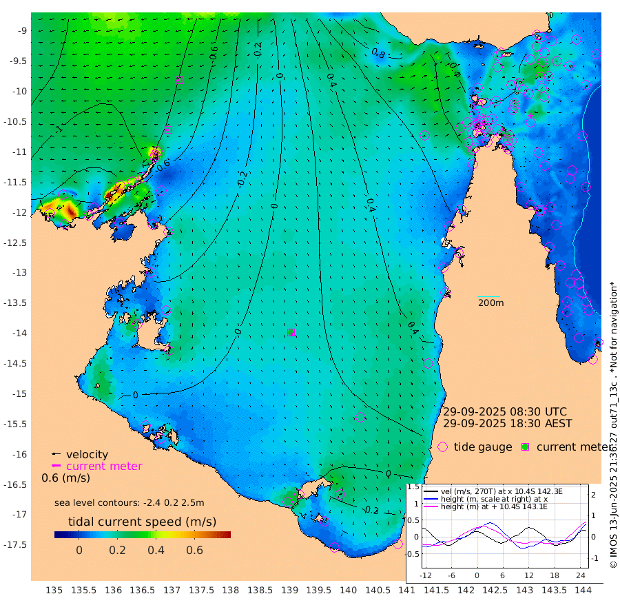 21cm/s -96T +3cm/s rms + 7cm/s -42T. ARA-GOC87 57m 28cm/s 164T +3cm/s rms + 2cm/s -2T. ARA-GOC87 60m 30cm/s -101T +2cm/s rms + 3cm/s 61T. ARA-GOC87 47m 46cm Daru 45cm Bobo Island 50cm Meer Island Barge 56cm Bramble Cay 58cm Unnamed Cay 53cm Pearce Cay 56cm Stephens Island 65cm Merrie England Shoals 59cm Mutacomal Reef 56cm Darnley Island Barge 57cm East Cay 51cm Yorke Island Barge 53cm Rennel Island 52cm Aureed Island 45cm Dungeness Reef 20cm Zagai Island 27cm Yam Island 11cm Dauan Island 19cm Saibai Island 15cm Phipi Reef 26cm Warrior Reef - West 28cm Mabuiag Island Barge 52cm Half Way Island 47cm Coconut Island 54cm Dugong Islet 40cm Poll Island 44cm Kirkcaldie Reef 40cm Suarji Island 43cm Sue Islet 67cm Hawkesbury Island 53cm Alert Patches 47cm Twin Island 45cm Badu Island 37cm St Pauls (Moa Island) 49cm Kubin (Moa Island) 46cm Ince Point 51cm Thursday Island 48cm Nardana Patches 56cm Turtle Head 55cm Round Island 64cm Goods Island 74cm Booby Island 70cm White Rocks Area 83cm Carpentaria 28cm Papou Point 84cm Bampfield Head 55cm Crab Island 75cm Red Wallis Island 70cm Packe Island 57cm Harrington Reef 78cm Herald Camp 8cm Sharp Point 49cm Red Island Point 47cm Possession Island 48cm Alpha Rock 50cm Frederick Point 53cm Wyborn Reef Light 51cm Tetley Island 51cm Triangle Reef 50cm Turtle Head Island 54cm Maclennan Cay 47cm Raine Island 58cm Mcsweeny Reef 59cm Collette Reef 54cm Shadwell Reef 63cm Hannibal Island 63cm Round Point 65cm Vrilya Point 66cm Cape Grenville 54cm Hicks Island 65cm Sir Charles Hardy Island 18cm Harvey Island 68cm Kay Reef 56cm Rocky Island 62cm Chapman Island 58cm Ham Reef 53cm Jubilee Reef 52cm Night Island 62cm Unnamed Reef No. 3 56cm Morris Island 50cm 1st 3 Mile Opening 57cm Creech Reef 58cm Fife Island 61cm Eden Reef 63cm Stanley Island 62cm Normanby River -138cm Yabooma Island -168cm Hutchison River -149cm Elcho Island -146cm North West Crocodile Island -85cm Cape Wessel -128cm Stevens Island -86cm Guluwuru Island -106cm Hopeful Bay -99cm Auster Point -107cm Two Island Bay -146cm Cadell Strait 3cm Mallison Island -79cm Melville Bay (Gove Harbour) -80cm Truant Island -53cm Cape Arnhem -48cm Cape Grey -37cm Hawk Island -42cm Milner Bay (Groote Eylandt) -33cm Cape Beatrice -11cm West Island -10cm Centre Island -12cm Mornington Island -5cm West Wellesley Islands -21cm Bountiful Island -85cm Albert River Mouth -78cm Sweers Island -65cm Karumba 24cm Nassau River Offshore 51cm Christmas Creek 60cm Archer River 63cm Boyd Point 63cm Weipa (Humbug Point) 54cm Pennefather River 68cm Cullen Point