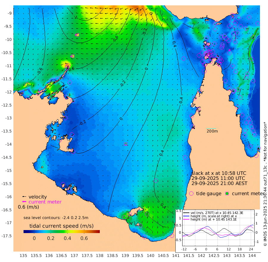 39cm/s -92T +3cm/s rms + 7cm/s -42T. ARA-GOC87 57m 21cm/s -171T +3cm/s rms + 2cm/s -2T. ARA-GOC87 60m 42cm/s -99T +2cm/s rms + 3cm/s 61T. ARA-GOC87 47m 51cm Daru 47cm Bobo Island 26cm Meer Island Barge 35cm Bramble Cay 45cm Unnamed Cay 57cm Pearce Cay 47cm Stephens Island 45cm Merrie England Shoals 54cm Mutacomal Reef 36cm Darnley Island Barge 36cm East Cay 42cm Yorke Island Barge 58cm Rennel Island 53cm Aureed Island 65cm Dungeness Reef 44cm Zagai Island 58cm Yam Island 55cm Dauan Island 40cm Saibai Island 72cm Phipi Reef 58cm Warrior Reef - West 62cm Mabuiag Island Barge 55cm Half Way Island 57cm Coconut Island 64cm Dugong Islet 64cm Poll Island 67cm Kirkcaldie Reef 85cm Suarji Island 53cm Sue Islet 106cm Hawkesbury Island 86cm Alert Patches 79cm Twin Island 89cm Badu Island 77cm St Pauls (Moa Island) 92cm Kubin (Moa Island) 83cm Ince Point 88cm Thursday Island 86cm Nardana Patches 98cm Turtle Head 92cm Round Island 103cm Goods Island 103cm Booby Island 108cm White Rocks Area 69cm Carpentaria 65cm Papou Point 100cm Bampfield Head 79cm Crab Island 103cm Red Wallis Island 105cm Packe Island 72cm Harrington Reef 110cm Herald Camp 17cm Sharp Point 90cm Red Island Point 84cm Possession Island 60cm Alpha Rock 73cm Frederick Point 51cm Wyborn Reef Light 53cm Tetley Island 33cm Triangle Reef 60cm Turtle Head Island 38cm Maclennan Cay 24cm Raine Island 47cm Mcsweeny Reef 40cm Collette Reef 27cm Shadwell Reef 40cm Hannibal Island 43cm Round Point 69cm Vrilya Point 41cm Cape Grenville 37cm Hicks Island 38cm Sir Charles Hardy Island 13cm Harvey Island 33cm Kay Reef 31cm Rocky Island 29cm Chapman Island 26cm Ham Reef 25cm Jubilee Reef 29cm Night Island 29cm Unnamed Reef No. 3 31cm Morris Island 27cm 1st 3 Mile Opening 30cm Creech Reef 33cm Fife Island 26cm Eden Reef 29cm Stanley Island 34cm Normanby River -61cm Yabooma Island -77cm Hutchison River -72cm Elcho Island -62cm North West Crocodile Island -83cm Cape Wessel -90cm Stevens Island -108cm Guluwuru Island -75cm Hopeful Bay -76cm Auster Point -82cm Two Island Bay -104cm Cadell Strait -228cm Mallison Island -84cm Melville Bay (Gove Harbour) -92cm Truant Island -65cm Cape Arnhem -43cm Cape Grey -29cm Hawk Island -27cm Milner Bay (Groote Eylandt) -9cm Cape Beatrice 15cm West Island 12cm Centre Island 33cm Mornington Island 33cm West Wellesley Islands 51cm Bountiful Island 13cm Albert River Mouth 13cm Sweers Island 37cm Karumba 62cm Nassau River Offshore 69cm Christmas Creek 65cm Archer River 62cm Boyd Point 73cm Weipa (Humbug Point) 50cm Pennefather River 70cm Cullen Point