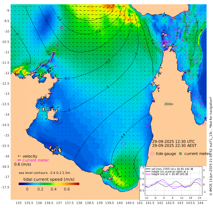 33cm/s -92T +3cm/s rms + 7cm/s -42T. ARA-GOC87 57m 17cm/s -146T +3cm/s rms + 2cm/s -2T. ARA-GOC87 60m 32cm/s -96T +2cm/s rms + 3cm/s 61T. ARA-GOC87 47m 37cm Daru 30cm Bobo Island 2cm Meer Island Barge 8cm Bramble Cay 20cm Unnamed Cay 36cm Pearce Cay 22cm Stephens Island 12cm Merrie England Shoals 29cm Mutacomal Reef 11cm Darnley Island Barge 8cm East Cay 22cm Yorke Island Barge 36cm Rennel Island 34cm Aureed Island 55cm Dungeness Reef 51cm Zagai Island 61cm Yam Island 82cm Dauan Island 59cm Saibai Island 100cm Phipi Reef 69cm Warrior Reef - West 67cm Mabuiag Island Barge 32cm Half Way Island 41cm Coconut Island 43cm Dugong Islet 55cm Poll Island 56cm Kirkcaldie Reef 82cm Suarji Island 43cm Sue Islet 87cm Hawkesbury Island 74cm Alert Patches 68cm Twin Island 85cm Badu Island 76cm St Pauls (Moa Island) 83cm Kubin (Moa Island) 75cm Ince Point 76cm Thursday Island 76cm Nardana Patches 85cm Turtle Head 78cm Round Island 84cm Goods Island 74cm Booby Island 78cm White Rocks Area 22cm Carpentaria 63cm Papou Point 64cm Bampfield Head 56cm Crab Island 70cm Red Wallis Island 81cm Packe Island 48cm Harrington Reef 84cm Herald Camp 18cm Sharp Point 77cm Red Island Point 73cm Possession Island 44cm Alpha Rock 58cm Frederick Point 30cm Wyborn Reef Light 34cm Tetley Island 11cm Triangle Reef 40cm Turtle Head Island 12cm Maclennan Cay 0cm Raine Island 21cm Mcsweeny Reef 12cm Collette Reef 2cm Shadwell Reef 10cm Hannibal Island 11cm Round Point 36cm Vrilya Point 7cm Cape Grenville 11cm Hicks Island 8cm Sir Charles Hardy Island 4cm Harvey Island -3cm Kay Reef 3cm Rocky Island -3cm Chapman Island -4cm Ham Reef -2cm Jubilee Reef 3cm Night Island -4cm Unnamed Reef No. 3 2cm Morris Island 3cm 1st 3 Mile Opening 1cm Creech Reef 2cm Fife Island -6cm Eden Reef -4cm Stanley Island -1cm Normanby River 7cm Yabooma Island 11cm Hutchison River 2cm Elcho Island 13cm North West Crocodile Island -49cm Cape Wessel -32cm Stevens Island -64cm Guluwuru Island -26cm Hopeful Bay -32cm Auster Point -33cm Two Island Bay -28cm Cadell Strait -242cm Mallison Island -44cm Melville Bay (Gove Harbour) -54cm Truant Island -38cm Cape Arnhem -17cm Cape Grey -7cm Hawk Island -9cm Milner Bay (Groote Eylandt) 7cm Cape Beatrice 18cm West Island 13cm Centre Island 54cm Mornington Island 48cm West Wellesley Islands 88cm Bountiful Island 80cm Albert River Mouth 76cm Sweers Island 97cm Karumba 69cm Nassau River Offshore 62cm Christmas Creek 46cm Archer River 40cm Boyd Point 54cm Weipa (Humbug Point) 25cm Pennefather River 40cm Cullen Point