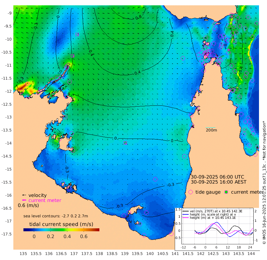 26cm/s 115T +3cm/s rms + 7cm/s -42T. ARA-GOC87 57m 23cm/s 154T +3cm/s rms + 2cm/s -2T. ARA-GOC87 60m 17cm/s 115T +2cm/s rms + 3cm/s 61T. ARA-GOC87 47m 23cm Daru 19cm Bobo Island 45cm Meer Island Barge 41cm Bramble Cay 38cm Unnamed Cay 21cm Pearce Cay 32cm Stephens Island 39cm Merrie England Shoals 27cm Mutacomal Reef 42cm Darnley Island Barge 39cm East Cay 34cm Yorke Island Barge 20cm Rennel Island 19cm Aureed Island 13cm Dungeness Reef 9cm Zagai Island 6cm Yam Island 15cm Dauan Island 20cm Saibai Island 1cm Phipi Reef 7cm Warrior Reef - West 9cm Mabuiag Island Barge 23cm Half Way Island 14cm Coconut Island 18cm Dugong Islet 7cm Poll Island 9cm Kirkcaldie Reef -10cm Suarji Island 18cm Sue Islet 32cm Hawkesbury Island 5cm Alert Patches 3cm Twin Island 24cm Badu Island 1cm St Pauls (Moa Island) 22cm Kubin (Moa Island) 7cm Ince Point 11cm Thursday Island 10cm Nardana Patches 17cm Turtle Head 25cm Round Island 29cm Goods Island 36cm Booby Island 22cm White Rocks Area 47cm Carpentaria -2cm Papou Point 51cm Bampfield Head 28cm Crab Island 30cm Red Wallis Island 27cm Packe Island 8cm Harrington Reef 39cm Herald Camp -3cm Sharp Point 3cm Red Island Point 7cm Possession Island 13cm Alpha Rock 7cm Frederick Point 26cm Wyborn Reef Light 23cm Tetley Island 38cm Triangle Reef 25cm Turtle Head Island 37cm Maclennan Cay 42cm Raine Island 32cm Mcsweeny Reef 38cm Collette Reef 46cm Shadwell Reef 43cm Hannibal Island 40cm Round Point 36cm Vrilya Point 42cm Cape Grenville 38cm Hicks Island 52cm Sir Charles Hardy Island 12cm Harvey Island 49cm Kay Reef 44cm Rocky Island 48cm Chapman Island 47cm Ham Reef 47cm Jubilee Reef 39cm Night Island 45cm Unnamed Reef No. 3 44cm Morris Island 47cm 1st 3 Mile Opening 46cm Creech Reef 38cm Fife Island 56cm Eden Reef 51cm Stanley Island 44cm Normanby River -13cm Yabooma Island -15cm Hutchison River -19cm Elcho Island -30cm North West Crocodile Island 23cm Cape Wessel 7cm Stevens Island 57cm Guluwuru Island 8cm Hopeful Bay 13cm Auster Point 18cm Two Island Bay 21cm Cadell Strait 227cm Mallison Island 37cm Melville Bay (Gove Harbour) 46cm Truant Island 31cm Cape Arnhem -1cm Cape Grey -12cm Hawk Island -42cm Milner Bay (Groote Eylandt) -51cm Cape Beatrice -75cm West Island -74cm Centre Island -78cm Mornington Island -76cm West Wellesley Islands -96cm Bountiful Island -132cm Albert River Mouth -138cm Sweers Island -132cm Karumba -44cm Nassau River Offshore -5cm Christmas Creek 20cm Archer River 32cm Boyd Point 30cm Weipa (Humbug Point) 31cm Pennefather River 37cm Cullen Point