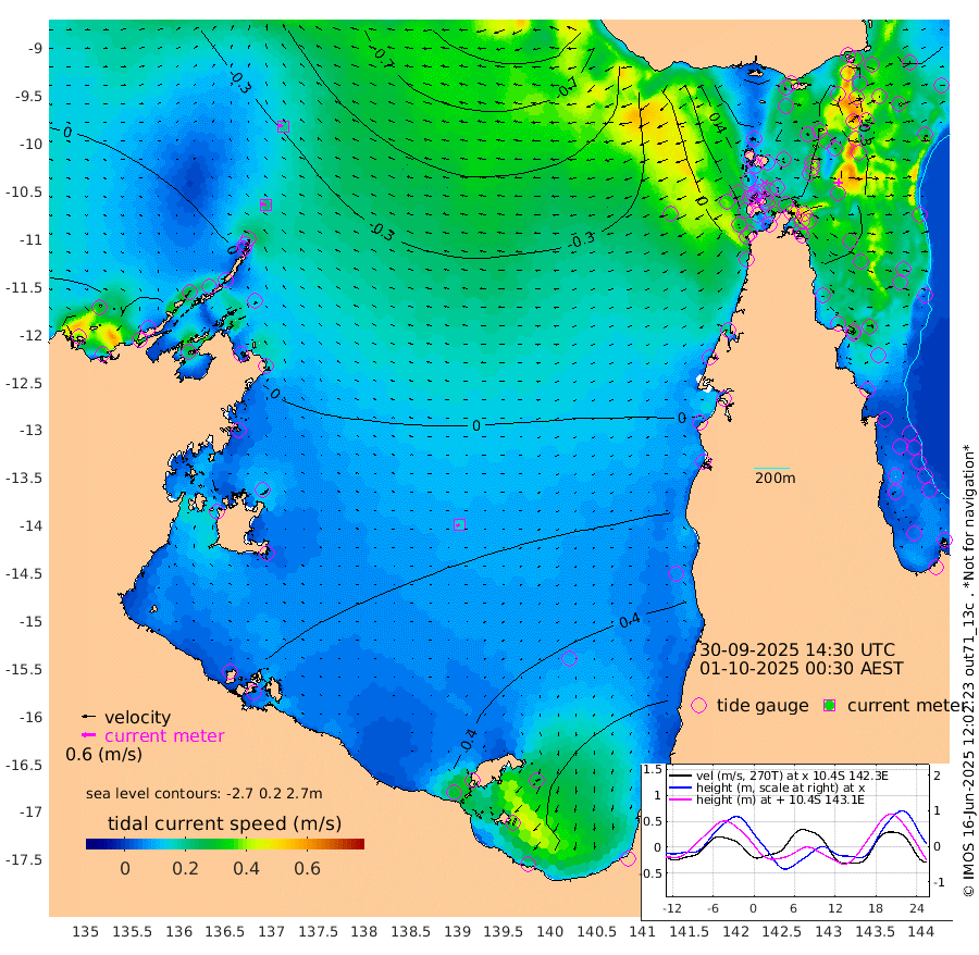 22cm/s -83T +3cm/s rms + 7cm/s -42T. ARA-GOC87 57m 16cm/s -121T +3cm/s rms + 2cm/s -2T. ARA-GOC87 60m 20cm/s -78T +2cm/s rms + 3cm/s 61T. ARA-GOC87 47m -14cm Daru -21cm Bobo Island -34cm Meer Island Barge -42cm Bramble Cay -37cm Unnamed Cay -22cm Pearce Cay -34cm Stephens Island -50cm Merrie England Shoals -32cm Mutacomal Reef -34cm Darnley Island Barge -39cm East Cay -24cm Yorke Island Barge -23cm Rennel Island -17cm Aureed Island 4cm Dungeness Reef 27cm Zagai Island 26cm Yam Island 81cm Dauan Island 59cm Saibai Island 91cm Phipi Reef 45cm Warrior Reef - West 41cm Mabuiag Island Barge -26cm Half Way Island -13cm Coconut Island -17cm Dugong Islet 6cm Poll Island 2cm Kirkcaldie Reef 33cm Suarji Island 3cm Sue Islet 25cm Hawkesbury Island 19cm Alert Patches 14cm Twin Island 37cm Badu Island 30cm St Pauls (Moa Island) 29cm Kubin (Moa Island) 24cm Ince Point 22cm Thursday Island 25cm Nardana Patches 29cm Turtle Head 24cm Round Island 22cm Goods Island 9cm Booby Island 4cm White Rocks Area -34cm Carpentaria 20cm Papou Point -6cm Bampfield Head 5cm Crab Island 3cm Red Wallis Island 16cm Packe Island -22cm Harrington Reef 24cm Herald Camp 11cm Sharp Point 25cm Red Island Point 23cm Possession Island -5cm Alpha Rock -1cm Frederick Point -29cm Wyborn Reef Light -24cm Tetley Island -26cm Triangle Reef -26cm Turtle Head Island -30cm Maclennan Cay -33cm Raine Island -33cm Mcsweeny Reef -37cm Collette Reef -34cm Shadwell Reef -44cm Hannibal Island -46cm Round Point -13cm Vrilya Point -46cm Cape Grenville -34cm Hicks Island -37cm Sir Charles Hardy Island -11cm Harvey Island -53cm Kay Reef -35cm Rocky Island -41cm Chapman Island -39cm Ham Reef -38cm Jubilee Reef -33cm Night Island -43cm Unnamed Reef No. 3 -39cm Morris Island -33cm 1st 3 Mile Opening -38cm Creech Reef -41cm Fife Island -46cm Eden Reef -47cm Stanley Island -50cm Normanby River 16cm Yabooma Island 32cm Hutchison River 22cm Elcho Island 30cm North West Crocodile Island -32cm Cape Wessel -12cm Stevens Island -26cm Guluwuru Island -7cm Hopeful Bay -15cm Auster Point -11cm Two Island Bay 9cm Cadell Strait -165cm Mallison Island -14cm Melville Bay (Gove Harbour) -25cm Truant Island -13cm Cape Arnhem 4cm Cape Grey 15cm Hawk Island 11cm Milner Bay (Groote Eylandt) 23cm Cape Beatrice 26cm West Island 24cm Centre Island 76cm Mornington Island 66cm West Wellesley Islands 112cm Bountiful Island 135cm Albert River Mouth 133cm Sweers Island 143cm Karumba 71cm Nassau River Offshore 49cm Christmas Creek 21cm Archer River 10cm Boyd Point 22cm Weipa (Humbug Point) -6cm Pennefather River -1cm Cullen Point