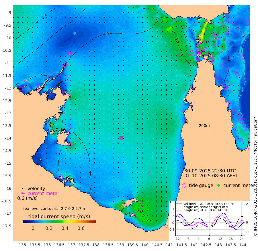 9cm/s 18T +3cm/s rms + 7cm/s -42T. ARA-GOC87 57m 31cm/s 6T +3cm/s rms + 2cm/s -2T. ARA-GOC87 60m 10cm/s 63T +2cm/s rms + 3cm/s 61T. ARA-GOC87 47m -8cm Daru 2cm Bobo Island -18cm Meer Island Barge -6cm Bramble Cay -4cm Unnamed Cay -2cm Pearce Cay -3cm Stephens Island 5cm Merrie England Shoals 3cm Mutacomal Reef -13cm Darnley Island Barge -8cm East Cay -11cm Yorke Island Barge -1cm Rennel Island -4cm Aureed Island -17cm Dungeness Reef -27cm Zagai Island -27cm Yam Island -84cm Dauan Island -66cm Saibai Island -79cm Phipi Reef -44cm Warrior Reef - West -45cm Mabuiag Island Barge -1cm Half Way Island 1cm Coconut Island -6cm Dugong Islet -11cm Poll Island -11cm Kirkcaldie Reef -18cm Suarji Island -17cm Sue Islet -66cm Hawkesbury Island -23cm Alert Patches -16cm Twin Island -64cm Badu Island -27cm St Pauls (Moa Island) -57cm Kubin (Moa Island) -32cm Ince Point -36cm Thursday Island -37cm Nardana Patches -53cm Turtle Head -55cm Round Island -63cm Goods Island -60cm Booby Island -42cm White Rocks Area -28cm Carpentaria -15cm Papou Point -57cm Bampfield Head -45cm Crab Island -49cm Red Wallis Island -55cm Packe Island 11cm Harrington Reef -76cm Herald Camp -5cm Sharp Point -32cm Red Island Point -29cm Possession Island -6cm Alpha Rock -6cm Frederick Point 4cm Wyborn Reef Light 2cm Tetley Island -17cm Triangle Reef 0cm Turtle Head Island -15cm Maclennan Cay -17cm Raine Island -3cm Mcsweeny Reef -5cm Collette Reef -18cm Shadwell Reef -4cm Hannibal Island -2cm Round Point -36cm Vrilya Point -4cm Cape Grenville -11cm Hicks Island -23cm Sir Charles Hardy Island -3cm Harvey Island -5cm Kay Reef -17cm Rocky Island -16cm Chapman Island -16cm Ham Reef -17cm Jubilee Reef -14cm Night Island -11cm Unnamed Reef No. 3 -14cm Morris Island -24cm 1st 3 Mile Opening -18cm Creech Reef -8cm Fife Island -21cm Eden Reef -14cm Stanley Island -6cm Normanby River 2cm Yabooma Island -7cm Hutchison River 4cm Elcho Island 6cm North West Crocodile Island 17cm Cape Wessel 14cm Stevens Island -17cm Guluwuru Island 7cm Hopeful Bay 11cm Auster Point 0cm Two Island Bay -16cm Cadell Strait -40cm Mallison Island -11cm Melville Bay (Gove Harbour) -8cm Truant Island -8cm Cape Arnhem 7cm Cape Grey 6cm Hawk Island 37cm Milner Bay (Groote Eylandt) 32cm Cape Beatrice 50cm West Island 51cm Centre Island 5cm Mornington Island 11cm West Wellesley Islands -11cm Bountiful Island 6cm Albert River Mouth 18cm Sweers Island -3cm Karumba -30cm Nassau River Offshore -51cm Christmas Creek -50cm Archer River -52cm Boyd Point -62cm Weipa (Humbug Point) -34cm Pennefather River -48cm Cullen Point