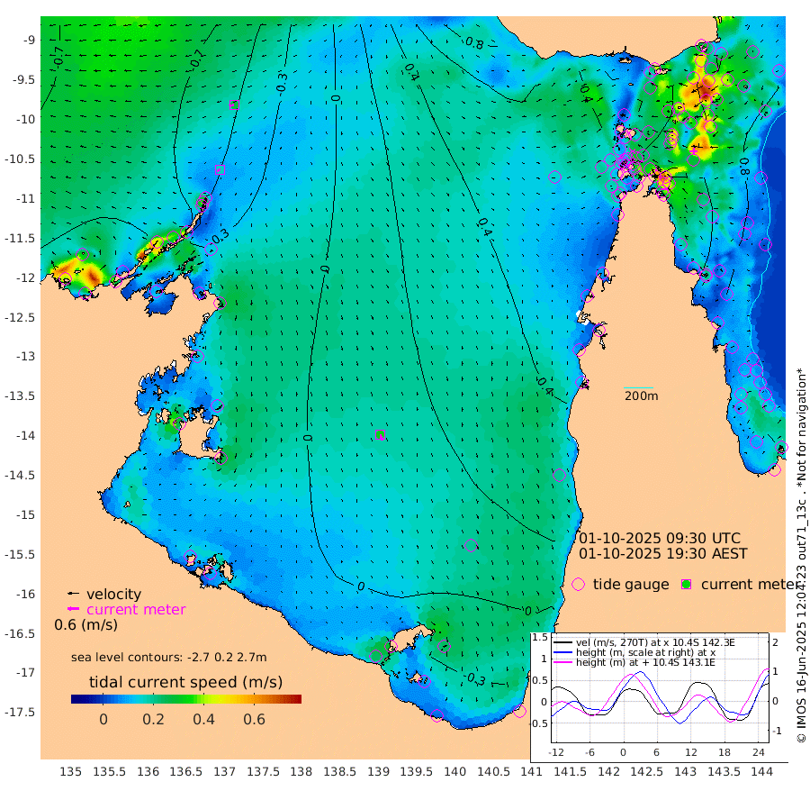 17cm/s -105T +3cm/s rms + 7cm/s -42T. ARA-GOC87 57m 33cm/s 168T +3cm/s rms + 2cm/s -2T. ARA-GOC87 60m 27cm/s -104T +2cm/s rms + 3cm/s 61T. ARA-GOC87 47m 103cm Daru 96cm Bobo Island 75cm Meer Island Barge 99cm Bramble Cay 113cm Unnamed Cay 101cm Pearce Cay 103cm Stephens Island 123cm Merrie England Shoals 122cm Mutacomal Reef 94cm Darnley Island Barge 87cm East Cay 95cm Yorke Island Barge 107cm Rennel Island 95cm Aureed Island 94cm Dungeness Reef 60cm Zagai Island 72cm Yam Island 38cm Dauan Island 38cm Saibai Island 43cm Phipi Reef 68cm Warrior Reef - West 50cm Mabuiag Island Barge 104cm Half Way Island 98cm Coconut Island 107cm Dugong Islet 89cm Poll Island 94cm Kirkcaldie Reef 79cm Suarji Island 84cm Sue Islet 87cm Hawkesbury Island 93cm Alert Patches 89cm Twin Island 64cm Badu Island 77cm St Pauls (Moa Island) 77cm Kubin (Moa Island) 81cm Ince Point 80cm Thursday Island 78cm Nardana Patches 82cm Turtle Head 76cm Round Island 80cm Goods Island 79cm Booby Island 83cm White Rocks Area 71cm Carpentaria 63cm Papou Point 88cm Bampfield Head 59cm Crab Island 86cm Red Wallis Island 97cm Packe Island 113cm Harrington Reef 89cm Herald Camp 19cm Sharp Point 65cm Red Island Point 73cm Possession Island 93cm Alpha Rock 100cm Frederick Point 115cm Wyborn Reef Light 111cm Tetley Island 77cm Triangle Reef 108cm Turtle Head Island 79cm Maclennan Cay 64cm Raine Island 106cm Mcsweeny Reef 102cm Collette Reef 81cm Shadwell Reef 110cm Hannibal Island 108cm Round Point 62cm Vrilya Point 103cm Cape Grenville 86cm Hicks Island 95cm Sir Charles Hardy Island 29cm Harvey Island 98cm Kay Reef 77cm Rocky Island 79cm Chapman Island 73cm Ham Reef 73cm Jubilee Reef 73cm Night Island 79cm Unnamed Reef No. 3 80cm Morris Island 68cm 1st 3 Mile Opening 76cm Creech Reef 83cm Fife Island 83cm Eden Reef 86cm Stanley Island 90cm Normanby River -92cm Yabooma Island -112cm Hutchison River -104cm Elcho Island -103cm North West Crocodile Island -56cm Cape Wessel -79cm Stevens Island -53cm Guluwuru Island -69cm Hopeful Bay -67cm Auster Point -73cm Two Island Bay -98cm Cadell Strait 57cm Mallison Island -48cm Melville Bay (Gove Harbour) -48cm Truant Island -35cm Cape Arnhem -41cm Cape Grey -32cm Hawk Island -50cm Milner Bay (Groote Eylandt) -38cm Cape Beatrice -30cm West Island -35cm Centre Island -25cm Mornington Island -18cm West Wellesley Islands -39cm Bountiful Island -95cm Albert River Mouth -101cm Sweers Island -78cm Karumba 20cm Nassau River Offshore 50cm Christmas Creek 57cm Archer River 60cm Boyd Point 60cm Weipa (Humbug Point) 52cm Pennefather River 64cm Cullen Point