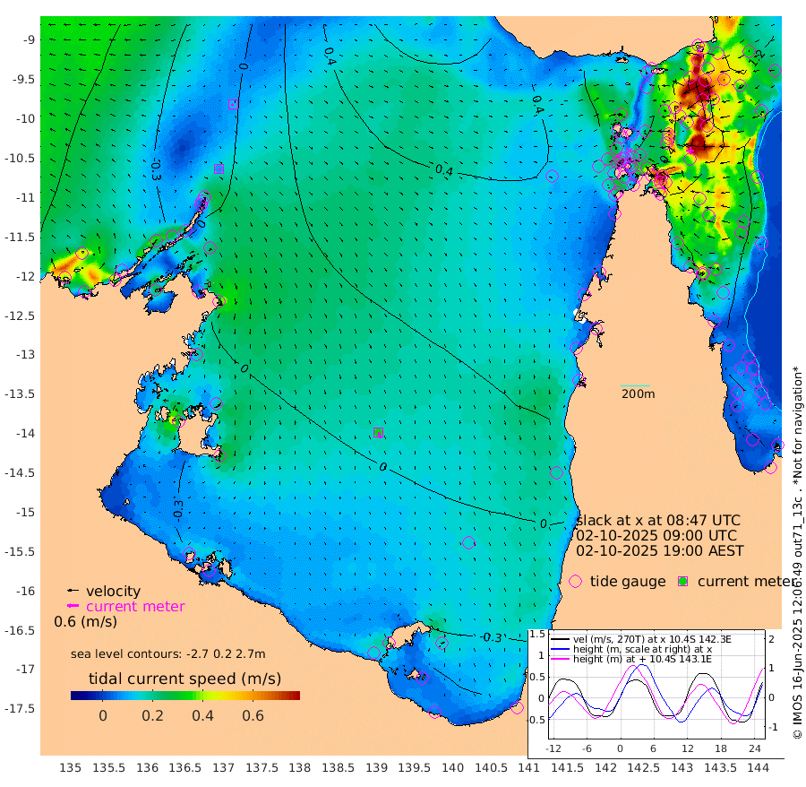8cm/s 167T +3cm/s rms + 7cm/s -42T. ARA-GOC87 57m 32cm/s 165T +3cm/s rms + 2cm/s -2T. ARA-GOC87 60m 11cm/s -132T +2cm/s rms + 3cm/s 61T. ARA-GOC87 47m 108cm Daru 101cm Bobo Island 97cm Meer Island Barge 119cm Bramble Cay 128cm Unnamed Cay 109cm Pearce Cay 119cm Stephens Island 139cm Merrie England Shoals 128cm Mutacomal Reef 112cm Darnley Island Barge 106cm East Cay 106cm Yorke Island Barge 113cm Rennel Island 96cm Aureed Island 91cm Dungeness Reef 45cm Zagai Island 58cm Yam Island 13cm Dauan Island 14cm Saibai Island 13cm Phipi Reef 49cm Warrior Reef - West 24cm Mabuiag Island Barge 113cm Half Way Island 93cm Coconut Island 111cm Dugong Islet 78cm Poll Island 88cm Kirkcaldie Reef 49cm Suarji Island 75cm Sue Islet 67cm Hawkesbury Island 68cm Alert Patches 67cm Twin Island 44cm Badu Island 53cm St Pauls (Moa Island) 59cm Kubin (Moa Island) 57cm Ince Point 56cm Thursday Island 54cm Nardana Patches 59cm Turtle Head 52cm Round Island 62cm Goods Island 60cm Booby Island 62cm White Rocks Area 54cm Carpentaria 44cm Papou Point 66cm Bampfield Head 43cm Crab Island 64cm Red Wallis Island 74cm Packe Island 110cm Harrington Reef 64cm Herald Camp 8cm Sharp Point 43cm Red Island Point 48cm Possession Island 78cm Alpha Rock 85cm Frederick Point 117cm Wyborn Reef Light 109cm Tetley Island 87cm Triangle Reef 116cm Turtle Head Island 95cm Maclennan Cay 84cm Raine Island 117cm Mcsweeny Reef 115cm Collette Reef 99cm Shadwell Reef 127cm Hannibal Island 126cm Round Point 49cm Vrilya Point 120cm Cape Grenville 104cm Hicks Island 115cm Sir Charles Hardy Island 34cm Harvey Island 119cm Kay Reef 96cm Rocky Island 96cm Chapman Island 92cm Ham Reef 95cm Jubilee Reef 89cm Night Island 96cm Unnamed Reef No. 3 101cm Morris Island 91cm 1st 3 Mile Opening 96cm Creech Reef 101cm Fife Island 112cm Eden Reef 110cm Stanley Island 115cm Normanby River -31cm Yabooma Island -42cm Hutchison River -45cm Elcho Island -48cm North West Crocodile Island -6cm Cape Wessel -17cm Stevens Island 10cm Guluwuru Island -17cm Hopeful Bay -16cm Auster Point -16cm Two Island Bay -22cm Cadell Strait 156cm Mallison Island 1cm Melville Bay (Gove Harbour) 5cm Truant Island -1cm Cape Arnhem -21cm Cape Grey -26cm Hawk Island -53cm Milner Bay (Groote Eylandt) -46cm Cape Beatrice -56cm West Island -64cm Centre Island -55cm Mornington Island -46cm West Wellesley Islands -70cm Bountiful Island -120cm Albert River Mouth -135cm Sweers Island -113cm Karumba -6cm Nassau River Offshore 30cm Christmas Creek 42cm Archer River 48cm Boyd Point 47cm Weipa (Humbug Point) 42cm Pennefather River 47cm Cullen Point