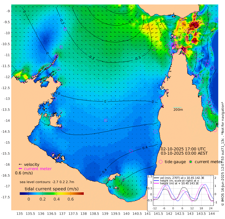 16cm/s -65T +3cm/s rms + 7cm/s -42T. ARA-GOC87 57m 15cm/s -89T +3cm/s rms + 2cm/s -2T. ARA-GOC87 60m 14cm/s -48T +2cm/s rms + 3cm/s 61T. ARA-GOC87 47m -100cm Daru -99cm Bobo Island -47cm Meer Island Barge -77cm Bramble Cay -99cm Unnamed Cay -94cm Pearce Cay -89cm Stephens Island -107cm Merrie England Shoals -116cm Mutacomal Reef -75cm Darnley Island Barge -60cm East Cay -84cm Yorke Island Barge -98cm Rennel Island -89cm Aureed Island -86cm Dungeness Reef -72cm Zagai Island -80cm Yam Island -19cm Dauan Island -30cm Saibai Island -15cm Phipi Reef -63cm Warrior Reef - West -51cm Mabuiag Island Barge -98cm Half Way Island -106cm Coconut Island -101cm Dugong Islet -95cm Poll Island -97cm Kirkcaldie Reef -85cm Suarji Island -87cm Sue Islet -53cm Hawkesbury Island -89cm Alert Patches -96cm Twin Island -49cm Badu Island -86cm St Pauls (Moa Island) -59cm Kubin (Moa Island) -77cm Ince Point -73cm Thursday Island -72cm Nardana Patches -57cm Turtle Head -51cm Round Island -48cm Goods Island -45cm Booby Island -61cm White Rocks Area -58cm Carpentaria -82cm Papou Point -61cm Bampfield Head -33cm Crab Island -55cm Red Wallis Island -63cm Packe Island -120cm Harrington Reef -39cm Herald Camp -21cm Sharp Point -54cm Red Island Point -68cm Possession Island -100cm Alpha Rock -106cm Frederick Point -120cm Wyborn Reef Light -119cm Tetley Island -53cm Triangle Reef -117cm Turtle Head Island -53cm Maclennan Cay -34cm Raine Island -92cm Mcsweeny Reef -82cm Collette Reef -50cm Shadwell Reef -89cm Hannibal Island -84cm Round Point -36cm Vrilya Point -74cm Cape Grenville -60cm Hicks Island -60cm Sir Charles Hardy Island -20cm Harvey Island -65cm Kay Reef -42cm Rocky Island -41cm Chapman Island -38cm Ham Reef -42cm Jubilee Reef -40cm Night Island -44cm Unnamed Reef No. 3 -46cm Morris Island -35cm 1st 3 Mile Opening -41cm Creech Reef -48cm Fife Island -40cm Eden Reef -47cm Stanley Island -56cm Normanby River -4cm Yabooma Island 0cm Hutchison River 5cm Elcho Island 7cm North West Crocodile Island -36cm Cape Wessel -23cm Stevens Island -24cm Guluwuru Island -7cm Hopeful Bay -21cm Auster Point -14cm Two Island Bay -4cm Cadell Strait -80cm Mallison Island -18cm Melville Bay (Gove Harbour) -27cm Truant Island -12cm Cape Arnhem 4cm Cape Grey 19cm Hawk Island 25cm Milner Bay (Groote Eylandt) 33cm Cape Beatrice 38cm West Island 43cm Centre Island 87cm Mornington Island 79cm West Wellesley Islands 112cm Bountiful Island 153cm Albert River Mouth 159cm Sweers Island 153cm Karumba 67cm Nassau River Offshore 39cm Christmas Creek 13cm Archer River -5cm Boyd Point 6cm Weipa (Humbug Point) -14cm Pennefather River -22cm Cullen Point