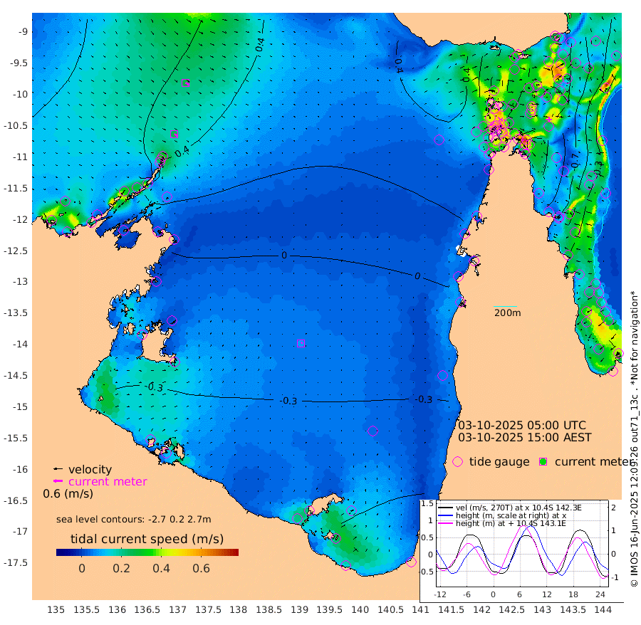 26cm/s 120T +3cm/s rms + 7cm/s -42T. ARA-GOC87 57m 8cm/s 57T +3cm/s rms + 2cm/s -2T. ARA-GOC87 60m 27cm/s 119T +2cm/s rms + 3cm/s 61T. ARA-GOC87 47m -99cm Daru -92cm Bobo Island -31cm Meer Island Barge -65cm Bramble Cay -90cm Unnamed Cay -84cm Pearce Cay -77cm Stephens Island -99cm Merrie England Shoals -110cm Mutacomal Reef -63cm Darnley Island Barge -45cm East Cay -75cm Yorke Island Barge -92cm Rennel Island -82cm Aureed Island -85cm Dungeness Reef -65cm Zagai Island -68cm Yam Island -27cm Dauan Island -26cm Saibai Island -58cm Phipi Reef -73cm Warrior Reef - West -20cm Mabuiag Island Barge -83cm Half Way Island -93cm Coconut Island -88cm Dugong Islet -82cm Poll Island -85cm Kirkcaldie Reef -77cm Suarji Island -75cm Sue Islet 26cm Hawkesbury Island -70cm Alert Patches -68cm Twin Island 22cm Badu Island -62cm St Pauls (Moa Island) 5cm Kubin (Moa Island) -40cm Ince Point -23cm Thursday Island -27cm Nardana Patches -6cm Turtle Head 5cm Round Island 33cm Goods Island 59cm Booby Island 43cm White Rocks Area 71cm Carpentaria -47cm Papou Point 52cm Bampfield Head 47cm Crab Island 45cm Red Wallis Island 6cm Packe Island -104cm Harrington Reef 33cm Herald Camp -26cm Sharp Point -8cm Red Island Point -39cm Possession Island -74cm Alpha Rock -84cm Frederick Point -103cm Wyborn Reef Light -100cm Tetley Island -37cm Triangle Reef -89cm Turtle Head Island -33cm Maclennan Cay -15cm Raine Island -82cm Mcsweeny Reef -76cm Collette Reef -41cm Shadwell Reef -82cm Hannibal Island -72cm Round Point 51cm Vrilya Point -62cm Cape Grenville -46cm Hicks Island -36cm Sir Charles Hardy Island -17cm Harvey Island -48cm Kay Reef -28cm Rocky Island -22cm Chapman Island -17cm Ham Reef -21cm Jubilee Reef -29cm Night Island -23cm Unnamed Reef No. 3 -29cm Morris Island -12cm 1st 3 Mile Opening -22cm Creech Reef -38cm Fife Island -21cm Eden Reef -30cm Stanley Island -37cm Normanby River 84cm Yabooma Island 87cm Hutchison River 79cm Elcho Island 72cm North West Crocodile Island 63cm Cape Wessel 62cm Stevens Island 54cm Guluwuru Island 55cm Hopeful Bay 63cm Auster Point 73cm Two Island Bay 82cm Cadell Strait 7cm Mallison Island 41cm Melville Bay (Gove Harbour) 49cm Truant Island 27cm Cape Arnhem 5cm Cape Grey -19cm Hawk Island -23cm Milner Bay (Groote Eylandt) -38cm Cape Beatrice -59cm West Island -57cm Centre Island -96cm Mornington Island -92cm West Wellesley Islands -95cm Bountiful Island -105cm Albert River Mouth -119cm Sweers Island -118cm Karumba -76cm Nassau River Offshore -46cm Christmas Creek -6cm Archer River 16cm Boyd Point 20cm Weipa (Humbug Point) 18cm Pennefather River 43cm Cullen Point
