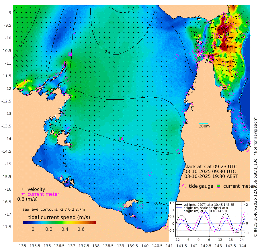 11cm/s 141T +3cm/s rms + 7cm/s -42T. ARA-GOC87 57m 31cm/s 166T +3cm/s rms + 2cm/s -2T. ARA-GOC87 60m 8cm/s -159T +2cm/s rms + 3cm/s 61T. ARA-GOC87 47m 127cm Daru 120cm Bobo Island 108cm Meer Island Barge 136cm Bramble Cay 147cm Unnamed Cay 130cm Pearce Cay 138cm Stephens Island 158cm Merrie England Shoals 146cm Mutacomal Reef 128cm Darnley Island Barge 119cm East Cay 122cm Yorke Island Barge 132cm Rennel Island 112cm Aureed Island 107cm Dungeness Reef 54cm Zagai Island 69cm Yam Island 13cm Dauan Island 11cm Saibai Island 15cm Phipi Reef 58cm Warrior Reef - West 23cm Mabuiag Island Barge 132cm Half Way Island 109cm Coconut Island 130cm Dugong Islet 91cm Poll Island 103cm Kirkcaldie Reef 56cm Suarji Island 86cm Sue Islet 64cm Hawkesbury Island 73cm Alert Patches 75cm Twin Island 42cm Badu Island 60cm St Pauls (Moa Island) 60cm Kubin (Moa Island) 60cm Ince Point 57cm Thursday Island 56cm Nardana Patches 58cm Turtle Head 47cm Round Island 58cm Goods Island 50cm Booby Island 57cm White Rocks Area 37cm Carpentaria 53cm Papou Point 51cm Bampfield Head 34cm Crab Island 55cm Red Wallis Island 70cm Packe Island 130cm Harrington Reef 53cm Herald Camp 9cm Sharp Point 43cm Red Island Point 49cm Possession Island 85cm Alpha Rock 98cm Frederick Point 134cm Wyborn Reef Light 125cm Tetley Island 96cm Triangle Reef 138cm Turtle Head Island 107cm Maclennan Cay 92cm Raine Island 133cm Mcsweeny Reef 129cm Collette Reef 108cm Shadwell Reef 144cm Hannibal Island 142cm Round Point 37cm Vrilya Point 133cm Cape Grenville 118cm Hicks Island 126cm Sir Charles Hardy Island 38cm Harvey Island 130cm Kay Reef 105cm Rocky Island 102cm Chapman Island 98cm Ham Reef 104cm Jubilee Reef 97cm Night Island 102cm Unnamed Reef No. 3 112cm Morris Island 99cm 1st 3 Mile Opening 105cm Creech Reef 112cm Fife Island 123cm Eden Reef 120cm Stanley Island 129cm Normanby River 11cm Yabooma Island 9cm Hutchison River -3cm Elcho Island -7cm North West Crocodile Island 21cm Cape Wessel 20cm Stevens Island 38cm Guluwuru Island 13cm Hopeful Bay 13cm Auster Point 17cm Two Island Bay 24cm Cadell Strait 160cm Mallison Island 26cm Melville Bay (Gove Harbour) 30cm Truant Island 13cm Cape Arnhem -10cm Cape Grey -20cm Hawk Island -51cm Milner Bay (Groote Eylandt) -44cm Cape Beatrice -62cm West Island -73cm Centre Island -60cm Mornington Island -50cm West Wellesley Islands -71cm Bountiful Island -116cm Albert River Mouth -135cm Sweers Island -112cm Karumba -11cm Nassau River Offshore 23cm Christmas Creek 33cm Archer River 37cm Boyd Point 38cm Weipa (Humbug Point) 32cm Pennefather River 33cm Cullen Point