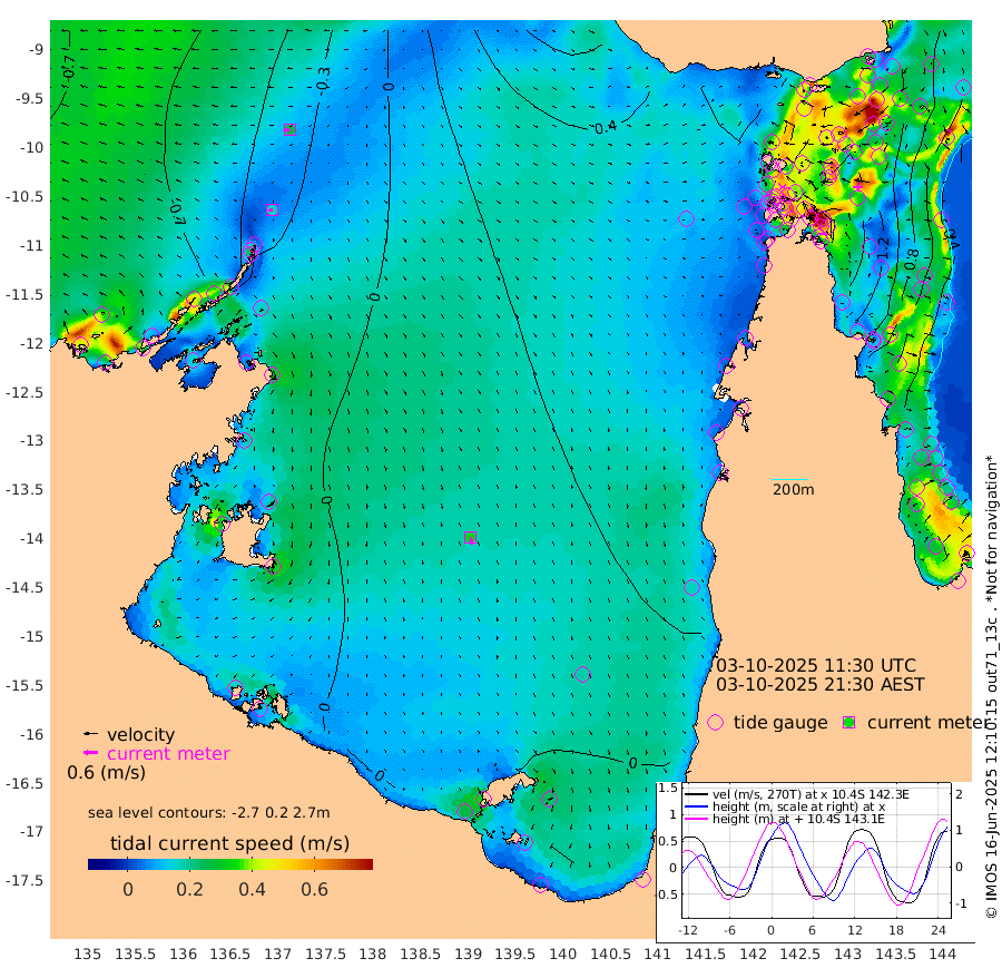 16cm/s -103T +3cm/s rms + 7cm/s -42T. ARA-GOC87 57m 32cm/s 172T +3cm/s rms + 2cm/s -2T. ARA-GOC87 60m 26cm/s -101T +2cm/s rms + 3cm/s 61T. ARA-GOC87 47m 148cm Daru 133cm Bobo Island 59cm Meer Island Barge 97cm Bramble Cay 133cm Unnamed Cay 128cm Pearce Cay 117cm Stephens Island 138cm Merrie England Shoals 162cm Mutacomal Reef 99cm Darnley Island Barge 72cm East Cay 117cm Yorke Island Barge 138cm Rennel Island 126cm Aureed Island 139cm Dungeness Reef 126cm Zagai Island 139cm Yam Island 108cm Dauan Island 99cm Saibai Island 112cm Phipi Reef 140cm Warrior Reef - West 101cm Mabuiag Island Barge 134cm Half Way Island 146cm Coconut Island 146cm Dugong Islet 147cm Poll Island 148cm Kirkcaldie Reef 144cm Suarji Island 134cm Sue Islet 96cm Hawkesbury Island 146cm Alert Patches 148cm Twin Island 91cm Badu Island 145cm St Pauls (Moa Island) 108cm Kubin (Moa Island) 130cm Ince Point 120cm Thursday Island 122cm Nardana Patches 110cm Turtle Head 91cm Round Island 86cm Goods Island 68cm Booby Island 80cm White Rocks Area 45cm Carpentaria 121cm Papou Point 67cm Bampfield Head 51cm Crab Island 83cm Red Wallis Island 116cm Packe Island 160cm Harrington Reef 84cm Herald Camp 42cm Sharp Point 90cm Red Island Point 109cm Possession Island 146cm Alpha Rock 154cm Frederick Point 159cm Wyborn Reef Light 161cm Tetley Island 73cm Triangle Reef 147cm Turtle Head Island 68cm Maclennan Cay 38cm Raine Island 123cm Mcsweeny Reef 109cm Collette Reef 67cm Shadwell Reef 116cm Hannibal Island 106cm Round Point 44cm Vrilya Point 93cm Cape Grenville 75cm Hicks Island 79cm Sir Charles Hardy Island 26cm Harvey Island 75cm Kay Reef 52cm Rocky Island 47cm Chapman Island 42cm Ham Reef 48cm Jubilee Reef 53cm Night Island 49cm Unnamed Reef No. 3 55cm Morris Island 40cm 1st 3 Mile Opening 49cm Creech Reef 61cm Fife Island 46cm Eden Reef 55cm Stanley Island 60cm Normanby River -75cm Yabooma Island -79cm Hutchison River -80cm Elcho Island -75cm North West Crocodile Island -45cm Cape Wessel -58cm Stevens Island -37cm Guluwuru Island -62cm Hopeful Bay -58cm Auster Point -59cm Two Island Bay -69cm Cadell Strait 29cm Mallison Island -33cm Melville Bay (Gove Harbour) -34cm Truant Island -24cm Cape Arnhem -32cm Cape Grey -23cm Hawk Island -44cm Milner Bay (Groote Eylandt) -28cm Cape Beatrice -24cm West Island -33cm Centre Island -12cm Mornington Island -10cm West Wellesley Islands -29cm Bountiful Island -62cm Albert River Mouth -82cm Sweers Island -49cm Karumba 26cm Nassau River Offshore 46cm Christmas Creek 39cm Archer River 43cm Boyd Point 40cm Weipa (Humbug Point) 36cm Pennefather River 45cm Cullen Point