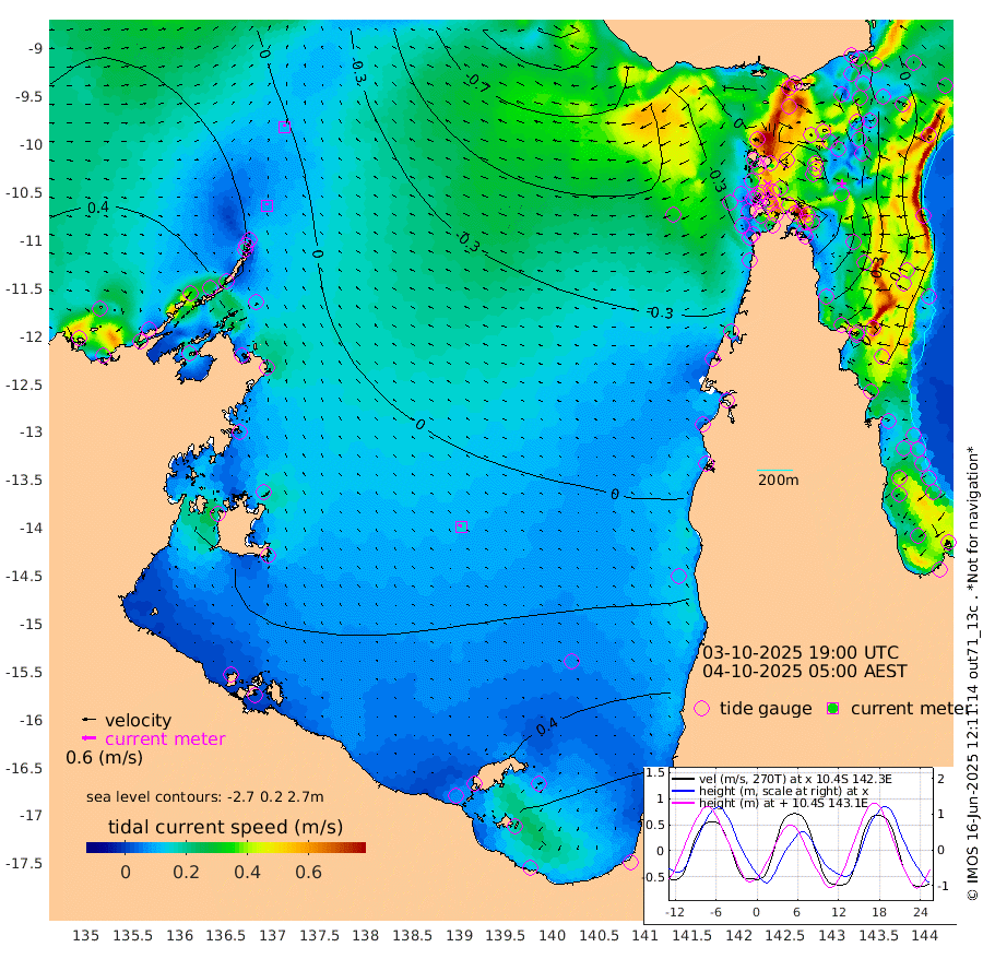 8cm/s -17T +3cm/s rms + 7cm/s -42T. ARA-GOC87 57m 16cm/s -57T +3cm/s rms + 2cm/s -2T. ARA-GOC87 60m 12cm/s 13T +2cm/s rms + 3cm/s 61T. ARA-GOC87 47m -81cm Daru -74cm Bobo Island 3cm Meer Island Barge -21cm Bramble Cay -54cm Unnamed Cay -60cm Pearce Cay -42cm Stephens Island -50cm Merrie England Shoals -86cm Mutacomal Reef -30cm Darnley Island Barge -3cm East Cay -55cm Yorke Island Barge -68cm Rennel Island -69cm Aureed Island -84cm Dungeness Reef -115cm Zagai Island -121cm Yam Island -110cm Dauan Island -114cm Saibai Island -93cm Phipi Reef -117cm Warrior Reef - West -118cm Mabuiag Island Barge -67cm Half Way Island -98cm Coconut Island -83cm Dugong Islet -111cm Poll Island -104cm Kirkcaldie Reef -131cm Suarji Island -105cm Sue Islet -97cm Hawkesbury Island -125cm Alert Patches -131cm Twin Island -106cm Badu Island -139cm St Pauls (Moa Island) -108cm Kubin (Moa Island) -123cm Ince Point -120cm Thursday Island -121cm Nardana Patches -102cm Turtle Head -92cm Round Island -87cm Goods Island -83cm Booby Island -93cm White Rocks Area -87cm Carpentaria -122cm Papou Point -89cm Bampfield Head -64cm Crab Island -94cm Red Wallis Island -105cm Packe Island -101cm Harrington Reef -83cm Herald Camp -41cm Sharp Point -92cm Red Island Point -103cm Possession Island -123cm Alpha Rock -119cm Frederick Point -99cm Wyborn Reef Light -109cm Tetley Island -21cm Triangle Reef -88cm Turtle Head Island -10cm Maclennan Cay 16cm Raine Island -52cm Mcsweeny Reef -36cm Collette Reef -3cm Shadwell Reef -35cm Hannibal Island -24cm Round Point -58cm Vrilya Point -16cm Cape Grenville -8cm Hicks Island -12cm Sir Charles Hardy Island -4cm Harvey Island 0cm Kay Reef 11cm Rocky Island 13cm Chapman Island 13cm Ham Reef 11cm Jubilee Reef 7cm Night Island 10cm Unnamed Reef No. 3 12cm Morris Island 17cm 1st 3 Mile Opening 12cm Creech Reef 9cm Fife Island 29cm Eden Reef 18cm Stanley Island 16cm Normanby River 36cm Yabooma Island 38cm Hutchison River 40cm Elcho Island 37cm North West Crocodile Island -3cm Cape Wessel 22cm Stevens Island 8cm Guluwuru Island 37cm Hopeful Bay 17cm Auster Point 20cm Two Island Bay 34cm Cadell Strait 8cm Mallison Island 10cm Melville Bay (Gove Harbour) 3cm Truant Island 5cm Cape Arnhem 18cm Cape Grey 28cm Hawk Island 34cm Milner Bay (Groote Eylandt) 37cm Cape Beatrice 35cm West Island 41cm Centre Island 79cm Mornington Island 76cm West Wellesley Islands 99cm Bountiful Island 138cm Albert River Mouth 154cm Sweers Island 136cm Karumba 54cm Nassau River Offshore 24cm Christmas Creek 3cm Archer River -22cm Boyd Point -13cm Weipa (Humbug Point) -22cm Pennefather River -49cm Cullen Point