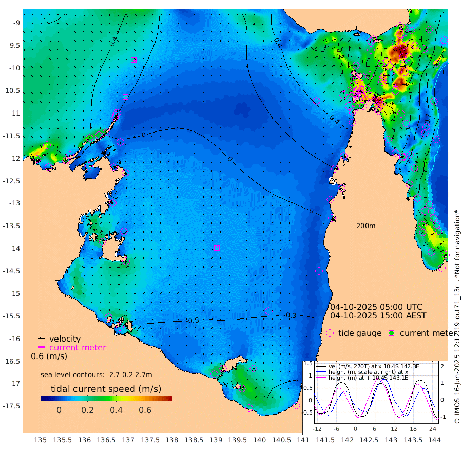 14cm/s 128T +3cm/s rms + 7cm/s -42T. ARA-GOC87 57m 12cm/s 32T +3cm/s rms + 2cm/s -2T. ARA-GOC87 60m 19cm/s 128T +2cm/s rms + 3cm/s 61T. ARA-GOC87 47m -129cm Daru -121cm Bobo Island -61cm Meer Island Barge -99cm Bramble Cay -124cm Unnamed Cay -116cm Pearce Cay -112cm Stephens Island -135cm Merrie England Shoals -140cm Mutacomal Reef -96cm Darnley Island Barge -74cm East Cay -105cm Yorke Island Barge -122cm Rennel Island -108cm Aureed Island -110cm Dungeness Reef -77cm Zagai Island -81cm Yam Island -30cm Dauan Island -23cm Saibai Island -62cm Phipi Reef -85cm Warrior Reef - West -16cm Mabuiag Island Barge -115cm Half Way Island -116cm Coconut Island -117cm Dugong Islet -100cm Poll Island -106cm Kirkcaldie Reef -82cm Suarji Island -91cm Sue Islet 24cm Hawkesbury Island -78cm Alert Patches -77cm Twin Island 21cm Badu Island -69cm St Pauls (Moa Island) -2cm Kubin (Moa Island) -45cm Ince Point -26cm Thursday Island -31cm Nardana Patches -11cm Turtle Head 4cm Round Island 29cm Goods Island 60cm Booby Island 44cm White Rocks Area 79cm Carpentaria -54cm Papou Point 54cm Bampfield Head 47cm Crab Island 46cm Red Wallis Island 1cm Packe Island -131cm Harrington Reef 32cm Herald Camp -25cm Sharp Point -7cm Red Island Point -42cm Possession Island -84cm Alpha Rock -101cm Frederick Point -131cm Wyborn Reef Light -125cm Tetley Island -60cm Triangle Reef -123cm Turtle Head Island -60cm Maclennan Cay -40cm Raine Island -113cm Mcsweeny Reef -106cm Collette Reef -68cm Shadwell Reef -117cm Hannibal Island -106cm Round Point 51cm Vrilya Point -92cm Cape Grenville -77cm Hicks Island -65cm Sir Charles Hardy Island -27cm Harvey Island -77cm Kay Reef -54cm Rocky Island -45cm Chapman Island -40cm Ham Reef -48cm Jubilee Reef -54cm Night Island -46cm Unnamed Reef No. 3 -58cm Morris Island -40cm 1st 3 Mile Opening -49cm Creech Reef -66cm Fife Island -54cm Eden Reef -60cm Stanley Island -69cm Normanby River 52cm Yabooma Island 46cm Hutchison River 47cm Elcho Island 44cm North West Crocodile Island 38cm Cape Wessel 27cm Stevens Island 16cm Guluwuru Island 28cm Hopeful Bay 35cm Auster Point 41cm Two Island Bay 35cm Cadell Strait -59cm Mallison Island 10cm Melville Bay (Gove Harbour) 16cm Truant Island 6cm Cape Arnhem -3cm Cape Grey -22cm Hawk Island -12cm Milner Bay (Groote Eylandt) -27cm Cape Beatrice -33cm West Island -30cm Centre Island -78cm Mornington Island -74cm West Wellesley Islands -71cm Bountiful Island -83cm Albert River Mouth -89cm Sweers Island -94cm Karumba -68cm Nassau River Offshore -46cm Christmas Creek -7cm Archer River 15cm Boyd Point 18cm Weipa (Humbug Point) 15cm Pennefather River 46cm Cullen Point