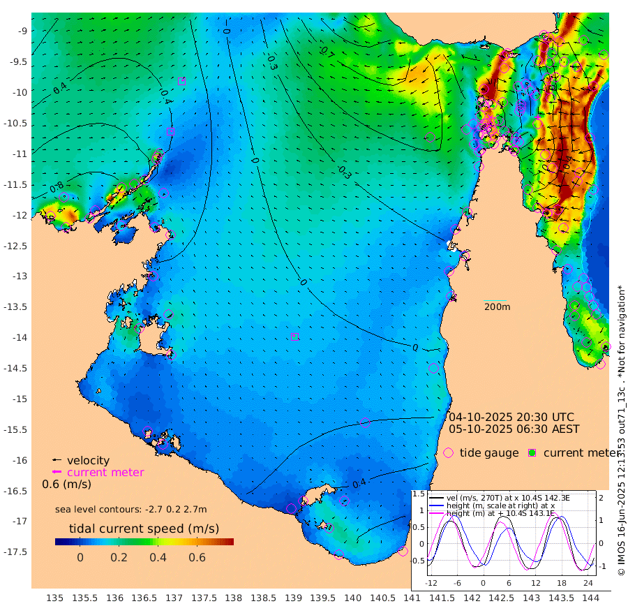 9cm/s 53T +3cm/s rms + 7cm/s -42T. ARA-GOC87 57m 17cm/s -44T +3cm/s rms + 2cm/s -2T. ARA-GOC87 60m 16cm/s 52T +2cm/s rms + 3cm/s 61T. ARA-GOC87 47m -20cm Daru -11cm Bobo Island 50cm Meer Island Barge 43cm Bramble Cay 15cm Unnamed Cay 7cm Pearce Cay 26cm Stephens Island 26cm Merrie England Shoals -18cm Mutacomal Reef 29cm Darnley Island Barge 54cm East Cay 1cm Yorke Island Barge -3cm Rennel Island -12cm Aureed Island -34cm Dungeness Reef -93cm Zagai Island -96cm Yam Island -129cm Dauan Island -134cm Saibai Island -98cm Phipi Reef -100cm Warrior Reef - West -124cm Mabuiag Island Barge -4cm Half Way Island -41cm Coconut Island -24cm Dugong Islet -69cm Poll Island -57cm Kirkcaldie Reef -103cm Suarji Island -71cm Sue Islet -95cm Hawkesbury Island -95cm Alert Patches -100cm Twin Island -108cm Badu Island -117cm St Pauls (Moa Island) -100cm Kubin (Moa Island) -107cm Ince Point -107cm Thursday Island -108cm Nardana Patches -93cm Turtle Head -84cm Round Island -84cm Goods Island -87cm Booby Island -87cm White Rocks Area -96cm Carpentaria -100cm Papou Point -80cm Bampfield Head -67cm Crab Island -95cm Red Wallis Island -95cm Packe Island -33cm Harrington Reef -84cm Herald Camp -40cm Sharp Point -83cm Red Island Point -81cm Possession Island -90cm Alpha Rock -73cm Frederick Point -32cm Wyborn Reef Light -48cm Tetley Island 19cm Triangle Reef -16cm Turtle Head Island 36cm Maclennan Cay 56cm Raine Island 11cm Mcsweeny Reef 24cm Collette Reef 43cm Shadwell Reef 34cm Hannibal Island 45cm Round Point -63cm Vrilya Point 45cm Cape Grenville 48cm Hicks Island 37cm Sir Charles Hardy Island 14cm Harvey Island 57cm Kay Reef 56cm Rocky Island 56cm Chapman Island 53cm Ham Reef 54cm Jubilee Reef 49cm Night Island 53cm Unnamed Reef No. 3 61cm Morris Island 59cm 1st 3 Mile Opening 57cm Creech Reef 61cm Fife Island 81cm Eden Reef 69cm Stanley Island 75cm Normanby River 80cm Yabooma Island 89cm Hutchison River 80cm Elcho Island 73cm North West Crocodile Island 32cm Cape Wessel 69cm Stevens Island 39cm Guluwuru Island 76cm Hopeful Bay 55cm Auster Point 53cm Two Island Bay 77cm Cadell Strait 49cm Mallison Island 40cm Melville Bay (Gove Harbour) 36cm Truant Island 24cm Cape Arnhem 30cm Cape Grey 35cm Hawk Island 33cm Milner Bay (Groote Eylandt) 33cm Cape Beatrice 21cm West Island 25cm Centre Island 62cm Mornington Island 61cm West Wellesley Islands 76cm Bountiful Island 109cm Albert River Mouth 129cm Sweers Island 109cm Karumba 41cm Nassau River Offshore 15cm Christmas Creek -2cm Archer River -30cm Boyd Point -21cm Weipa (Humbug Point) -24cm Pennefather River -60cm Cullen Point