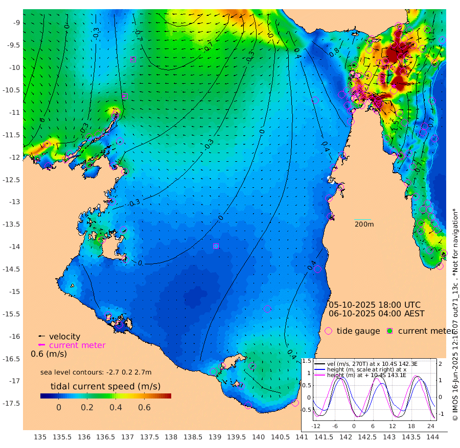 23cm/s -90T +3cm/s rms + 7cm/s -42T. ARA-GOC87 57m 9cm/s -97T +3cm/s rms + 2cm/s -2T. ARA-GOC87 60m 22cm/s -98T +2cm/s rms + 3cm/s 61T. ARA-GOC87 47m -158cm Daru -158cm Bobo Island -80cm Meer Island Barge -119cm Bramble Cay -153cm Unnamed Cay -146cm Pearce Cay -138cm Stephens Island -154cm Merrie England Shoals -167cm Mutacomal Reef -124cm Darnley Island Barge -92cm East Cay -139cm Yorke Island Barge -147cm Rennel Island -140cm Aureed Island -138cm Dungeness Reef -119cm Zagai Island -121cm Yam Island -48cm Dauan Island -58cm Saibai Island -63cm Phipi Reef -112cm Warrior Reef - West -54cm Mabuiag Island Barge -145cm Half Way Island -151cm Coconut Island -149cm Dugong Islet -134cm Poll Island -139cm Kirkcaldie Reef -119cm Suarji Island -132cm Sue Islet -2cm Hawkesbury Island -106cm Alert Patches -114cm Twin Island -10cm Badu Island -109cm St Pauls (Moa Island) -30cm Kubin (Moa Island) -75cm Ince Point -56cm Thursday Island -60cm Nardana Patches -27cm Turtle Head -19cm Round Island 11cm Goods Island 40cm Booby Island 19cm White Rocks Area 39cm Carpentaria -100cm Papou Point 12cm Bampfield Head 44cm Crab Island 34cm Red Wallis Island -8cm Packe Island -168cm Harrington Reef 16cm Herald Camp -30cm Sharp Point -30cm Red Island Point -72cm Possession Island -120cm Alpha Rock -138cm Frederick Point -169cm Wyborn Reef Light -165cm Tetley Island -77cm Triangle Reef -171cm Turtle Head Island -79cm Maclennan Cay -49cm Raine Island -138cm Mcsweeny Reef -125cm Collette Reef -79cm Shadwell Reef -138cm Hannibal Island -122cm Round Point 50cm Vrilya Point -106cm Cape Grenville -96cm Hicks Island -92cm Sir Charles Hardy Island -32cm Harvey Island -91cm Kay Reef -67cm Rocky Island -54cm Chapman Island -52cm Ham Reef -63cm Jubilee Reef -58cm Night Island -54cm Unnamed Reef No. 3 -69cm Morris Island -55cm 1st 3 Mile Opening -60cm Creech Reef -67cm Fife Island -65cm Eden Reef -68cm Stanley Island -83cm Normanby River -49cm Yabooma Island -67cm Hutchison River -42cm Elcho Island -39cm North West Crocodile Island -72cm Cape Wessel -70cm Stevens Island -93cm Guluwuru Island -49cm Hopeful Bay -65cm Auster Point -61cm Two Island Bay -79cm Cadell Strait -146cm Mallison Island -78cm Melville Bay (Gove Harbour) -85cm Truant Island -55cm Cape Arnhem -44cm Cape Grey -23cm Hawk Island -4cm Milner Bay (Groote Eylandt) 8cm Cape Beatrice 23cm West Island 32cm Centre Island 44cm Mornington Island 42cm West Wellesley Islands 39cm Bountiful Island 79cm Albert River Mouth 69cm Sweers Island 79cm Karumba 46cm Nassau River Offshore 40cm Christmas Creek 44cm Archer River 37cm Boyd Point 49cm Weipa (Humbug Point) 41cm Pennefather River 52cm Cullen Point