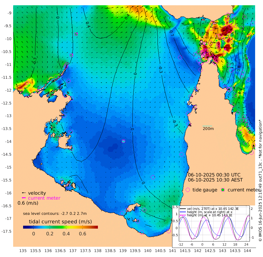 20cm/s 68T +3cm/s rms + 7cm/s -42T. ARA-GOC87 57m 16cm/s 7T +3cm/s rms + 2cm/s -2T. ARA-GOC87 60m 24cm/s 59T +2cm/s rms + 3cm/s 61T. ARA-GOC87 47m 137cm Daru 136cm Bobo Island 51cm Meer Island Barge 87cm Bramble Cay 122cm Unnamed Cay 117cm Pearce Cay 108cm Stephens Island 124cm Merrie England Shoals 138cm Mutacomal Reef 95cm Darnley Island Barge 60cm East Cay 113cm Yorke Island Barge 120cm Rennel Island 118cm Aureed Island 118cm Dungeness Reef 111cm Zagai Island 100cm Yam Island 40cm Dauan Island 45cm Saibai Island 76cm Phipi Reef 102cm Warrior Reef - West 30cm Mabuiag Island Barge 114cm Half Way Island 134cm Coconut Island 117cm Dugong Islet 114cm Poll Island 116cm Kirkcaldie Reef 110cm Suarji Island 110cm Sue Islet -60cm Hawkesbury Island 88cm Alert Patches 92cm Twin Island -35cm Badu Island 89cm St Pauls (Moa Island) -16cm Kubin (Moa Island) 48cm Ince Point 23cm Thursday Island 30cm Nardana Patches -9cm Turtle Head -12cm Round Island -64cm Goods Island -98cm Booby Island -80cm White Rocks Area -93cm Carpentaria 77cm Papou Point -58cm Bampfield Head -80cm Crab Island -91cm Red Wallis Island -39cm Packe Island 142cm Harrington Reef -64cm Herald Camp 32cm Sharp Point -5cm Red Island Point 58cm Possession Island 95cm Alpha Rock 114cm Frederick Point 143cm Wyborn Reef Light 140cm Tetley Island 50cm Triangle Reef 140cm Turtle Head Island 46cm Maclennan Cay 23cm Raine Island 110cm Mcsweeny Reef 100cm Collette Reef 55cm Shadwell Reef 110cm Hannibal Island 90cm Round Point -87cm Vrilya Point 75cm Cape Grenville 65cm Hicks Island 49cm Sir Charles Hardy Island 23cm Harvey Island 56cm Kay Reef 36cm Rocky Island 23cm Chapman Island 20cm Ham Reef 30cm Jubilee Reef 34cm Night Island 22cm Unnamed Reef No. 3 37cm Morris Island 26cm 1st 3 Mile Opening 29cm Creech Reef 39cm Fife Island 28cm Eden Reef 35cm Stanley Island 43cm Normanby River -15cm Yabooma Island 6cm Hutchison River -7cm Elcho Island -12cm North West Crocodile Island 23cm Cape Wessel 23cm Stevens Island 54cm Guluwuru Island 11cm Hopeful Bay 23cm Auster Point 11cm Two Island Bay 22cm Cadell Strait 112cm Mallison Island 49cm Melville Bay (Gove Harbour) 52cm Truant Island 43cm Cape Arnhem 46cm Cape Grey 46cm Hawk Island 41cm Milner Bay (Groote Eylandt) 30cm Cape Beatrice 27cm West Island 31cm Centre Island 37cm Mornington Island 29cm West Wellesley Islands 30cm Bountiful Island 30cm Albert River Mouth 59cm Sweers Island 35cm Karumba -2cm Nassau River Offshore -23cm Christmas Creek -48cm Archer River -58cm Boyd Point -71cm Weipa (Humbug Point) -51cm Pennefather River -84cm Cullen Point