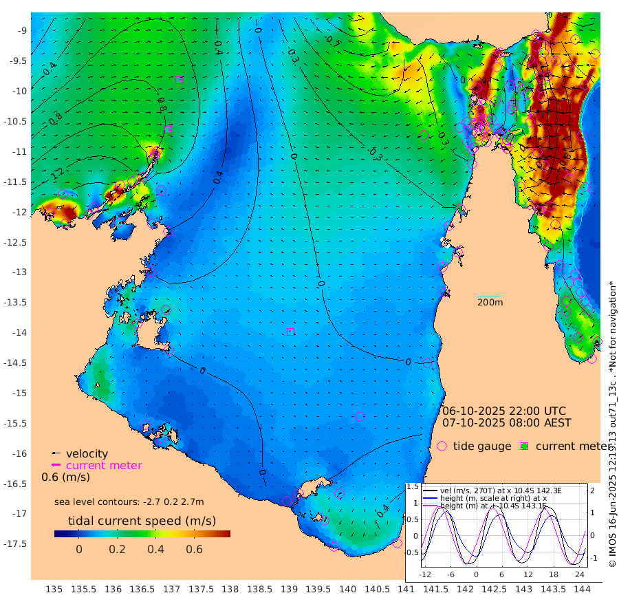 19cm/s 105T +3cm/s rms + 7cm/s -42T. ARA-GOC87 57m 12cm/s -50T +3cm/s rms + 2cm/s -2T. ARA-GOC87 60m 23cm/s 90T +2cm/s rms + 3cm/s 61T. ARA-GOC87 47m 31cm Daru 44cm Bobo Island 82cm Meer Island Barge 85cm Bramble Cay 62cm Unnamed Cay 64cm Pearce Cay 75cm Stephens Island 74cm Merrie England Shoals 33cm Mutacomal Reef 68cm Darnley Island Barge 91cm East Cay 43cm Yorke Island Barge 50cm Rennel Island 38cm Aureed Island 18cm Dungeness Reef -52cm Zagai Island -52cm Yam Island -99cm Dauan Island -115cm Saibai Island -64cm Phipi Reef -57cm Warrior Reef - West -93cm Mabuiag Island Barge 47cm Half Way Island 16cm Coconut Island 27cm Dugong Islet -17cm Poll Island -6cm Kirkcaldie Reef -52cm Suarji Island -33cm Sue Islet -44cm Hawkesbury Island -45cm Alert Patches -46cm Twin Island -54cm Badu Island -67cm St Pauls (Moa Island) -45cm Kubin (Moa Island) -57cm Ince Point -57cm Thursday Island -59cm Nardana Patches -40cm Turtle Head -35cm Round Island -29cm Goods Island -36cm Booby Island -30cm White Rocks Area -65cm Carpentaria -52cm Papou Point -25cm Bampfield Head -24cm Crab Island -41cm Red Wallis Island -35cm Packe Island 28cm Harrington Reef -39cm Herald Camp -33cm Sharp Point -38cm Red Island Point -34cm Possession Island -48cm Alpha Rock -17cm Frederick Point 23cm Wyborn Reef Light 7cm Tetley Island 53cm Triangle Reef 46cm Turtle Head Island 71cm Maclennan Cay 85cm Raine Island 58cm Mcsweeny Reef 64cm Collette Reef 72cm Shadwell Reef 77cm Hannibal Island 92cm Round Point -30cm Vrilya Point 82cm Cape Grenville 86cm Hicks Island 72cm Sir Charles Hardy Island 26cm Harvey Island 90cm Kay Reef 85cm Rocky Island 84cm Chapman Island 77cm Ham Reef 81cm Jubilee Reef 78cm Night Island 81cm Unnamed Reef No. 3 93cm Morris Island 88cm 1st 3 Mile Opening 87cm Creech Reef 96cm Fife Island 113cm Eden Reef 97cm Stanley Island 108cm Normanby River 144cm Yabooma Island 169cm Hutchison River 144cm Elcho Island 132cm North West Crocodile Island 75cm Cape Wessel 127cm Stevens Island 75cm Guluwuru Island 122cm Hopeful Bay 101cm Auster Point 98cm Two Island Bay 141cm Cadell Strait 48cm Mallison Island 75cm Melville Bay (Gove Harbour) 76cm Truant Island 47cm Cape Arnhem 33cm Cape Grey 30cm Hawk Island 10cm Milner Bay (Groote Eylandt) 8cm Cape Beatrice -25cm West Island -22cm Centre Island 20cm Mornington Island 15cm West Wellesley Islands 24cm Bountiful Island 52cm Albert River Mouth 59cm Sweers Island 53cm Karumba 19cm Nassau River Offshore 11cm Christmas Creek 9cm Archer River -13cm Boyd Point 0cm Weipa (Humbug Point) -3cm Pennefather River -33cm Cullen Point
