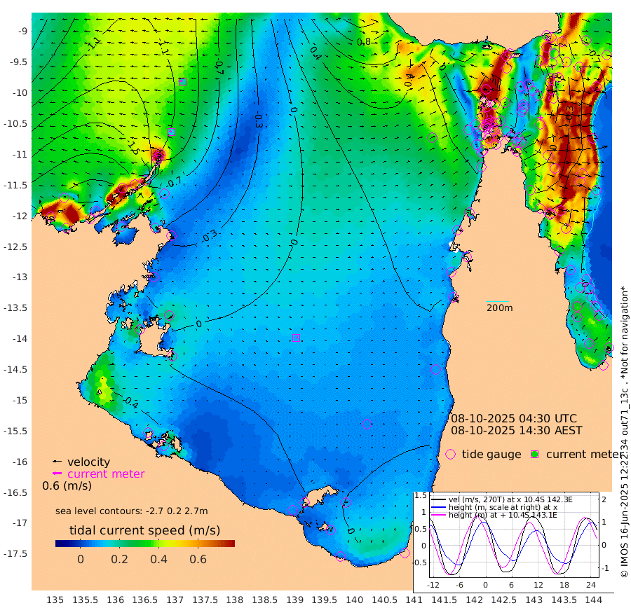 16cm/s -61T +3cm/s rms + 7cm/s -42T. ARA-GOC87 57m 9cm/s 81T +3cm/s rms + 2cm/s -2T. ARA-GOC87 60m 18cm/s -75T +2cm/s rms + 3cm/s 61T. ARA-GOC87 47m -2cm Daru -15cm Bobo Island -53cm Meer Island Barge -56cm Bramble Cay -28cm Unnamed Cay -39cm Pearce Cay -44cm Stephens Island -38cm Merrie England Shoals -7cm Mutacomal Reef -34cm Darnley Island Barge -63cm East Cay -13cm Yorke Island Barge -23cm Rennel Island -9cm Aureed Island 7cm Dungeness Reef 65cm Zagai Island 54cm Yam Island 88cm Dauan Island 102cm Saibai Island 81cm Phipi Reef 63cm Warrior Reef - West 77cm Mabuiag Island Barge -23cm Half Way Island 12cm Coconut Island -7cm Dugong Islet 30cm Poll Island 23cm Kirkcaldie Reef 71cm Suarji Island 48cm Sue Islet 3cm Hawkesbury Island 58cm Alert Patches 52cm Twin Island 26cm Badu Island 69cm St Pauls (Moa Island) 20cm Kubin (Moa Island) 52cm Ince Point 48cm Thursday Island 50cm Nardana Patches 28cm Turtle Head 31cm Round Island 2cm Goods Island 6cm Booby Island -3cm White Rocks Area 44cm Carpentaria 49cm Papou Point 31cm Bampfield Head 4cm Crab Island 4cm Red Wallis Island 11cm Packe Island -1cm Harrington Reef 25cm Herald Camp 36cm Sharp Point 18cm Red Island Point 49cm Possession Island 52cm Alpha Rock 31cm Frederick Point 3cm Wyborn Reef Light 14cm Tetley Island -33cm Triangle Reef -16cm Turtle Head Island -48cm Maclennan Cay -60cm Raine Island -27cm Mcsweeny Reef -29cm Collette Reef -40cm Shadwell Reef -38cm Hannibal Island -62cm Round Point 12cm Vrilya Point -50cm Cape Grenville -56cm Hicks Island -49cm Sir Charles Hardy Island -16cm Harvey Island -60cm Kay Reef -59cm Rocky Island -60cm Chapman Island -56cm Ham Reef -58cm Jubilee Reef -52cm Night Island -59cm Unnamed Reef No. 3 -66cm Morris Island -56cm 1st 3 Mile Opening -59cm Creech Reef -71cm Fife Island -83cm Eden Reef -66cm Stanley Island -84cm Normanby River -216cm Yabooma Island -245cm Hutchison River -212cm Elcho Island -209cm North West Crocodile Island -118cm Cape Wessel -181cm Stevens Island -94cm Guluwuru Island -164cm Hopeful Bay -137cm Auster Point -149cm Two Island Bay -207cm Cadell Strait -16cm Mallison Island -90cm Melville Bay (Gove Harbour) -92cm Truant Island -48cm Cape Arnhem -24cm Cape Grey -13cm Hawk Island 16cm Milner Bay (Groote Eylandt) 10cm Cape Beatrice 53cm West Island 62cm Centre Island 29cm Mornington Island 29cm West Wellesley Islands 19cm Bountiful Island -12cm Albert River Mouth 7cm Sweers Island -7cm Karumba 7cm Nassau River Offshore 8cm Christmas Creek -1cm Archer River 11cm Boyd Point -3cm Weipa (Humbug Point) 8cm Pennefather River 18cm Cullen Point