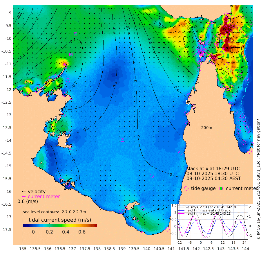 20cm/s -81T +3cm/s rms + 7cm/s -42T. ARA-GOC87 57m 8cm/s 25T +3cm/s rms + 2cm/s -2T. ARA-GOC87 60m 21cm/s -100T +2cm/s rms + 3cm/s 61T. ARA-GOC87 47m -142cm Daru -148cm Bobo Island -107cm Meer Island Barge -132cm Bramble Cay -145cm Unnamed Cay -150cm Pearce Cay -144cm Stephens Island -142cm Merrie England Shoals -139cm Mutacomal Reef -133cm Darnley Island Barge -118cm East Cay -134cm Yorke Island Barge -139cm Rennel Island -138cm Aureed Island -131cm Dungeness Reef -95cm Zagai Island -91cm Yam Island -48cm Dauan Island -36cm Saibai Island -80cm Phipi Reef -98cm Warrior Reef - West -21cm Mabuiag Island Barge -132cm Half Way Island -130cm Coconut Island -131cm Dugong Islet -108cm Poll Island -109cm Kirkcaldie Reef -97cm Suarji Island -96cm Sue Islet 9cm Hawkesbury Island -73cm Alert Patches -78cm Twin Island -2cm Badu Island -72cm St Pauls (Moa Island) -22cm Kubin (Moa Island) -46cm Ince Point -29cm Thursday Island -34cm Nardana Patches -22cm Turtle Head -18cm Round Island 6cm Goods Island 41cm Booby Island 25cm White Rocks Area 75cm Carpentaria -63cm Papou Point 9cm Bampfield Head 49cm Crab Island 42cm Red Wallis Island -6cm Packe Island -141cm Harrington Reef 7cm Herald Camp -11cm Sharp Point -12cm Red Island Point -57cm Possession Island -72cm Alpha Rock -105cm Frederick Point -138cm Wyborn Reef Light -129cm Tetley Island -94cm Triangle Reef -148cm Turtle Head Island -102cm Maclennan Cay -84cm Raine Island -134cm Mcsweeny Reef -126cm Collette Reef -99cm Shadwell Reef -141cm Hannibal Island -135cm Round Point 71cm Vrilya Point -118cm Cape Grenville -119cm Hicks Island -117cm Sir Charles Hardy Island -37cm Harvey Island -108cm Kay Reef -99cm Rocky Island -89cm Chapman Island -82cm Ham Reef -91cm Jubilee Reef -87cm Night Island -82cm Unnamed Reef No. 3 -102cm Morris Island -92cm 1st 3 Mile Opening -93cm Creech Reef -100cm Fife Island -111cm Eden Reef -98cm Stanley Island -114cm Normanby River -118cm Yabooma Island -158cm Hutchison River -116cm Elcho Island -106cm North West Crocodile Island -92cm Cape Wessel -115cm Stevens Island -121cm Guluwuru Island -103cm Hopeful Bay -101cm Auster Point -98cm Two Island Bay -145cm Cadell Strait -110cm Mallison Island -112cm Melville Bay (Gove Harbour) -115cm Truant Island -78cm Cape Arnhem -58cm Cape Grey -45cm Hawk Island -7cm Milner Bay (Groote Eylandt) 0cm Cape Beatrice 34cm West Island 39cm Centre Island -9cm Mornington Island -2cm West Wellesley Islands -42cm Bountiful Island -20cm Albert River Mouth -31cm Sweers Island -23cm Karumba -14cm Nassau River Offshore -11cm Christmas Creek 11cm Archer River 19cm Boyd Point 14cm Weipa (Humbug Point) 45cm Pennefather River 54cm Cullen Point