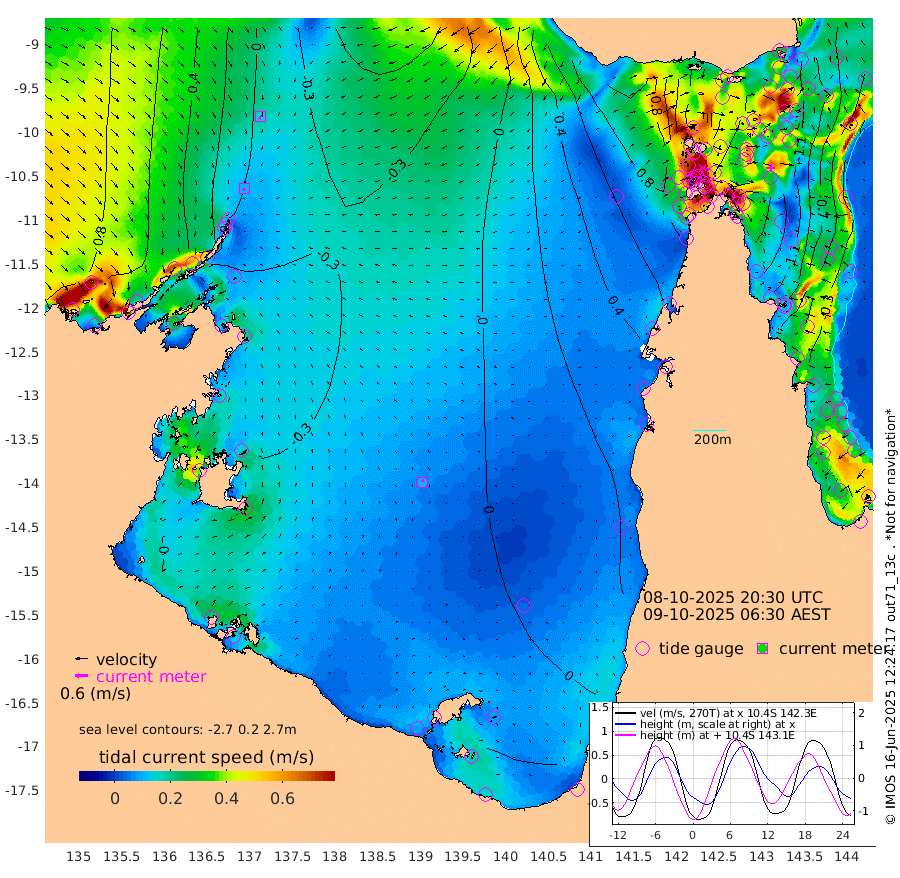 12cm/s -136T +3cm/s rms + 7cm/s -42T. ARA-GOC87 57m 12cm/s -15T +3cm/s rms + 2cm/s -2T. ARA-GOC87 60m 14cm/s -163T +2cm/s rms + 3cm/s 61T. ARA-GOC87 47m -138cm Daru -131cm Bobo Island -49cm Meer Island Barge -75cm Bramble Cay -114cm Unnamed Cay -111cm Pearce Cay -100cm Stephens Island -104cm Merrie England Shoals -132cm Mutacomal Reef -96cm Darnley Island Barge -49cm East Cay -119cm Yorke Island Barge -113cm Rennel Island -123cm Aureed Island -129cm Dungeness Reef -144cm Zagai Island -135cm Yam Island -115cm Dauan Island -118cm Saibai Island -125cm Phipi Reef -149cm Warrior Reef - West -72cm Mabuiag Island Barge -112cm Half Way Island -129cm Coconut Island -125cm Dugong Islet -129cm Poll Island -125cm Kirkcaldie Reef -134cm Suarji Island -134cm Sue Islet 38cm Hawkesbury Island -102cm Alert Patches -109cm Twin Island 13cm Badu Island -119cm St Pauls (Moa Island) -11cm Kubin (Moa Island) -71cm Ince Point -45cm Thursday Island -54cm Nardana Patches -12cm Turtle Head 3cm Round Island 47cm Goods Island 86cm Booby Island 75cm White Rocks Area 80cm Carpentaria -95cm Papou Point 62cm Bampfield Head 86cm Crab Island 79cm Red Wallis Island 20cm Packe Island -135cm Harrington Reef 38cm Herald Camp -43cm Sharp Point -3cm Red Island Point -64cm Possession Island -111cm Alpha Rock -122cm Frederick Point -136cm Wyborn Reef Light -137cm Tetley Island -53cm Triangle Reef -126cm Turtle Head Island -48cm Maclennan Cay -13cm Raine Island -103cm Mcsweeny Reef -91cm Collette Reef -49cm Shadwell Reef -98cm Hannibal Island -71cm Round Point 94cm Vrilya Point -62cm Cape Grenville -56cm Hicks Island -60cm Sir Charles Hardy Island -20cm Harvey Island -42cm Kay Reef -31cm Rocky Island -16cm Chapman Island -17cm Ham Reef -26cm Jubilee Reef -27cm Night Island -14cm Unnamed Reef No. 3 -28cm Morris Island -21cm 1st 3 Mile Opening -24cm Creech Reef -26cm Fife Island -22cm Eden Reef -24cm Stanley Island -30cm Normanby River 57cm Yabooma Island 40cm Hutchison River 53cm Elcho Island 54cm North West Crocodile Island -5cm Cape Wessel 25cm Stevens Island -60cm Guluwuru Island 32cm Hopeful Bay 10cm Auster Point 8cm Two Island Bay 0cm Cadell Strait -138cm Mallison Island -45cm Melville Bay (Gove Harbour) -46cm Truant Island -42cm Cape Arnhem -40cm Cape Grey -35cm Hawk Island -20cm Milner Bay (Groote Eylandt) -15cm Cape Beatrice -17cm West Island -11cm Centre Island -32cm Mornington Island -29cm West Wellesley Islands -49cm Bountiful Island -20cm Albert River Mouth -32cm Sweers Island -20cm Karumba -15cm Nassau River Offshore -2cm Christmas Creek 39cm Archer River 37cm Boyd Point 50cm Weipa (Humbug Point) 65cm Pennefather River 73cm Cullen Point