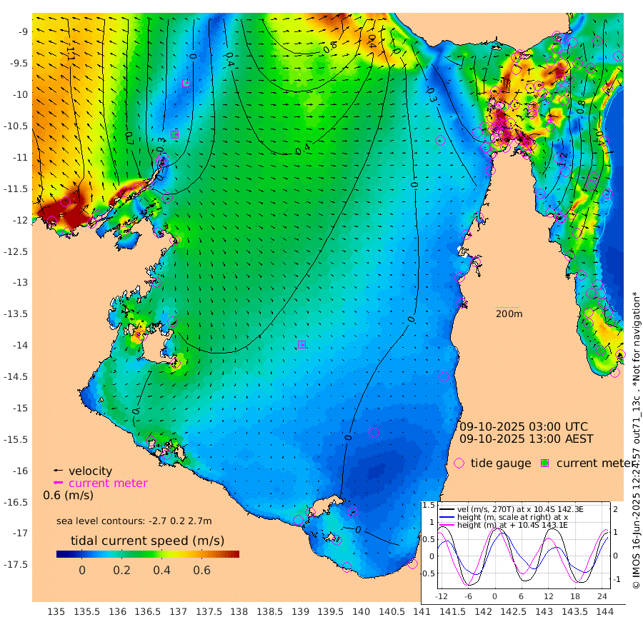 23cm/s 91T +3cm/s rms + 7cm/s -42T. ARA-GOC87 57m 12cm/s 140T +3cm/s rms + 2cm/s -2T. ARA-GOC87 60m 17cm/s 72T +2cm/s rms + 3cm/s 61T. ARA-GOC87 47m 132cm Daru 126cm Bobo Island 51cm Meer Island Barge 71cm Bramble Cay 107cm Unnamed Cay 106cm Pearce Cay 96cm Stephens Island 100cm Merrie England Shoals 122cm Mutacomal Reef 94cm Darnley Island Barge 48cm East Cay 114cm Yorke Island Barge 108cm Rennel Island 118cm Aureed Island 124cm Dungeness Reef 142cm Zagai Island 127cm Yam Island 112cm Dauan Island 111cm Saibai Island 127cm Phipi Reef 142cm Warrior Reef - West 73cm Mabuiag Island Barge 108cm Half Way Island 131cm Coconut Island 117cm Dugong Islet 126cm Poll Island 124cm Kirkcaldie Reef 131cm Suarji Island 128cm Sue Islet -21cm Hawkesbury Island 109cm Alert Patches 113cm Twin Island 12cm Badu Island 121cm St Pauls (Moa Island) 26cm Kubin (Moa Island) 81cm Ince Point 60cm Thursday Island 67cm Nardana Patches 33cm Turtle Head 18cm Round Island -17cm Goods Island -44cm Booby Island -43cm White Rocks Area -31cm Carpentaria 98cm Papou Point -16cm Bampfield Head -36cm Crab Island -41cm Red Wallis Island 7cm Packe Island 131cm Harrington Reef -13cm Herald Camp 42cm Sharp Point 19cm Red Island Point 78cm Possession Island 108cm Alpha Rock 121cm Frederick Point 129cm Wyborn Reef Light 131cm Tetley Island 54cm Triangle Reef 127cm Turtle Head Island 47cm Maclennan Cay 22cm Raine Island 100cm Mcsweeny Reef 90cm Collette Reef 53cm Shadwell Reef 96cm Hannibal Island 68cm Round Point -38cm Vrilya Point 60cm Cape Grenville 56cm Hicks Island 54cm Sir Charles Hardy Island 20cm Harvey Island 41cm Kay Reef 30cm Rocky Island 20cm Chapman Island 19cm Ham Reef 30cm Jubilee Reef 33cm Night Island 19cm Unnamed Reef No. 3 30cm Morris Island 30cm 1st 3 Mile Opening 30cm Creech Reef 29cm Fife Island 25cm Eden Reef 29cm Stanley Island 26cm Normanby River -111cm Yabooma Island -95cm Hutchison River -101cm Elcho Island -108cm North West Crocodile Island -23cm Cape Wessel -63cm Stevens Island 43cm Guluwuru Island -69cm Hopeful Bay -38cm Auster Point -43cm Two Island Bay -39cm Cadell Strait 163cm Mallison Island 24cm Melville Bay (Gove Harbour) 30cm Truant Island 34cm Cape Arnhem 23cm Cape Grey 19cm Hawk Island 3cm Milner Bay (Groote Eylandt) -5cm Cape Beatrice -9cm West Island -3cm Centre Island 10cm Mornington Island 3cm West Wellesley Islands -12cm Bountiful Island -33cm Albert River Mouth -25cm Sweers Island -30cm Karumba 0cm Nassau River Offshore 7cm Christmas Creek -15cm Archer River -10cm Boyd Point -26cm Weipa (Humbug Point) -14cm Pennefather River -32cm Cullen Point