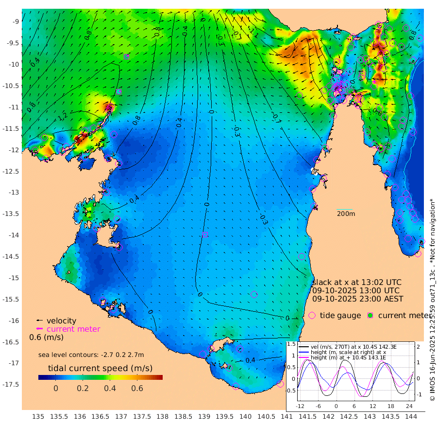 16cm/s 74T +3cm/s rms + 7cm/s -42T. ARA-GOC87 57m 9cm/s -109T +3cm/s rms + 2cm/s -2T. ARA-GOC87 60m 22cm/s 59T +2cm/s rms + 3cm/s 61T. ARA-GOC87 47m 85cm Daru 94cm Bobo Island 58cm Meer Island Barge 78cm Bramble Cay 83cm Unnamed Cay 94cm Pearce Cay 85cm Stephens Island 80cm Merrie England Shoals 81cm Mutacomal Reef 77cm Darnley Island Barge 65cm East Cay 79cm Yorke Island Barge 81cm Rennel Island 82cm Aureed Island 73cm Dungeness Reef 51cm Zagai Island 49cm Yam Island 18cm Dauan Island 11cm Saibai Island 30cm Phipi Reef 57cm Warrior Reef - West -14cm Mabuiag Island Barge 77cm Half Way Island 68cm Coconut Island 76cm Dugong Islet 58cm Poll Island 55cm Kirkcaldie Reef 36cm Suarji Island 48cm Sue Islet -59cm Hawkesbury Island 12cm Alert Patches 23cm Twin Island -53cm Badu Island 21cm St Pauls (Moa Island) -29cm Kubin (Moa Island) -6cm Ince Point -25cm Thursday Island -19cm Nardana Patches -37cm Turtle Head -48cm Round Island -67cm Goods Island -105cm Booby Island -87cm White Rocks Area -132cm Carpentaria 20cm Papou Point -104cm Bampfield Head -102cm Crab Island -97cm Red Wallis Island -53cm Packe Island 78cm Harrington Reef -76cm Herald Camp 2cm Sharp Point -33cm Red Island Point -8cm Possession Island 27cm Alpha Rock 48cm Frederick Point 79cm Wyborn Reef Light 72cm Tetley Island 49cm Triangle Reef 81cm Turtle Head Island 53cm Maclennan Cay 36cm Raine Island 76cm Mcsweeny Reef 68cm Collette Reef 47cm Shadwell Reef 78cm Hannibal Island 77cm Round Point -119cm Vrilya Point 61cm Cape Grenville 65cm Hicks Island 62cm Sir Charles Hardy Island 20cm Harvey Island 54cm Kay Reef 49cm Rocky Island 39cm Chapman Island 37cm Ham Reef 44cm Jubilee Reef 41cm Night Island 36cm Unnamed Reef No. 3 51cm Morris Island 37cm 1st 3 Mile Opening 42cm Creech Reef 53cm Fife Island 58cm Eden Reef 45cm Stanley Island 64cm Normanby River 162cm Yabooma Island 206cm Hutchison River 166cm Elcho Island 163cm North West Crocodile Island 120cm Cape Wessel 155cm Stevens Island 137cm Guluwuru Island 136cm Hopeful Bay 126cm Auster Point 137cm Two Island Bay 195cm Cadell Strait 104cm Mallison Island 125cm Melville Bay (Gove Harbour) 125cm Truant Island 82cm Cape Arnhem 64cm Cape Grey 54cm Hawk Island 21cm Milner Bay (Groote Eylandt) 21cm Cape Beatrice -14cm West Island -26cm Centre Island 21cm Mornington Island 16cm West Wellesley Islands 56cm Bountiful Island 70cm Albert River Mouth 71cm Sweers Island 63cm Karumba 10cm Nassau River Offshore -16cm Christmas Creek -49cm Archer River -60cm Boyd Point -59cm Weipa (Humbug Point) -87cm Pennefather River -99cm Cullen Point