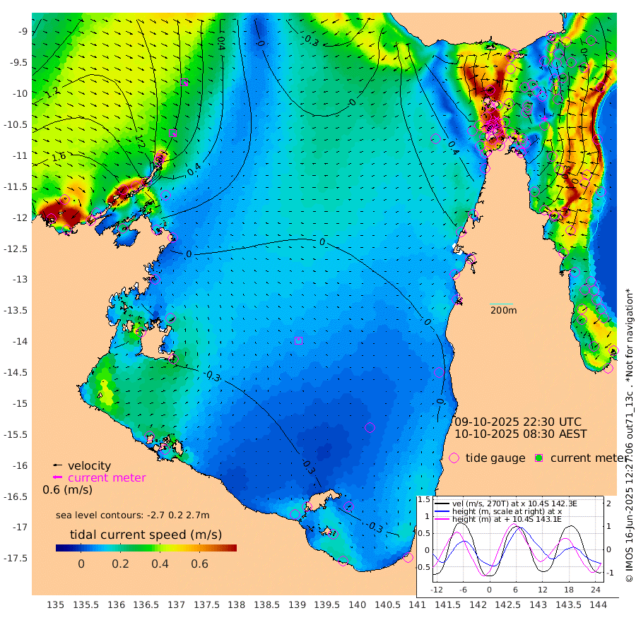 23cm/s 137T +3cm/s rms + 7cm/s -42T. ARA-GOC87 57m 12cm/s -16T +3cm/s rms + 2cm/s -2T. ARA-GOC87 60m 27cm/s 130T +2cm/s rms + 3cm/s 61T. ARA-GOC87 47m -52cm Daru -40cm Bobo Island 10cm Meer Island Barge 2cm Bramble Cay -30cm Unnamed Cay -18cm Pearce Cay -15cm Stephens Island -20cm Merrie England Shoals -49cm Mutacomal Reef -23cm Darnley Island Barge 18cm East Cay -43cm Yorke Island Barge -30cm Rennel Island -42cm Aureed Island -50cm Dungeness Reef -85cm Zagai Island -77cm Yam Island -86cm Dauan Island -98cm Saibai Island -80cm Phipi Reef -91cm Warrior Reef - West -50cm Mabuiag Island Barge -32cm Half Way Island -46cm Coconut Island -48cm Dugong Islet -60cm Poll Island -55cm Kirkcaldie Reef -74cm Suarji Island -77cm Sue Islet 60cm Hawkesbury Island -50cm Alert Patches -52cm Twin Island 42cm Badu Island -68cm St Pauls (Moa Island) 23cm Kubin (Moa Island) -32cm Ince Point -13cm Thursday Island -19cm Nardana Patches 18cm Turtle Head 33cm Round Island 68cm Goods Island 89cm Booby Island 89cm White Rocks Area 55cm Carpentaria -45cm Papou Point 81cm Bampfield Head 85cm Crab Island 82cm Red Wallis Island 45cm Packe Island -47cm Harrington Reef 49cm Herald Camp -37cm Sharp Point 26cm Red Island Point -18cm Possession Island -63cm Alpha Rock -52cm Frederick Point -48cm Wyborn Reef Light -54cm Tetley Island 1cm Triangle Reef -29cm Turtle Head Island 9cm Maclennan Cay 35cm Raine Island -25cm Mcsweeny Reef -19cm Collette Reef 4cm Shadwell Reef -18cm Hannibal Island 10cm Round Point 78cm Vrilya Point 3cm Cape Grenville 12cm Hicks Island 1cm Sir Charles Hardy Island 0cm Harvey Island 18cm Kay Reef 23cm Rocky Island 33cm Chapman Island 27cm Ham Reef 24cm Jubilee Reef 20cm Night Island 32cm Unnamed Reef No. 3 29cm Morris Island 29cm 1st 3 Mile Opening 26cm Creech Reef 30cm Fife Island 39cm Eden Reef 28cm Stanley Island 33cm Normanby River 185cm Yabooma Island 201cm Hutchison River 181cm Elcho Island 174cm North West Crocodile Island 88cm Cape Wessel 148cm Stevens Island 40cm Guluwuru Island 137cm Hopeful Bay 112cm Auster Point 109cm Two Island Bay 144cm Cadell Strait -69cm Mallison Island 47cm Melville Bay (Gove Harbour) 52cm Truant Island 19cm Cape Arnhem -2cm Cape Grey -12cm Hawk Island -28cm Milner Bay (Groote Eylandt) -32cm Cape Beatrice -70cm West Island -66cm Centre Island -69cm Mornington Island -72cm West Wellesley Islands -80cm Bountiful Island -55cm Albert River Mouth -69cm Sweers Island -54cm Karumba -41cm Nassau River Offshore -19cm Christmas Creek 29cm Archer River 27cm Boyd Point 43cm Weipa (Humbug Point) 52cm Pennefather River 55cm Cullen Point