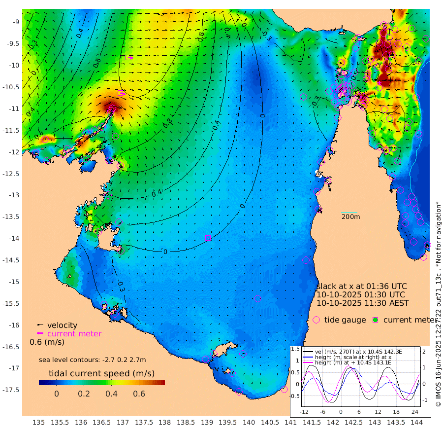 49cm/s 109T +3cm/s rms + 7cm/s -42T. ARA-GOC87 57m 8cm/s 170T +3cm/s rms + 2cm/s -2T. ARA-GOC87 60m 44cm/s 99T +2cm/s rms + 3cm/s 61T. ARA-GOC87 47m 118cm Daru 127cm Bobo Island 92cm Meer Island Barge 108cm Bramble Cay 113cm Unnamed Cay 130cm Pearce Cay 119cm Stephens Island 112cm Merrie England Shoals 107cm Mutacomal Reef 111cm Darnley Island Barge 98cm East Cay 111cm Yorke Island Barge 113cm Rennel Island 116cm Aureed Island 108cm Dungeness Reef 86cm Zagai Island 75cm Yam Island 49cm Dauan Island 33cm Saibai Island 69cm Phipi Reef 85cm Warrior Reef - West 20cm Mabuiag Island Barge 111cm Half Way Island 113cm Coconut Island 104cm Dugong Islet 92cm Poll Island 92cm Kirkcaldie Reef 73cm Suarji Island 76cm Sue Islet 9cm Hawkesbury Island 62cm Alert Patches 69cm Twin Island 28cm Badu Island 64cm St Pauls (Moa Island) 35cm Kubin (Moa Island) 46cm Ince Point 35cm Thursday Island 38cm Nardana Patches 34cm Turtle Head 23cm Round Island 19cm Goods Island -5cm Booby Island 0cm White Rocks Area -32cm Carpentaria 61cm Papou Point 11cm Bampfield Head -1cm Crab Island -5cm Red Wallis Island 27cm Packe Island 115cm Harrington Reef 1cm Herald Camp 7cm Sharp Point 26cm Red Island Point 50cm Possession Island 56cm Alpha Rock 89cm Frederick Point 112cm Wyborn Reef Light 106cm Tetley Island 81cm Triangle Reef 129cm Turtle Head Island 84cm Maclennan Cay 77cm Raine Island 109cm Mcsweeny Reef 102cm Collette Reef 83cm Shadwell Reef 114cm Hannibal Island 111cm Round Point -16cm Vrilya Point 92cm Cape Grenville 98cm Hicks Island 91cm Sir Charles Hardy Island 30cm Harvey Island 84cm Kay Reef 80cm Rocky Island 75cm Chapman Island 68cm Ham Reef 78cm Jubilee Reef 76cm Night Island 71cm Unnamed Reef No. 3 85cm Morris Island 81cm 1st 3 Mile Opening 80cm Creech Reef 86cm Fife Island 96cm Eden Reef 80cm Stanley Island 91cm Normanby River 119cm Yabooma Island 169cm Hutchison River 126cm Elcho Island 111cm North West Crocodile Island 109cm Cape Wessel 130cm Stevens Island 148cm Guluwuru Island 107cm Hopeful Bay 114cm Auster Point 115cm Two Island Bay 179cm Cadell Strait 173cm Mallison Island 125cm Melville Bay (Gove Harbour) 136cm Truant Island 91cm Cape Arnhem 47cm Cape Grey 27cm Hawk Island -23cm Milner Bay (Groote Eylandt) -34cm Cape Beatrice -90cm West Island -87cm Centre Island -51cm Mornington Island -61cm West Wellesley Islands -65cm Bountiful Island -64cm Albert River Mouth -74cm Sweers Island -64cm Karumba -30cm Nassau River Offshore -9cm Christmas Creek -2cm Archer River -3cm Boyd Point -2cm Weipa (Humbug Point) -1cm Pennefather River -19cm Cullen Point