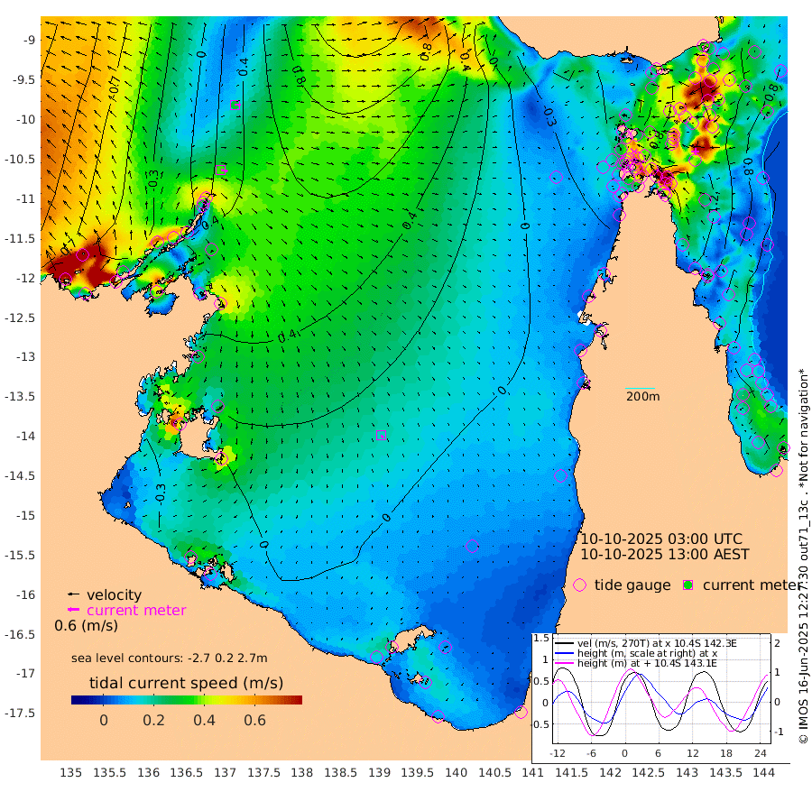 36cm/s 102T +3cm/s rms + 7cm/s -42T. ARA-GOC87 57m 17cm/s 155T +3cm/s rms + 2cm/s -2T. ARA-GOC87 60m 28cm/s 90T +2cm/s rms + 3cm/s 61T. ARA-GOC87 47m 134cm Daru 135cm Bobo Island 77cm Meer Island Barge 94cm Bramble Cay 117cm Unnamed Cay 124cm Pearce Cay 114cm Stephens Island 111cm Merrie England Shoals 122cm Mutacomal Reef 112cm Darnley Island Barge 76cm East Cay 123cm Yorke Island Barge 116cm Rennel Island 127cm Aureed Island 126cm Dungeness Reef 129cm Zagai Island 114cm Yam Island 98cm Dauan Island 91cm Saibai Island 111cm Phipi Reef 129cm Warrior Reef - West 56cm Mabuiag Island Barge 118cm Half Way Island 130cm Coconut Island 121cm Dugong Islet 119cm Poll Island 119cm Kirkcaldie Reef 112cm Suarji Island 116cm Sue Islet -10cm Hawkesbury Island 94cm Alert Patches 100cm Twin Island 19cm Badu Island 104cm St Pauls (Moa Island) 32cm Kubin (Moa Island) 71cm Ince Point 53cm Thursday Island 58cm Nardana Patches 36cm Turtle Head 18cm Round Island -2cm Goods Island -28cm Booby Island -28cm White Rocks Area -26cm Carpentaria 87cm Papou Point -8cm Bampfield Head -22cm Crab Island -26cm Red Wallis Island 16cm Packe Island 131cm Harrington Reef -7cm Herald Camp 30cm Sharp Point 22cm Red Island Point 67cm Possession Island 92cm Alpha Rock 114cm Frederick Point 128cm Wyborn Reef Light 126cm Tetley Island 73cm Triangle Reef 134cm Turtle Head Island 71cm Maclennan Cay 51cm Raine Island 112cm Mcsweeny Reef 103cm Collette Reef 74cm Shadwell Reef 111cm Hannibal Island 92cm Round Point -26cm Vrilya Point 80cm Cape Grenville 80cm Hicks Island 79cm Sir Charles Hardy Island 27cm Harvey Island 65cm Kay Reef 58cm Rocky Island 49cm Chapman Island 47cm Ham Reef 58cm Jubilee Reef 58cm Night Island 48cm Unnamed Reef No. 3 60cm Morris Island 59cm 1st 3 Mile Opening 59cm Creech Reef 59cm Fife Island 63cm Eden Reef 58cm Stanley Island 59cm Normanby River -44cm Yabooma Island -15cm Hutchison River -35cm Elcho Island -46cm North West Crocodile Island 23cm Cape Wessel -5cm Stevens Island 90cm Guluwuru Island -17cm Hopeful Bay 10cm Auster Point 10cm Two Island Bay 39cm Cadell Strait 204cm Mallison Island 64cm Melville Bay (Gove Harbour) 73cm Truant Island 59cm Cape Arnhem 30cm Cape Grey 17cm Hawk Island -16cm Milner Bay (Groote Eylandt) -25cm Cape Beatrice -50cm West Island -46cm Centre Island -22cm Mornington Island -29cm West Wellesley Islands -44cm Bountiful Island -64cm Albert River Mouth -68cm Sweers Island -63cm Karumba -12cm Nassau River Offshore 6cm Christmas Creek -5cm Archer River -1cm Boyd Point -11cm Weipa (Humbug Point) -5cm Pennefather River -23cm Cullen Point