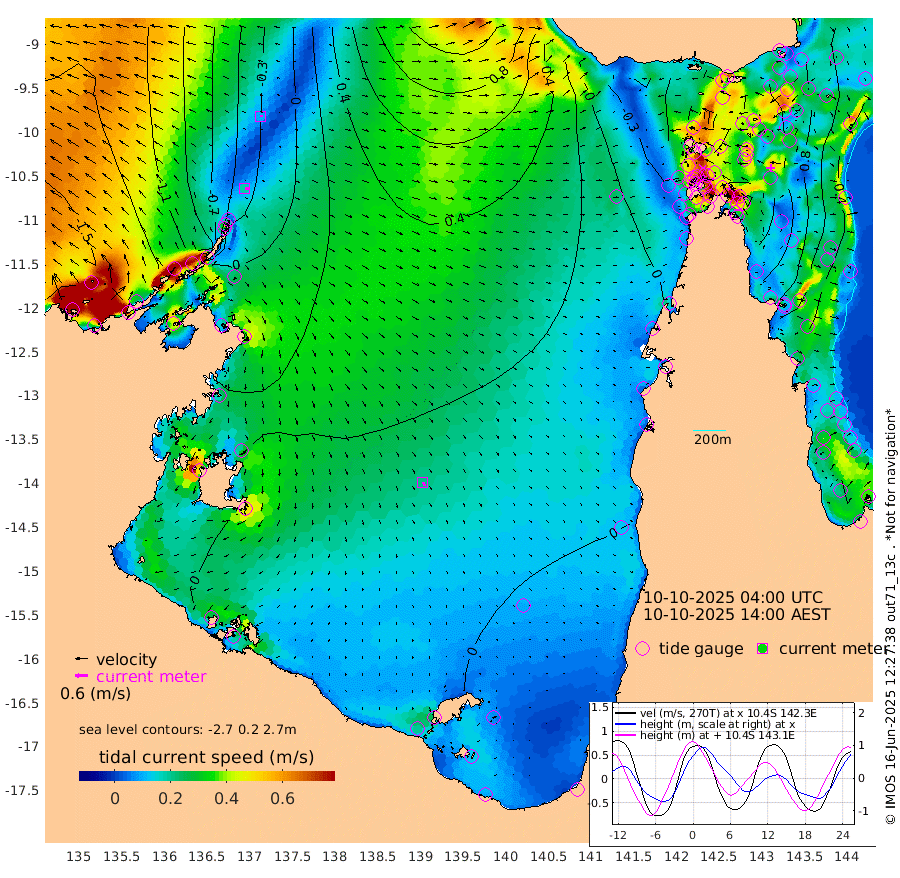 19cm/s 97T +3cm/s rms + 7cm/s -42T. ARA-GOC87 57m 20cm/s 151T +3cm/s rms + 2cm/s -2T. ARA-GOC87 60m 10cm/s 76T +2cm/s rms + 3cm/s 61T. ARA-GOC87 47m 112cm Daru 105cm Bobo Island 50cm Meer Island Barge 62cm Bramble Cay 91cm Unnamed Cay 89cm Pearce Cay 83cm Stephens Island 84cm Merrie England Shoals 102cm Mutacomal Reef 86cm Darnley Island Barge 44cm East Cay 101cm Yorke Island Barge 91cm Rennel Island 103cm Aureed Island 107cm Dungeness Reef 124cm Zagai Island 111cm Yam Island 108cm Dauan Island 108cm Saibai Island 113cm Phipi Reef 126cm Warrior Reef - West 70cm Mabuiag Island Barge 94cm Half Way Island 110cm Coconut Island 102cm Dugong Islet 108cm Poll Island 108cm Kirkcaldie Reef 112cm Suarji Island 114cm Sue Islet -7cm Hawkesbury Island 97cm Alert Patches 99cm Twin Island 20cm Badu Island 108cm St Pauls (Moa Island) 31cm Kubin (Moa Island) 75cm Ince Point 60cm Thursday Island 65cm Nardana Patches 39cm Turtle Head 21cm Round Island -1cm Goods Island -19cm Booby Island -24cm White Rocks Area 1cm Carpentaria 85cm Papou Point 0cm Bampfield Head -15cm Crab Island -17cm Red Wallis Island 18cm Packe Island 110cm Harrington Reef 4cm Herald Camp 38cm Sharp Point 22cm Red Island Point 68cm Possession Island 95cm Alpha Rock 104cm Frederick Point 107cm Wyborn Reef Light 109cm Tetley Island 52cm Triangle Reef 105cm Turtle Head Island 46cm Maclennan Cay 25cm Raine Island 87cm Mcsweeny Reef 79cm Collette Reef 52cm Shadwell Reef 84cm Hannibal Island 57cm Round Point -11cm Vrilya Point 55cm Cape Grenville 50cm Hicks Island 55cm Sir Charles Hardy Island 18cm Harvey Island 40cm Kay Reef 32cm Rocky Island 24cm Chapman Island 25cm Ham Reef 33cm Jubilee Reef 35cm Night Island 24cm Unnamed Reef No. 3 31cm Morris Island 35cm 1st 3 Mile Opening 34cm Creech Reef 30cm Fife Island 29cm Eden Reef 32cm Stanley Island 26cm Normanby River -151cm Yabooma Island -147cm Hutchison River -145cm Elcho Island -151cm North West Crocodile Island -50cm Cape Wessel -105cm Stevens Island 19cm Guluwuru Island -105cm Hopeful Bay -70cm Auster Point -73cm Two Island Bay -78cm Cadell Strait 164cm Mallison Island -1cm Melville Bay (Gove Harbour) 4cm Truant Island 16cm Cape Arnhem 6cm Cape Grey 0cm Hawk Island -13cm Milner Bay (Groote Eylandt) -18cm Cape Beatrice -15cm West Island -10cm Centre Island -1cm Mornington Island -4cm West Wellesley Islands -26cm Bountiful Island -59cm Albert River Mouth -59cm Sweers Island -56cm Karumba 3cm Nassau River Offshore 20cm Christmas Creek 4cm Archer River 11cm Boyd Point -3cm Weipa (Humbug Point) 6cm Pennefather River -6cm Cullen Point