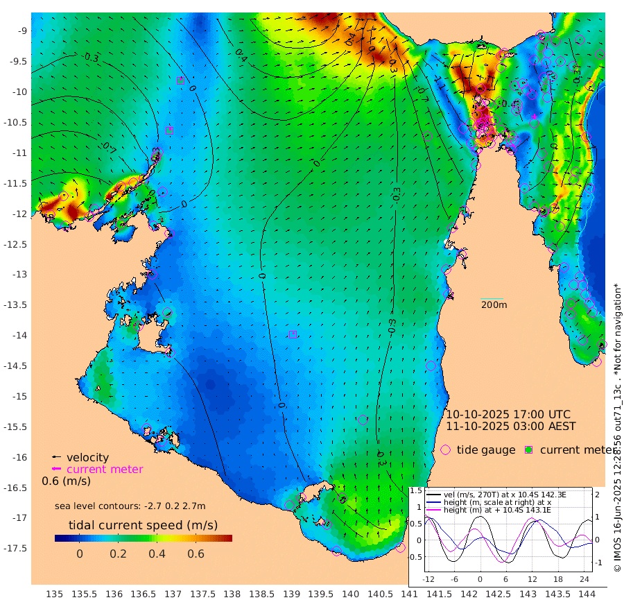 20cm/s 18T +3cm/s rms + 7cm/s -42T. ARA-GOC87 57m 11cm/s 20T +3cm/s rms + 2cm/s -2T. ARA-GOC87 60m 22cm/s 15T +2cm/s rms + 3cm/s 61T. ARA-GOC87 47m -13cm Daru -14cm Bobo Island -39cm Meer Island Barge -39cm Bramble Cay -25cm Unnamed Cay -32cm Pearce Cay -30cm Stephens Island -28cm Merrie England Shoals -15cm Mutacomal Reef -22cm Darnley Island Barge -49cm East Cay -11cm Yorke Island Barge -27cm Rennel Island -17cm Aureed Island -23cm Dungeness Reef 4cm Zagai Island -5cm Yam Island -18cm Dauan Island 3cm Saibai Island -35cm Phipi Reef -3cm Warrior Reef - West -32cm Mabuiag Island Barge -19cm Half Way Island -21cm Coconut Island -15cm Dugong Islet -14cm Poll Island -16cm Kirkcaldie Reef -28cm Suarji Island 4cm Sue Islet -130cm Hawkesbury Island -40cm Alert Patches -30cm Twin Island -121cm Badu Island -22cm St Pauls (Moa Island) -99cm Kubin (Moa Island) -51cm Ince Point -69cm Thursday Island -64cm Nardana Patches -103cm Turtle Head -113cm Round Island -143cm Goods Island -154cm Booby Island -154cm White Rocks Area -97cm Carpentaria -24cm Papou Point -162cm Bampfield Head -127cm Crab Island -142cm Red Wallis Island -125cm Packe Island -18cm Harrington Reef -136cm Herald Camp 11cm Sharp Point -88cm Red Island Point -61cm Possession Island -9cm Alpha Rock -23cm Frederick Point -15cm Wyborn Reef Light -12cm Tetley Island -38cm Triangle Reef -25cm Turtle Head Island -44cm Maclennan Cay -58cm Raine Island -26cm Mcsweeny Reef -28cm Collette Reef -39cm Shadwell Reef -30cm Hannibal Island -48cm Round Point -106cm Vrilya Point -41cm Cape Grenville -47cm Hicks Island -48cm Sir Charles Hardy Island -12cm Harvey Island -49cm Kay Reef -53cm Rocky Island -61cm Chapman Island -51cm Ham Reef -49cm Jubilee Reef -47cm Night Island -56cm Unnamed Reef No. 3 -56cm Morris Island -59cm 1st 3 Mile Opening -54cm Creech Reef -53cm Fife Island -63cm Eden Reef -54cm Stanley Island -55cm Normanby River -107cm Yabooma Island -118cm Hutchison River -97cm Elcho Island -91cm North West Crocodile Island -23cm Cape Wessel -65cm Stevens Island 8cm Guluwuru Island -67cm Hopeful Bay -45cm Auster Point -32cm Two Island Bay -52cm Cadell Strait 119cm Mallison Island -8cm Melville Bay (Gove Harbour) -7cm Truant Island 5cm Cape Arnhem 17cm Cape Grey 20cm Hawk Island 40cm Milner Bay (Groote Eylandt) 38cm Cape Beatrice 62cm West Island 60cm Centre Island 32cm Mornington Island 36cm West Wellesley Islands 12cm Bountiful Island 29cm Albert River Mouth 42cm Sweers Island 18cm Karumba -19cm Nassau River Offshore -50cm Christmas Creek -80cm Archer River -78cm Boyd Point -103cm Weipa (Humbug Point) -75cm Pennefather River -99cm Cullen Point