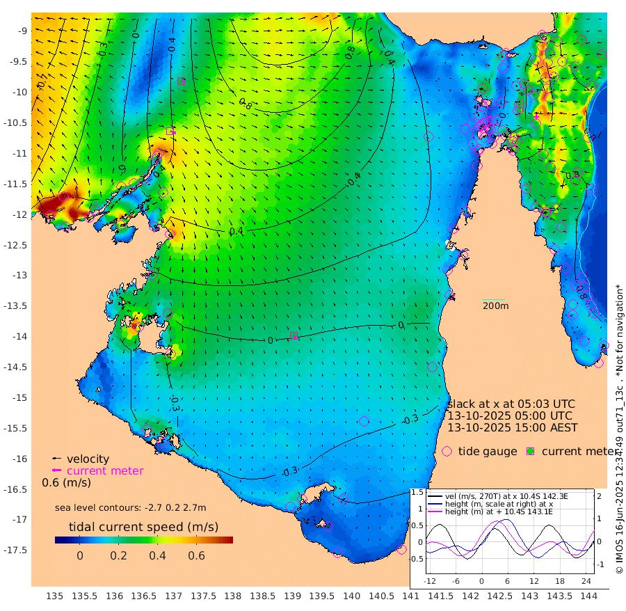 40cm/s 111T +3cm/s rms + 7cm/s -42T. ARA-GOC87 57m 29cm/s 158T +3cm/s rms + 2cm/s -2T. ARA-GOC87 60m 30cm/s 105T +2cm/s rms + 3cm/s 61T. ARA-GOC87 47m 63cm Daru 71cm Bobo Island 80cm Meer Island Barge 75cm Bramble Cay 68cm Unnamed Cay 77cm Pearce Cay 77cm Stephens Island 66cm Merrie England Shoals 55cm Mutacomal Reef 85cm Darnley Island Barge 77cm East Cay 77cm Yorke Island Barge 61cm Rennel Island 72cm Aureed Island 57cm Dungeness Reef 46cm Zagai Island 37cm Yam Island 38cm Dauan Island 39cm Saibai Island 27cm Phipi Reef 47cm Warrior Reef - West 15cm Mabuiag Island Barge 65cm Half Way Island 56cm Coconut Island 61cm Dugong Islet 43cm Poll Island 46cm Kirkcaldie Reef 22cm Suarji Island 48cm Sue Islet 24cm Hawkesbury Island 25cm Alert Patches 31cm Twin Island 24cm Badu Island 27cm St Pauls (Moa Island) 26cm Kubin (Moa Island) 22cm Ince Point 21cm Thursday Island 21cm Nardana Patches 24cm Turtle Head 12cm Round Island 26cm Goods Island 24cm Booby Island 12cm White Rocks Area 31cm Carpentaria 26cm Papou Point 25cm Bampfield Head 18cm Crab Island 21cm Red Wallis Island 26cm Packe Island 55cm Harrington Reef 22cm Herald Camp 1cm Sharp Point 18cm Red Island Point 18cm Possession Island 27cm Alpha Rock 42cm Frederick Point 56cm Wyborn Reef Light 51cm Tetley Island 68cm Triangle Reef 67cm Turtle Head Island 72cm Maclennan Cay 69cm Raine Island 69cm Mcsweeny Reef 70cm Collette Reef 70cm Shadwell Reef 76cm Hannibal Island 74cm Round Point 23cm Vrilya Point 69cm Cape Grenville 74cm Hicks Island 86cm Sir Charles Hardy Island 23cm Harvey Island 73cm Kay Reef 72cm Rocky Island 75cm Chapman Island 73cm Ham Reef 75cm Jubilee Reef 66cm Night Island 73cm Unnamed Reef No. 3 74cm Morris Island 74cm 1st 3 Mile Opening 76cm Creech Reef 73cm Fife Island 91cm Eden Reef 76cm Stanley Island 79cm Normanby River -5cm Yabooma Island 8cm Hutchison River -9cm Elcho Island -20cm North West Crocodile Island 48cm Cape Wessel 15cm Stevens Island 96cm Guluwuru Island 9cm Hopeful Bay 30cm Auster Point 38cm Two Island Bay 68cm Cadell Strait 235cm Mallison Island 65cm Melville Bay (Gove Harbour) 77cm Truant Island 53cm Cape Arnhem 12cm Cape Grey -12cm Hawk Island -55cm Milner Bay (Groote Eylandt) -63cm Cape Beatrice -98cm West Island -98cm Centre Island -86cm Mornington Island -84cm West Wellesley Islands -107cm Bountiful Island -152cm Albert River Mouth -166cm Sweers Island -149cm Karumba -41cm Nassau River Offshore 3cm Christmas Creek 21cm Archer River 32cm Boyd Point 27cm Weipa (Humbug Point) 23cm Pennefather River 23cm Cullen Point