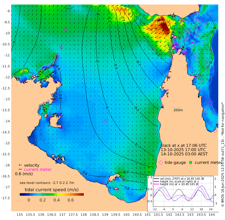 20cm/s 29T +3cm/s rms + 7cm/s -42T. ARA-GOC87 57m 17cm/s -44T +3cm/s rms + 2cm/s -2T. ARA-GOC87 60m 29cm/s 31T +2cm/s rms + 3cm/s 61T. ARA-GOC87 47m -50cm Daru -38cm Bobo Island -9cm Meer Island Barge -22cm Bramble Cay -41cm Unnamed Cay -38cm Pearce Cay -33cm Stephens Island -43cm Merrie England Shoals -58cm Mutacomal Reef -20cm Darnley Island Barge -16cm East Cay -31cm Yorke Island Barge -51cm Rennel Island -34cm Aureed Island -60cm Dungeness Reef -59cm Zagai Island -80cm Yam Island -72cm Dauan Island -65cm Saibai Island -72cm Phipi Reef -61cm Warrior Reef - West -110cm Mabuiag Island Barge -52cm Half Way Island -65cm Coconut Island -60cm Dugong Islet -75cm Poll Island -84cm Kirkcaldie Reef -92cm Suarji Island -68cm Sue Islet -193cm Hawkesbury Island -118cm Alert Patches -111cm Twin Island -174cm Badu Island -112cm St Pauls (Moa Island) -159cm Kubin (Moa Island) -129cm Ince Point -145cm Thursday Island -139cm Nardana Patches -154cm Turtle Head -164cm Round Island -180cm Goods Island -200cm Booby Island -196cm White Rocks Area -174cm Carpentaria -105cm Papou Point -205cm Bampfield Head -172cm Crab Island -193cm Red Wallis Island -173cm Packe Island -72cm Harrington Reef -185cm Herald Camp -25cm Sharp Point -147cm Red Island Point -125cm Possession Island -92cm Alpha Rock -93cm Frederick Point -65cm Wyborn Reef Light -72cm Tetley Island -22cm Triangle Reef -78cm Turtle Head Island -22cm Maclennan Cay -13cm Raine Island -38cm Mcsweeny Reef -30cm Collette Reef -16cm Shadwell Reef -28cm Hannibal Island -29cm Round Point -167cm Vrilya Point -27cm Cape Grenville -21cm Hicks Island -20cm Sir Charles Hardy Island -7cm Harvey Island -20cm Kay Reef -11cm Rocky Island -10cm Chapman Island -10cm Ham Reef -11cm Jubilee Reef -12cm Night Island -14cm Unnamed Reef No. 3 -13cm Morris Island -15cm 1st 3 Mile Opening -13cm Creech Reef -7cm Fife Island 0cm Eden Reef -13cm Stanley Island -9cm Normanby River 20cm Yabooma Island 39cm Hutchison River 38cm Elcho Island 32cm North West Crocodile Island 42cm Cape Wessel 40cm Stevens Island 74cm Guluwuru Island 44cm Hopeful Bay 37cm Auster Point 42cm Two Island Bay 65cm Cadell Strait 147cm Mallison Island 63cm Melville Bay (Gove Harbour) 60cm Truant Island 53cm Cape Arnhem 53cm Cape Grey 61cm Hawk Island 66cm Milner Bay (Groote Eylandt) 64cm Cape Beatrice 62cm West Island 61cm Centre Island 97cm Mornington Island 98cm West Wellesley Islands 119cm Bountiful Island 170cm Albert River Mouth 188cm Sweers Island 148cm Karumba 42cm Nassau River Offshore -10cm Christmas Creek -63cm Archer River -85cm Boyd Point -90cm Weipa (Humbug Point) -108cm Pennefather River -139cm Cullen Point