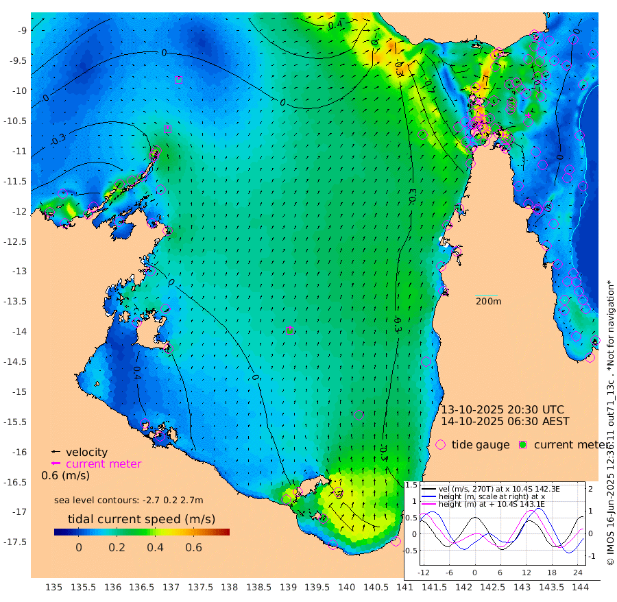 20cm/s -5T +3cm/s rms + 7cm/s -42T. ARA-GOC87 57m 32cm/s 7T +3cm/s rms + 2cm/s -2T. ARA-GOC87 60m 17cm/s 11T +2cm/s rms + 3cm/s 61T. ARA-GOC87 47m -13cm Daru -9cm Bobo Island -10cm Meer Island Barge -6cm Bramble Cay -1cm Unnamed Cay -16cm Pearce Cay -2cm Stephens Island 8cm Merrie England Shoals -4cm Mutacomal Reef -3cm Darnley Island Barge -9cm East Cay -6cm Yorke Island Barge -8cm Rennel Island -13cm Aureed Island -30cm Dungeness Reef -50cm Zagai Island -50cm Yam Island -120cm Dauan Island -99cm Saibai Island -115cm Phipi Reef -72cm Warrior Reef - West -87cm Mabuiag Island Barge -2cm Half Way Island -21cm Coconut Island -9cm Dugong Islet -34cm Poll Island -26cm Kirkcaldie Reef -54cm Suarji Island -27cm Sue Islet -130cm Hawkesbury Island -57cm Alert Patches -51cm Twin Island -141cm Badu Island -61cm St Pauls (Moa Island) -111cm Kubin (Moa Island) -74cm Ince Point -84cm Thursday Island -83cm Nardana Patches -110cm Turtle Head -103cm Round Island -133cm Goods Island -131cm Booby Island -121cm White Rocks Area -72cm Carpentaria -50cm Papou Point -113cm Bampfield Head -106cm Crab Island -124cm Red Wallis Island -121cm Packe Island -2cm Harrington Reef -121cm Herald Camp -9cm Sharp Point -91cm Red Island Point -62cm Possession Island -29cm Alpha Rock -32cm Frederick Point -8cm Wyborn Reef Light -13cm Tetley Island -23cm Triangle Reef -4cm Turtle Head Island -14cm Maclennan Cay -20cm Raine Island -3cm Mcsweeny Reef -3cm Collette Reef -12cm Shadwell Reef 1cm Hannibal Island -6cm Round Point -82cm Vrilya Point 0cm Cape Grenville -9cm Hicks Island -22cm Sir Charles Hardy Island 0cm Harvey Island -2cm Kay Reef -16cm Rocky Island -24cm Chapman Island -16cm Ham Reef -15cm Jubilee Reef -12cm Night Island -17cm Unnamed Reef No. 3 -13cm Morris Island -18cm 1st 3 Mile Opening -15cm Creech Reef -9cm Fife Island -17cm Eden Reef -6cm Stanley Island -1cm Normanby River -66cm Yabooma Island -89cm Hutchison River -65cm Elcho Island -63cm North West Crocodile Island -18cm Cape Wessel -41cm Stevens Island -27cm Guluwuru Island -39cm Hopeful Bay -26cm Auster Point -25cm Two Island Bay -67cm Cadell Strait 11cm Mallison Island -27cm Melville Bay (Gove Harbour) -25cm Truant Island -13cm Cape Arnhem 12cm Cape Grey 17cm Hawk Island 56cm Milner Bay (Groote Eylandt) 50cm Cape Beatrice 84cm West Island 86cm Centre Island 31cm Mornington Island 38cm West Wellesley Islands 8cm Bountiful Island 21cm Albert River Mouth 52cm Sweers Island 15cm Karumba -30cm Nassau River Offshore -62cm Christmas Creek -77cm Archer River -78cm Boyd Point -98cm Weipa (Humbug Point) -59cm Pennefather River -87cm Cullen Point