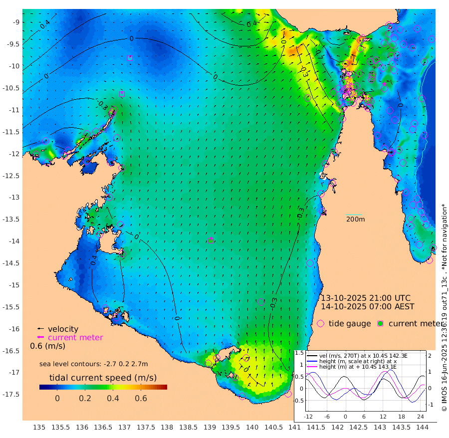 17cm/s -12T +3cm/s rms + 7cm/s -42T. ARA-GOC87 57m 34cm/s 9T +3cm/s rms + 2cm/s -2T. ARA-GOC87 60m 13cm/s 8T +2cm/s rms + 3cm/s 61T. ARA-GOC87 47m -13cm Daru -11cm Bobo Island -18cm Meer Island Barge -12cm Bramble Cay -3cm Unnamed Cay -19cm Pearce Cay -6cm Stephens Island 5cm Merrie England Shoals -3cm Mutacomal Reef -10cm Darnley Island Barge -16cm East Cay -11cm Yorke Island Barge -8cm Rennel Island -16cm Aureed Island -27cm Dungeness Reef -44cm Zagai Island -41cm Yam Island -110cm Dauan Island -90cm Saibai Island -105cm Phipi Reef -66cm Warrior Reef - West -69cm Mabuiag Island Barge -3cm Half Way Island -16cm Coconut Island -7cm Dugong Islet -26cm Poll Island -18cm Kirkcaldie Reef -41cm Suarji Island -21cm Sue Islet -99cm Hawkesbury Island -41cm Alert Patches -37cm Twin Island -113cm Badu Island -45cm St Pauls (Moa Island) -86cm Kubin (Moa Island) -55cm Ince Point -62cm Thursday Island -62cm Nardana Patches -87cm Turtle Head -75cm Round Island -105cm Goods Island -99cm Booby Island -89cm White Rocks Area -45cm Carpentaria -35cm Papou Point -79cm Bampfield Head -78cm Crab Island -93cm Red Wallis Island -95cm Packe Island 2cm Harrington Reef -92cm Herald Camp -5cm Sharp Point -68cm Red Island Point -42cm Possession Island -17cm Alpha Rock -22cm Frederick Point -4cm Wyborn Reef Light -8cm Tetley Island -27cm Triangle Reef 1cm Turtle Head Island -20cm Maclennan Cay -26cm Raine Island -6cm Mcsweeny Reef -7cm Collette Reef -18cm Shadwell Reef -5cm Hannibal Island -11cm Round Point -57cm Vrilya Point -5cm Cape Grenville -14cm Hicks Island -29cm Sir Charles Hardy Island -1cm Harvey Island -9cm Kay Reef -23cm Rocky Island -31cm Chapman Island -24cm Ham Reef -22cm Jubilee Reef -18cm Night Island -24cm Unnamed Reef No. 3 -20cm Morris Island -25cm 1st 3 Mile Opening -22cm Creech Reef -17cm Fife Island -28cm Eden Reef -14cm Stanley Island -10cm Normanby River -55cm Yabooma Island -79cm Hutchison River -57cm Elcho Island -53cm North West Crocodile Island -19cm Cape Wessel -36cm Stevens Island -39cm Guluwuru Island -35cm Hopeful Bay -23cm Auster Point -24cm Two Island Bay -69cm Cadell Strait -29cm Mallison Island -34cm Melville Bay (Gove Harbour) -32cm Truant Island -21cm Cape Arnhem 5cm Cape Grey 10cm Hawk Island 50cm Milner Bay (Groote Eylandt) 43cm Cape Beatrice 77cm West Island 79cm Centre Island 15cm Mornington Island 22cm West Wellesley Islands -10cm Bountiful Island 0cm Albert River Mouth 30cm Sweers Island -3cm Karumba -41cm Nassau River Offshore -67cm Christmas Creek -72cm Archer River -68cm Boyd Point -88cm Weipa (Humbug Point) -45cm Pennefather River -66cm Cullen Point