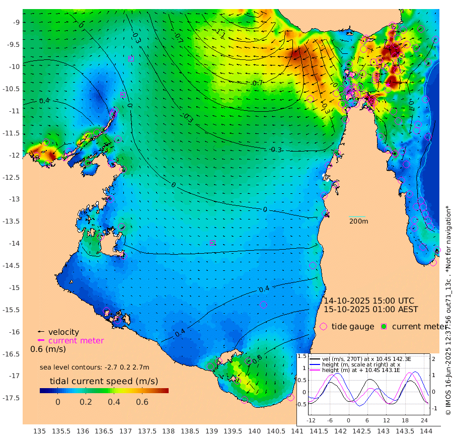 18cm/s -78T +3cm/s rms + 7cm/s -42T. ARA-GOC87 57m 19cm/s -98T +3cm/s rms + 2cm/s -2T. ARA-GOC87 60m 14cm/s -66T +2cm/s rms + 3cm/s 61T. ARA-GOC87 47m -76cm Daru -80cm Bobo Island -63cm Meer Island Barge -77cm Bramble Cay -89cm Unnamed Cay -80cm Pearce Cay -89cm Stephens Island -96cm Merrie England Shoals -87cm Mutacomal Reef -82cm Darnley Island Barge -72cm East Cay -80cm Yorke Island Barge -83cm Rennel Island -73cm Aureed Island -62cm Dungeness Reef -27cm Zagai Island -37cm Yam Island 41cm Dauan Island 25cm Saibai Island 42cm Phipi Reef -10cm Warrior Reef - West -2cm Mabuiag Island Barge -90cm Half Way Island -73cm Coconut Island -87cm Dugong Islet -57cm Poll Island -71cm Kirkcaldie Reef -33cm Suarji Island -59cm Sue Islet -31cm Hawkesbury Island -47cm Alert Patches -53cm Twin Island -3cm Badu Island -40cm St Pauls (Moa Island) -27cm Kubin (Moa Island) -35cm Ince Point -35cm Thursday Island -32cm Nardana Patches -20cm Turtle Head -29cm Round Island -19cm Goods Island -29cm Booby Island -31cm White Rocks Area -65cm Carpentaria -45cm Papou Point -55cm Bampfield Head -25cm Crab Island -30cm Red Wallis Island -27cm Packe Island -98cm Harrington Reef -34cm Herald Camp -7cm Sharp Point -29cm Red Island Point -44cm Possession Island -59cm Alpha Rock -70cm Frederick Point -88cm Wyborn Reef Light -83cm Tetley Island -51cm Triangle Reef -109cm Turtle Head Island -64cm Maclennan Cay -48cm Raine Island -84cm Mcsweeny Reef -78cm Collette Reef -58cm Shadwell Reef -86cm Hannibal Island -82cm Round Point -43cm Vrilya Point -80cm Cape Grenville -72cm Hicks Island -68cm Sir Charles Hardy Island -25cm Harvey Island -76cm Kay Reef -56cm Rocky Island -49cm Chapman Island -54cm Ham Reef -57cm Jubilee Reef -53cm Night Island -55cm Unnamed Reef No. 3 -61cm Morris Island -55cm 1st 3 Mile Opening -59cm Creech Reef -61cm Fife Island -62cm Eden Reef -68cm Stanley Island -76cm Normanby River 37cm Yabooma Island 57cm Hutchison River 54cm Elcho Island 56cm North West Crocodile Island -13cm Cape Wessel 22cm Stevens Island -8cm Guluwuru Island 27cm Hopeful Bay 0cm Auster Point -4cm Two Island Bay 26cm Cadell Strait -70cm Mallison Island 4cm Melville Bay (Gove Harbour) -8cm Truant Island 1cm Cape Arnhem 11cm Cape Grey 28cm Hawk Island 31cm Milner Bay (Groote Eylandt) 42cm Cape Beatrice 39cm West Island 39cm Centre Island 102cm Mornington Island 95cm West Wellesley Islands 143cm Bountiful Island 202cm Albert River Mouth 194cm Sweers Island 190cm Karumba 88cm Nassau River Offshore 53cm Christmas Creek 19cm Archer River -4cm Boyd Point 14cm Weipa (Humbug Point) -23cm Pennefather River -24cm Cullen Point