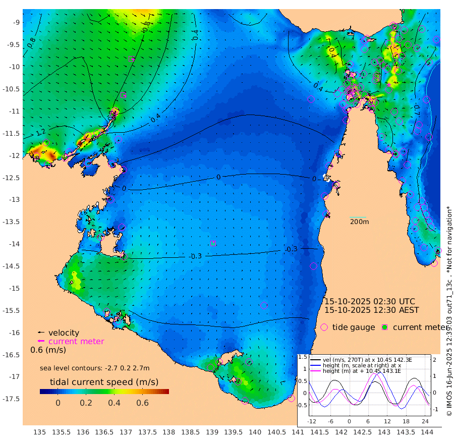 28cm/s 121T +3cm/s rms + 7cm/s -42T. ARA-GOC87 57m 18cm/s 19T +3cm/s rms + 2cm/s -2T. ARA-GOC87 60m 32cm/s 116T +2cm/s rms + 3cm/s 61T. ARA-GOC87 47m -72cm Daru -70cm Bobo Island -61cm Meer Island Barge -74cm Bramble Cay -79cm Unnamed Cay -76cm Pearce Cay -83cm Stephens Island -88cm Merrie England Shoals -76cm Mutacomal Reef -78cm Darnley Island Barge -68cm East Cay -73cm Yorke Island Barge -75cm Rennel Island -72cm Aureed Island -60cm Dungeness Reef -15cm Zagai Island -17cm Yam Island 27cm Dauan Island 29cm Saibai Island 6cm Phipi Reef -23cm Warrior Reef - West 43cm Mabuiag Island Barge -77cm Half Way Island -54cm Coconut Island -75cm Dugong Islet -39cm Poll Island -50cm Kirkcaldie Reef -17cm Suarji Island -36cm Sue Islet 83cm Hawkesbury Island -10cm Alert Patches -11cm Twin Island 82cm Badu Island -1cm St Pauls (Moa Island) 56cm Kubin (Moa Island) 15cm Ince Point 29cm Thursday Island 27cm Nardana Patches 40cm Turtle Head 71cm Round Island 70cm Goods Island 88cm Booby Island 80cm White Rocks Area 79cm Carpentaria 9cm Papou Point 108cm Bampfield Head 75cm Crab Island 77cm Red Wallis Island 51cm Packe Island -75cm Harrington Reef 79cm Herald Camp -6cm Sharp Point 40cm Red Island Point 23cm Possession Island -18cm Alpha Rock -36cm Frederick Point -58cm Wyborn Reef Light -49cm Tetley Island -46cm Triangle Reef -59cm Turtle Head Island -58cm Maclennan Cay -46cm Raine Island -77cm Mcsweeny Reef -75cm Collette Reef -59cm Shadwell Reef -84cm Hannibal Island -76cm Round Point 63cm Vrilya Point -75cm Cape Grenville -66cm Hicks Island -63cm Sir Charles Hardy Island -24cm Harvey Island -70cm Kay Reef -57cm Rocky Island -50cm Chapman Island -49cm Ham Reef -54cm Jubilee Reef -56cm Night Island -53cm Unnamed Reef No. 3 -61cm Morris Island -50cm 1st 3 Mile Opening -58cm Creech Reef -70cm Fife Island -67cm Eden Reef -67cm Stanley Island -74cm Normanby River 142cm Yabooma Island 156cm Hutchison River 139cm Elcho Island 133cm North West Crocodile Island 94cm Cape Wessel 123cm Stevens Island 62cm Guluwuru Island 110cm Hopeful Bay 104cm Auster Point 105cm Two Island Bay 117cm Cadell Strait -8cm Mallison Island 60cm Melville Bay (Gove Harbour) 70cm Truant Island 36cm Cape Arnhem 11cm Cape Grey -5cm Hawk Island -19cm Milner Bay (Groote Eylandt) -42cm Cape Beatrice -76cm West Island -70cm Centre Island -114cm Mornington Island -121cm West Wellesley Islands -119cm Bountiful Island -120cm Albert River Mouth -124cm Sweers Island -123cm Karumba -103cm Nassau River Offshore -72cm Christmas Creek -17cm Archer River 8cm Boyd Point 12cm Weipa (Humbug Point) 21cm Pennefather River 54cm Cullen Point