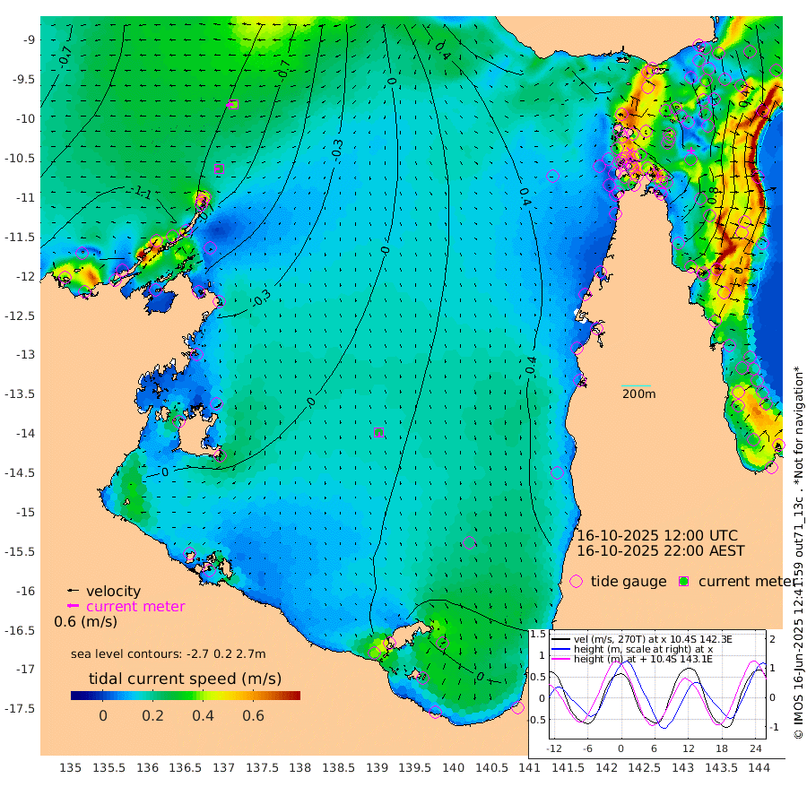 29cm/s -95T +3cm/s rms + 7cm/s -42T. ARA-GOC87 57m 29cm/s 176T +3cm/s rms + 2cm/s -2T. ARA-GOC87 60m 38cm/s -99T +2cm/s rms + 3cm/s 61T. ARA-GOC87 47m 117cm Daru 99cm Bobo Island 21cm Meer Island Barge 47cm Bramble Cay 86cm Unnamed Cay 93cm Pearce Cay 76cm Stephens Island 83cm Merrie England Shoals 116cm Mutacomal Reef 60cm Darnley Island Barge 27cm East Cay 85cm Yorke Island Barge 103cm Rennel Island 95cm Aureed Island 124cm Dungeness Reef 125cm Zagai Island 141cm Yam Island 130cm Dauan Island 114cm Saibai Island 143cm Phipi Reef 143cm Warrior Reef - West 118cm Mabuiag Island Barge 106cm Half Way Island 119cm Coconut Island 122cm Dugong Islet 135cm Poll Island 143cm Kirkcaldie Reef 148cm Suarji Island 126cm Sue Islet 112cm Hawkesbury Island 150cm Alert Patches 148cm Twin Island 110cm Badu Island 157cm St Pauls (Moa Island) 120cm Kubin (Moa Island) 140cm Ince Point 134cm Thursday Island 135cm Nardana Patches 122cm Turtle Head 100cm Round Island 98cm Goods Island 85cm Booby Island 88cm White Rocks Area 56cm Carpentaria 132cm Papou Point 65cm Bampfield Head 72cm Crab Island 93cm Red Wallis Island 118cm Packe Island 135cm Harrington Reef 98cm Herald Camp 50cm Sharp Point 113cm Red Island Point 121cm Possession Island 129cm Alpha Rock 142cm Frederick Point 115cm Wyborn Reef Light 123cm Tetley Island 36cm Triangle Reef 121cm Turtle Head Island 33cm Maclennan Cay 1cm Raine Island 82cm Mcsweeny Reef 64cm Collette Reef 26cm Shadwell Reef 65cm Hannibal Island 50cm Round Point 68cm Vrilya Point 44cm Cape Grenville 35cm Hicks Island 31cm Sir Charles Hardy Island 15cm Harvey Island 21cm Kay Reef 10cm Rocky Island -3cm Chapman Island -1cm Ham Reef 7cm Jubilee Reef 15cm Night Island 3cm Unnamed Reef No. 3 10cm Morris Island 5cm 1st 3 Mile Opening 10cm Creech Reef 12cm Fife Island -6cm Eden Reef 8cm Stanley Island 10cm Normanby River -126cm Yabooma Island -137cm Hutchison River -130cm Elcho Island -114cm North West Crocodile Island -108cm Cape Wessel -127cm Stevens Island -99cm Guluwuru Island -126cm Hopeful Bay -112cm Auster Point -108cm Two Island Bay -124cm Cadell Strait -154cm Mallison Island -89cm Melville Bay (Gove Harbour) -97cm Truant Island -64cm Cape Arnhem -46cm Cape Grey -35cm Hawk Island -37cm Milner Bay (Groote Eylandt) -15cm Cape Beatrice 11cm West Island 4cm Centre Island 24cm Mornington Island 20cm West Wellesley Islands 15cm Bountiful Island -13cm Albert River Mouth -31cm Sweers Island 10cm Karumba 55cm Nassau River Offshore 64cm Christmas Creek 49cm Archer River 51cm Boyd Point 49cm Weipa (Humbug Point) 53cm Pennefather River 59cm Cullen Point