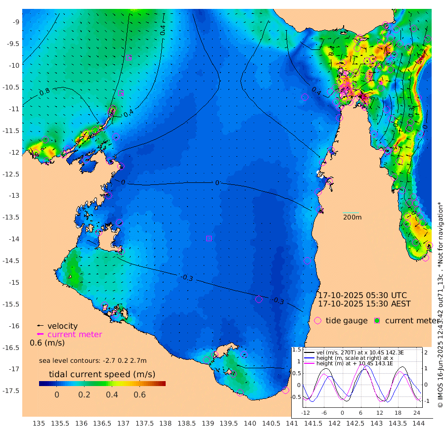 19cm/s 124T +3cm/s rms + 7cm/s -42T. ARA-GOC87 57m 5cm/s 86T +3cm/s rms + 2cm/s -2T. ARA-GOC87 60m 20cm/s 121T +2cm/s rms + 3cm/s 61T. ARA-GOC87 47m -100cm Daru -97cm Bobo Island -27cm Meer Island Barge -53cm Bramble Cay -79cm Unnamed Cay -90cm Pearce Cay -78cm Stephens Island -83cm Merrie England Shoals -97cm Mutacomal Reef -63cm Darnley Island Barge -35cm East Cay -78cm Yorke Island Barge -92cm Rennel Island -90cm Aureed Island -95cm Dungeness Reef -77cm Zagai Island -77cm Yam Island -30cm Dauan Island -21cm Saibai Island -60cm Phipi Reef -81cm Warrior Reef - West -15cm Mabuiag Island Barge -92cm Half Way Island -98cm Coconut Island -97cm Dugong Islet -91cm Poll Island -98cm Kirkcaldie Reef -88cm Suarji Island -79cm Sue Islet 51cm Hawkesbury Island -72cm Alert Patches -76cm Twin Island 33cm Badu Island -74cm St Pauls (Moa Island) 12cm Kubin (Moa Island) -44cm Ince Point -24cm Thursday Island -29cm Nardana Patches -1cm Turtle Head 29cm Round Island 45cm Goods Island 71cm Booby Island 56cm White Rocks Area 71cm Carpentaria -60cm Papou Point 84cm Bampfield Head 53cm Crab Island 58cm Red Wallis Island 20cm Packe Island -116cm Harrington Reef 62cm Herald Camp -30cm Sharp Point -6cm Red Island Point -36cm Possession Island -68cm Alpha Rock -91cm Frederick Point -93cm Wyborn Reef Light -91cm Tetley Island -27cm Triangle Reef -97cm Turtle Head Island -30cm Maclennan Cay -5cm Raine Island -77cm Mcsweeny Reef -65cm Collette Reef -27cm Shadwell Reef -70cm Hannibal Island -55cm Round Point 51cm Vrilya Point -47cm Cape Grenville -39cm Hicks Island -21cm Sir Charles Hardy Island -16cm Harvey Island -27cm Kay Reef -13cm Rocky Island 0cm Chapman Island 0cm Ham Reef -10cm Jubilee Reef -20cm Night Island -6cm Unnamed Reef No. 3 -17cm Morris Island -7cm 1st 3 Mile Opening -14cm Creech Reef -26cm Fife Island -7cm Eden Reef -15cm Stanley Island -23cm Normanby River 110cm Yabooma Island 104cm Hutchison River 96cm Elcho Island 88cm North West Crocodile Island 76cm Cape Wessel 89cm Stevens Island 55cm Guluwuru Island 92cm Hopeful Bay 78cm Auster Point 83cm Two Island Bay 85cm Cadell Strait 90cm Mallison Island 49cm Melville Bay (Gove Harbour) 57cm Truant Island 29cm Cape Arnhem 1cm Cape Grey -13cm Hawk Island -29cm Milner Bay (Groote Eylandt) -46cm Cape Beatrice -74cm West Island -72cm Centre Island -99cm Mornington Island -95cm West Wellesley Islands -88cm Bountiful Island -109cm Albert River Mouth -114cm Sweers Island -116cm Karumba -71cm Nassau River Offshore -36cm Christmas Creek 9cm Archer River 27cm Boyd Point 36cm Weipa (Humbug Point) 20cm Pennefather River 55cm Cullen Point