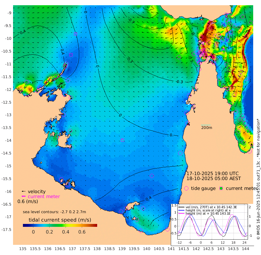 5cm/s 44T +3cm/s rms + 7cm/s -42T. ARA-GOC87 57m 14cm/s -57T +3cm/s rms + 2cm/s -2T. ARA-GOC87 60m 10cm/s 53T +2cm/s rms + 3cm/s 61T. ARA-GOC87 47m -99cm Daru -88cm Bobo Island -10cm Meer Island Barge -30cm Bramble Cay -71cm Unnamed Cay -72cm Pearce Cay -60cm Stephens Island -61cm Merrie England Shoals -98cm Mutacomal Reef -48cm Darnley Island Barge -12cm East Cay -75cm Yorke Island Barge -84cm Rennel Island -83cm Aureed Island -105cm Dungeness Reef -127cm Zagai Island -138cm Yam Island -115cm Dauan Island -112cm Saibai Island -110cm Phipi Reef -128cm Warrior Reef - West -115cm Mabuiag Island Barge -89cm Half Way Island -108cm Coconut Island -106cm Dugong Islet -125cm Poll Island -124cm Kirkcaldie Reef -143cm Suarji Island -120cm Sue Islet -93cm Hawkesbury Island -133cm Alert Patches -139cm Twin Island -88cm Badu Island -151cm St Pauls (Moa Island) -111cm Kubin (Moa Island) -128cm Ince Point -121cm Thursday Island -123cm Nardana Patches -98cm Turtle Head -102cm Round Island -75cm Goods Island -67cm Booby Island -72cm White Rocks Area -71cm Carpentaria -132cm Papou Point -89cm Bampfield Head -49cm Crab Island -73cm Red Wallis Island -97cm Packe Island -120cm Harrington Reef -99cm Herald Camp -46cm Sharp Point -87cm Red Island Point -121cm Possession Island -129cm Alpha Rock -131cm Frederick Point -110cm Wyborn Reef Light -119cm Tetley Island -25cm Triangle Reef -114cm Turtle Head Island -21cm Maclennan Cay 14cm Raine Island -65cm Mcsweeny Reef -47cm Collette Reef -11cm Shadwell Reef -47cm Hannibal Island -31cm Round Point -44cm Vrilya Point -27cm Cape Grenville -21cm Hicks Island -22cm Sir Charles Hardy Island -10cm Harvey Island -4cm Kay Reef 5cm Rocky Island 18cm Chapman Island 13cm Ham Reef 7cm Jubilee Reef 0cm Night Island 14cm Unnamed Reef No. 3 7cm Morris Island 7cm 1st 3 Mile Opening 6cm Creech Reef 10cm Fife Island 23cm Eden Reef 10cm Stanley Island 8cm Normanby River 54cm Yabooma Island 62cm Hutchison River 64cm Elcho Island 58cm North West Crocodile Island 19cm Cape Wessel 50cm Stevens Island 21cm Guluwuru Island 58cm Hopeful Bay 31cm Auster Point 22cm Two Island Bay 53cm Cadell Strait 64cm Mallison Island 23cm Melville Bay (Gove Harbour) 17cm Truant Island 14cm Cape Arnhem 18cm Cape Grey 23cm Hawk Island 27cm Milner Bay (Groote Eylandt) 32cm Cape Beatrice 21cm West Island 24cm Centre Island 63cm Mornington Island 65cm West Wellesley Islands 80cm Bountiful Island 129cm Albert River Mouth 134cm Sweers Island 116cm Karumba 48cm Nassau River Offshore 23cm Christmas Creek 14cm Archer River -15cm Boyd Point -3cm Weipa (Humbug Point) -13cm Pennefather River -42cm Cullen Point