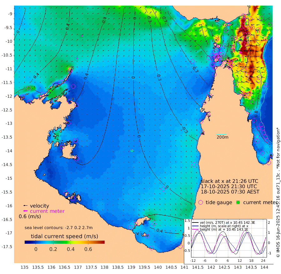 18cm/s 63T +3cm/s rms + 7cm/s -42T. ARA-GOC87 57m 17cm/s -17T +3cm/s rms + 2cm/s -2T. ARA-GOC87 60m 24cm/s 61T +2cm/s rms + 3cm/s 61T. ARA-GOC87 47m 46cm Daru 64cm Bobo Island 71cm Meer Island Barge 83cm Bramble Cay 68cm Unnamed Cay 72cm Pearce Cay 79cm Stephens Island 82cm Merrie England Shoals 51cm Mutacomal Reef 73cm Darnley Island Barge 83cm East Cay 56cm Yorke Island Barge 59cm Rennel Island 58cm Aureed Island 24cm Dungeness Reef -30cm Zagai Island -40cm Yam Island -111cm Dauan Island -103cm Saibai Island -82cm Phipi Reef -41cm Warrior Reef - West -104cm Mabuiag Island Barge 54cm Half Way Island 35cm Coconut Island 38cm Dugong Islet -3cm Poll Island 2cm Kirkcaldie Reef -35cm Suarji Island -12cm Sue Islet -134cm Hawkesbury Island -47cm Alert Patches -42cm Twin Island -124cm Badu Island -63cm St Pauls (Moa Island) -108cm Kubin (Moa Island) -74cm Ince Point -87cm Thursday Island -86cm Nardana Patches -94cm Turtle Head -107cm Round Island -113cm Goods Island -130cm Booby Island -112cm White Rocks Area -114cm Carpentaria -51cm Papou Point -119cm Bampfield Head -106cm Crab Island -123cm Red Wallis Island -106cm Packe Island 48cm Harrington Reef -136cm Herald Camp -22cm Sharp Point -81cm Red Island Point -62cm Possession Island -30cm Alpha Rock -5cm Frederick Point 42cm Wyborn Reef Light 27cm Tetley Island 48cm Triangle Reef 46cm Turtle Head Island 61cm Maclennan Cay 65cm Raine Island 67cm Mcsweeny Reef 70cm Collette Reef 63cm Shadwell Reef 83cm Hannibal Island 88cm Round Point -102cm Vrilya Point 78cm Cape Grenville 75cm Hicks Island 64cm Sir Charles Hardy Island 24cm Harvey Island 83cm Kay Reef 70cm Rocky Island 70cm Chapman Island 64cm Ham Reef 67cm Jubilee Reef 65cm Night Island 70cm Unnamed Reef No. 3 78cm Morris Island 64cm 1st 3 Mile Opening 70cm Creech Reef 86cm Fife Island 91cm Eden Reef 80cm Stanley Island 94cm Normanby River 43cm Yabooma Island 64cm Hutchison River 54cm Elcho Island 44cm North West Crocodile Island 54cm Cape Wessel 62cm Stevens Island 66cm Guluwuru Island 58cm Hopeful Bay 54cm Auster Point 42cm Two Island Bay 68cm Cadell Strait 114cm Mallison Island 60cm Melville Bay (Gove Harbour) 61cm Truant Island 45cm Cape Arnhem 45cm Cape Grey 41cm Hawk Island 42cm Milner Bay (Groote Eylandt) 41cm Cape Beatrice 31cm West Island 32cm Centre Island 53cm Mornington Island 56cm West Wellesley Islands 53cm Bountiful Island 78cm Albert River Mouth 95cm Sweers Island 68cm Karumba 20cm Nassau River Offshore -9cm Christmas Creek -34cm Archer River -57cm Boyd Point -60cm Weipa (Humbug Point) -57cm Pennefather River -99cm Cullen Point