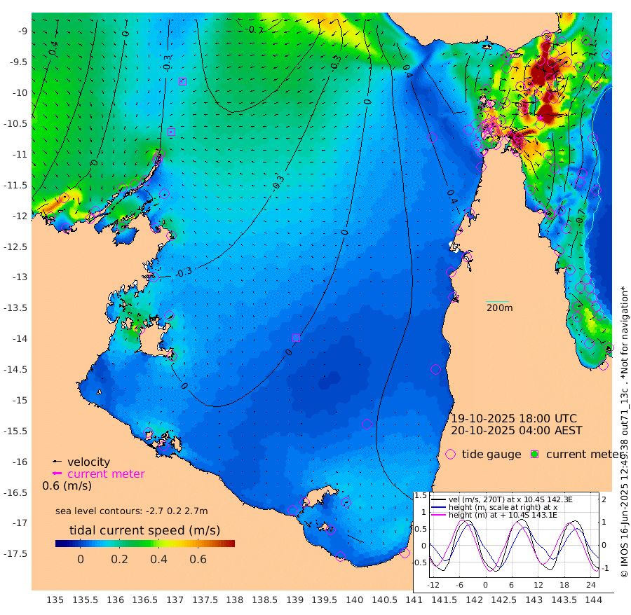 14cm/s -95T +3cm/s rms + 7cm/s -42T. ARA-GOC87 57m 7cm/s -56T +3cm/s rms + 2cm/s -2T. ARA-GOC87 60m 13cm/s -103T +2cm/s rms + 3cm/s 61T. ARA-GOC87 47m -141cm Daru -148cm Bobo Island -81cm Meer Island Barge -111cm Bramble Cay -135cm Unnamed Cay -140cm Pearce Cay -131cm Stephens Island -133cm Merrie England Shoals -145cm Mutacomal Reef -117cm Darnley Island Barge -94cm East Cay -127cm Yorke Island Barge -135cm Rennel Island -139cm Aureed Island -128cm Dungeness Reef -111cm Zagai Island -110cm Yam Island -49cm Dauan Island -51cm Saibai Island -59cm Phipi Reef -109cm Warrior Reef - West -37cm Mabuiag Island Barge -132cm Half Way Island -139cm Coconut Island -136cm Dugong Islet -124cm Poll Island -121cm Kirkcaldie Reef -117cm Suarji Island -111cm Sue Islet 16cm Hawkesbury Island -89cm Alert Patches -102cm Twin Island 4cm Badu Island -96cm St Pauls (Moa Island) -25cm Kubin (Moa Island) -65cm Ince Point -46cm Thursday Island -51cm Nardana Patches -24cm Turtle Head -13cm Round Island 12cm Goods Island 40cm Booby Island 18cm White Rocks Area 34cm Carpentaria -86cm Papou Point 11cm Bampfield Head 47cm Crab Island 28cm Red Wallis Island -16cm Packe Island -154cm Harrington Reef 11cm Herald Camp -24cm Sharp Point -16cm Red Island Point -62cm Possession Island -103cm Alpha Rock -124cm Frederick Point -148cm Wyborn Reef Light -144cm Tetley Island -80cm Triangle Reef -142cm Turtle Head Island -84cm Maclennan Cay -55cm Raine Island -127cm Mcsweeny Reef -113cm Collette Reef -75cm Shadwell Reef -125cm Hannibal Island -115cm Round Point 59cm Vrilya Point -101cm Cape Grenville -95cm Hicks Island -97cm Sir Charles Hardy Island -31cm Harvey Island -87cm Kay Reef -70cm Rocky Island -62cm Chapman Island -58cm Ham Reef -65cm Jubilee Reef -66cm Night Island -62cm Unnamed Reef No. 3 -73cm Morris Island -59cm 1st 3 Mile Opening -66cm Creech Reef -76cm Fife Island -74cm Eden Reef -70cm Stanley Island -86cm Normanby River -25cm Yabooma Island -47cm Hutchison River -25cm Elcho Island -19cm North West Crocodile Island -62cm Cape Wessel -43cm Stevens Island -78cm Guluwuru Island -30cm Hopeful Bay -45cm Auster Point -43cm Two Island Bay -53cm Cadell Strait -109cm Mallison Island -65cm Melville Bay (Gove Harbour) -73cm Truant Island -51cm Cape Arnhem -31cm Cape Grey -21cm Hawk Island -1cm Milner Bay (Groote Eylandt) 5cm Cape Beatrice 18cm West Island 23cm Centre Island 20cm Mornington Island 19cm West Wellesley Islands 17cm Bountiful Island 49cm Albert River Mouth 50cm Sweers Island 52cm Karumba 19cm Nassau River Offshore 15cm Christmas Creek 33cm Archer River 26cm Boyd Point 33cm Weipa (Humbug Point) 49cm Pennefather River 44cm Cullen Point