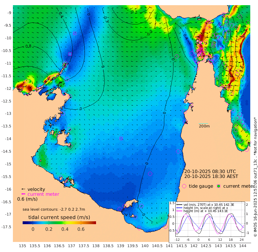 7cm/s -123T +3cm/s rms + 7cm/s -42T. ARA-GOC87 57m 6cm/s -152T +3cm/s rms + 2cm/s -2T. ARA-GOC87 60m 7cm/s -142T +2cm/s rms + 3cm/s 61T. ARA-GOC87 47m -33cm Daru -35cm Bobo Island 26cm Meer Island Barge 22cm Bramble Cay 0cm Unnamed Cay -20cm Pearce Cay -2cm Stephens Island 6cm Merrie England Shoals -18cm Mutacomal Reef 0cm Darnley Island Barge 31cm East Cay -20cm Yorke Island Barge -17cm Rennel Island -33cm Aureed Island -40cm Dungeness Reef -70cm Zagai Island -57cm Yam Island -58cm Dauan Island -59cm Saibai Island -67cm Phipi Reef -69cm Warrior Reef - West -39cm Mabuiag Island Barge -22cm Half Way Island -45cm Coconut Island -30cm Dugong Islet -52cm Poll Island -48cm Kirkcaldie Reef -67cm Suarji Island -53cm Sue Islet 33cm Hawkesbury Island -51cm Alert Patches -55cm Twin Island 10cm Badu Island -66cm St Pauls (Moa Island) 4cm Kubin (Moa Island) -38cm Ince Point -25cm Thursday Island -29cm Nardana Patches -1cm Turtle Head 15cm Round Island 35cm Goods Island 45cm Booby Island 46cm White Rocks Area 23cm Carpentaria -55cm Papou Point 49cm Bampfield Head 27cm Crab Island 39cm Red Wallis Island 20cm Packe Island -44cm Harrington Reef 41cm Herald Camp -30cm Sharp Point -9cm Red Island Point -34cm Possession Island -42cm Alpha Rock -50cm Frederick Point -28cm Wyborn Reef Light -35cm Tetley Island 14cm Triangle Reef -33cm Turtle Head Island 25cm Maclennan Cay 41cm Raine Island -6cm Mcsweeny Reef 3cm Collette Reef 26cm Shadwell Reef 7cm Hannibal Island 25cm Round Point 21cm Vrilya Point 27cm Cape Grenville 26cm Hicks Island 38cm Sir Charles Hardy Island 6cm Harvey Island 44cm Kay Reef 43cm Rocky Island 49cm Chapman Island 45cm Ham Reef 41cm Jubilee Reef 31cm Night Island 44cm Unnamed Reef No. 3 44cm Morris Island 42cm 1st 3 Mile Opening 40cm Creech Reef 40cm Fife Island 56cm Eden Reef 49cm Stanley Island 51cm Normanby River 124cm Yabooma Island 118cm Hutchison River 107cm Elcho Island 103cm North West Crocodile Island 56cm Cape Wessel 94cm Stevens Island 30cm Guluwuru Island 95cm Hopeful Bay 66cm Auster Point 67cm Two Island Bay 75cm Cadell Strait 43cm Mallison Island 35cm Melville Bay (Gove Harbour) 34cm Truant Island 12cm Cape Arnhem 2cm Cape Grey -5cm Hawk Island -13cm Milner Bay (Groote Eylandt) -14cm Cape Beatrice -31cm West Island -39cm Centre Island -29cm Mornington Island -21cm West Wellesley Islands 5cm Bountiful Island -8cm Albert River Mouth -16cm Sweers Island -14cm Karumba 0cm Nassau River Offshore 11cm Christmas Creek 25cm Archer River 23cm Boyd Point 41cm Weipa (Humbug Point) 7cm Pennefather River 29cm Cullen Point