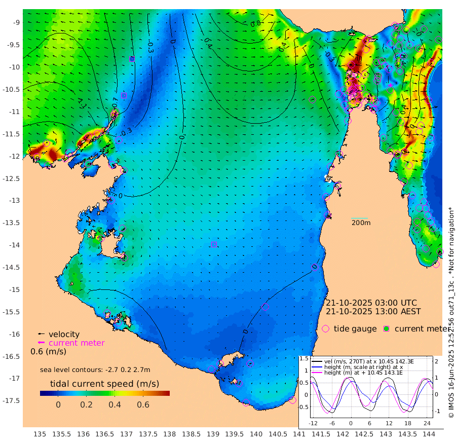 6cm/s 67T +3cm/s rms + 7cm/s -42T. ARA-GOC87 57m 8cm/s 86T +3cm/s rms + 2cm/s -2T. ARA-GOC87 60m 3cm/s 53T +2cm/s rms + 3cm/s 61T. ARA-GOC87 47m 54cm Daru 54cm Bobo Island -3cm Meer Island Barge -1cm Bramble Cay 24cm Unnamed Cay 38cm Pearce Cay 23cm Stephens Island 13cm Merrie England Shoals 40cm Mutacomal Reef 25cm Darnley Island Barge -7cm East Cay 45cm Yorke Island Barge 38cm Rennel Island 58cm Aureed Island 64cm Dungeness Reef 100cm Zagai Island 87cm Yam Island 92cm Dauan Island 97cm Saibai Island 92cm Phipi Reef 97cm Warrior Reef - West 71cm Mabuiag Island Barge 41cm Half Way Island 69cm Coconut Island 54cm Dugong Islet 77cm Poll Island 71cm Kirkcaldie Reef 105cm Suarji Island 80cm Sue Islet -7cm Hawkesbury Island 79cm Alert Patches 83cm Twin Island 23cm Badu Island 95cm St Pauls (Moa Island) 26cm Kubin (Moa Island) 67cm Ince Point 57cm Thursday Island 60cm Nardana Patches 35cm Turtle Head 17cm Round Island 2cm Goods Island -7cm Booby Island -6cm White Rocks Area 21cm Carpentaria 80cm Papou Point 6cm Bampfield Head -6cm Crab Island -4cm Red Wallis Island 13cm Packe Island 67cm Harrington Reef 2cm Herald Camp 35cm Sharp Point 30cm Red Island Point 61cm Possession Island 70cm Alpha Rock 75cm Frederick Point 50cm Wyborn Reef Light 57cm Tetley Island 8cm Triangle Reef 49cm Turtle Head Island 2cm Maclennan Cay -19cm Raine Island 28cm Mcsweeny Reef 18cm Collette Reef -3cm Shadwell Reef 15cm Hannibal Island -6cm Round Point -6cm Vrilya Point -4cm Cape Grenville -3cm Hicks Island 0cm Sir Charles Hardy Island 1cm Harvey Island -18cm Kay Reef -17cm Rocky Island -22cm Chapman Island -20cm Ham Reef -16cm Jubilee Reef -12cm Night Island -20cm Unnamed Reef No. 3 -20cm Morris Island -13cm 1st 3 Mile Opening -14cm Creech Reef -21cm Fife Island -30cm Eden Reef -24cm Stanley Island -28cm Normanby River -147cm Yabooma Island -148cm Hutchison River -139cm Elcho Island -138cm North West Crocodile Island -58cm Cape Wessel -119cm Stevens Island -25cm Guluwuru Island -118cm Hopeful Bay -79cm Auster Point -87cm Two Island Bay -107cm Cadell Strait -19cm Mallison Island -35cm Melville Bay (Gove Harbour) -32cm Truant Island -9cm Cape Arnhem -1cm Cape Grey -6cm Hawk Island 7cm Milner Bay (Groote Eylandt) 2cm Cape Beatrice 23cm West Island 30cm Centre Island 10cm Mornington Island 10cm West Wellesley Islands -4cm Bountiful Island -29cm Albert River Mouth -26cm Sweers Island -29cm Karumba -4cm Nassau River Offshore 1cm Christmas Creek -12cm Archer River 0cm Boyd Point -14cm Weipa (Humbug Point) -6cm Pennefather River -4cm Cullen Point