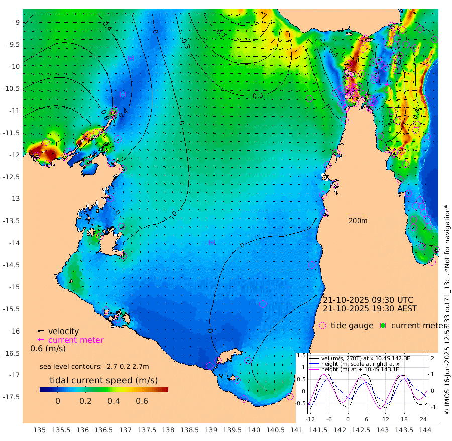 9cm/s -106T +3cm/s rms + 7cm/s -42T. ARA-GOC87 57m 9cm/s -136T +3cm/s rms + 2cm/s -2T. ARA-GOC87 60m 8cm/s -121T +2cm/s rms + 3cm/s 61T. ARA-GOC87 47m 4cm Daru 0cm Bobo Island 37cm Meer Island Barge 44cm Bramble Cay 30cm Unnamed Cay 13cm Pearce Cay 27cm Stephens Island 37cm Merrie England Shoals 18cm Mutacomal Reef 22cm Darnley Island Barge 45cm East Cay 7cm Yorke Island Barge 15cm Rennel Island -2cm Aureed Island -6cm Dungeness Reef -41cm Zagai Island -27cm Yam Island -40cm Dauan Island -46cm Saibai Island -39cm Phipi Reef -37cm Warrior Reef - West -28cm Mabuiag Island Barge 10cm Half Way Island -11cm Coconut Island 3cm Dugong Islet -20cm Poll Island -15cm Kirkcaldie Reef -36cm Suarji Island -25cm Sue Islet 26cm Hawkesbury Island -26cm Alert Patches -28cm Twin Island 10cm Badu Island -39cm St Pauls (Moa Island) 8cm Kubin (Moa Island) -20cm Ince Point -14cm Thursday Island -16cm Nardana Patches 5cm Turtle Head 12cm Round Island 28cm Goods Island 27cm Booby Island 35cm White Rocks Area -6cm Carpentaria -32cm Papou Point 26cm Bampfield Head 12cm Crab Island 24cm Red Wallis Island 20cm Packe Island -6cm Harrington Reef 26cm Herald Camp -22cm Sharp Point -3cm Red Island Point -21cm Possession Island -18cm Alpha Rock -19cm Frederick Point 7cm Wyborn Reef Light -1cm Tetley Island 26cm Triangle Reef 1cm Turtle Head Island 36cm Maclennan Cay 46cm Raine Island 22cm Mcsweeny Reef 27cm Collette Reef 37cm Shadwell Reef 33cm Hannibal Island 47cm Round Point 0cm Vrilya Point 45cm Cape Grenville 42cm Hicks Island 50cm Sir Charles Hardy Island 11cm Harvey Island 56cm Kay Reef 50cm Rocky Island 53cm Chapman Island 48cm Ham Reef 47cm Jubilee Reef 39cm Night Island 49cm Unnamed Reef No. 3 53cm Morris Island 47cm 1st 3 Mile Opening 46cm Creech Reef 50cm Fife Island 62cm Eden Reef 56cm Stanley Island 62cm Normanby River 135cm Yabooma Island 139cm Hutchison River 122cm Elcho Island 120cm North West Crocodile Island 58cm Cape Wessel 106cm Stevens Island 37cm Guluwuru Island 102cm Hopeful Bay 71cm Auster Point 71cm Two Island Bay 90cm Cadell Strait 28cm Mallison Island 43cm Melville Bay (Gove Harbour) 40cm Truant Island 17cm Cape Arnhem 10cm Cape Grey 5cm Hawk Island -5cm Milner Bay (Groote Eylandt) -2cm Cape Beatrice -19cm West Island -30cm Centre Island -4cm Mornington Island 2cm West Wellesley Islands 36cm Bountiful Island 34cm Albert River Mouth 22cm Sweers Island 27cm Karumba 20cm Nassau River Offshore 21cm Christmas Creek 21cm Archer River 13cm Boyd Point 31cm Weipa (Humbug Point) -5cm Pennefather River 9cm Cullen Point