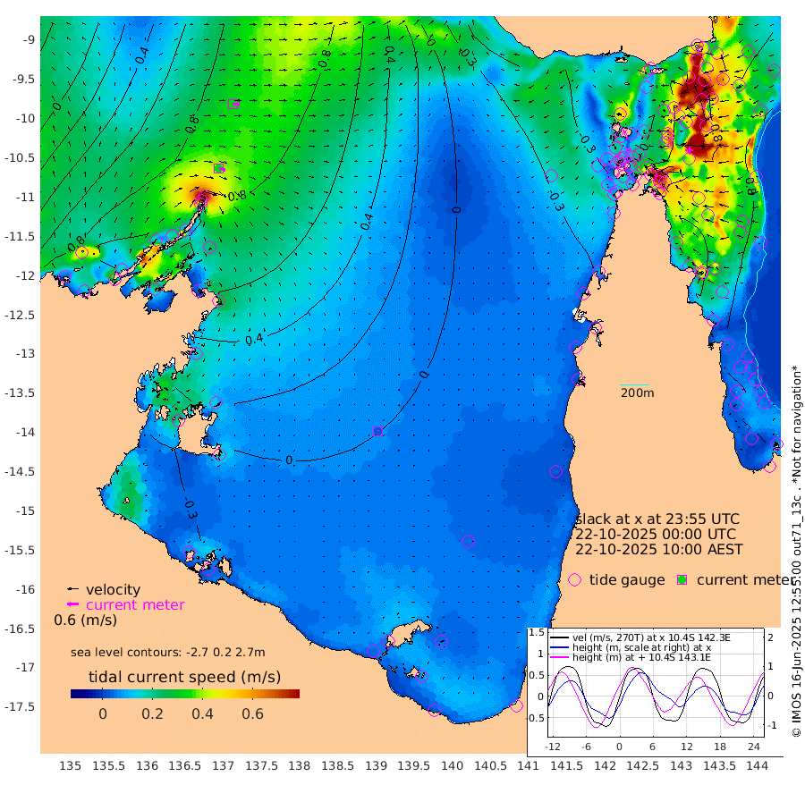 34cm/s 105T +3cm/s rms + 7cm/s -42T. ARA-GOC87 57m 2cm/s 10T +3cm/s rms + 2cm/s -2T. ARA-GOC87 60m 34cm/s 95T +2cm/s rms + 3cm/s 61T. ARA-GOC87 47m 102cm Daru 114cm Bobo Island 75cm Meer Island Barge 100cm Bramble Cay 104cm Unnamed Cay 113cm Pearce Cay 102cm Stephens Island 110cm Merrie England Shoals 104cm Mutacomal Reef 93cm Darnley Island Barge 89cm East Cay 92cm Yorke Island Barge 100cm Rennel Island 98cm Aureed Island 86cm Dungeness Reef 63cm Zagai Island 53cm Yam Island 14cm Dauan Island 16cm Saibai Island 43cm Phipi Reef 59cm Warrior Reef - West 13cm Mabuiag Island Barge 90cm Half Way Island 103cm Coconut Island 83cm Dugong Islet 73cm Poll Island 74cm Kirkcaldie Reef 58cm Suarji Island 64cm Sue Islet 7cm Hawkesbury Island 54cm Alert Patches 56cm Twin Island 20cm Badu Island 43cm St Pauls (Moa Island) 14cm Kubin (Moa Island) 32cm Ince Point 22cm Thursday Island 24cm Nardana Patches 19cm Turtle Head 18cm Round Island 6cm Goods Island -14cm Booby Island -3cm White Rocks Area -36cm Carpentaria 47cm Papou Point 10cm Bampfield Head -8cm Crab Island -14cm Red Wallis Island 11cm Packe Island 101cm Harrington Reef -12cm Herald Camp 5cm Sharp Point 28cm Red Island Point 43cm Possession Island 51cm Alpha Rock 77cm Frederick Point 107cm Wyborn Reef Light 101cm Tetley Island 71cm Triangle Reef 111cm Turtle Head Island 69cm Maclennan Cay 66cm Raine Island 98cm Mcsweeny Reef 96cm Collette Reef 75cm Shadwell Reef 106cm Hannibal Island 107cm Round Point -21cm Vrilya Point 87cm Cape Grenville 86cm Hicks Island 76cm Sir Charles Hardy Island 26cm Harvey Island 85cm Kay Reef 72cm Rocky Island 73cm Chapman Island 64cm Ham Reef 68cm Jubilee Reef 63cm Night Island 69cm Unnamed Reef No. 3 76cm Morris Island 63cm 1st 3 Mile Opening 68cm Creech Reef 76cm Fife Island 83cm Eden Reef 72cm Stanley Island 83cm Normanby River 104cm Yabooma Island 145cm Hutchison River 112cm Elcho Island 101cm North West Crocodile Island 94cm Cape Wessel 120cm Stevens Island 111cm Guluwuru Island 105cm Hopeful Bay 100cm Auster Point 87cm Two Island Bay 138cm Cadell Strait 152cm Mallison Island 99cm Melville Bay (Gove Harbour) 106cm Truant Island 69cm Cape Arnhem 43cm Cape Grey 30cm Hawk Island -10cm Milner Bay (Groote Eylandt) -19cm Cape Beatrice -64cm West Island -60cm Centre Island -33cm Mornington Island -43cm West Wellesley Islands -41cm Bountiful Island -43cm Albert River Mouth -37cm Sweers Island -37cm Karumba -27cm Nassau River Offshore -15cm Christmas Creek -2cm Archer River -11cm Boyd Point -11cm Weipa (Humbug Point) -5cm Pennefather River -27cm Cullen Point