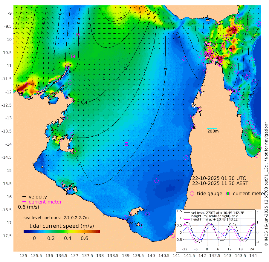 29cm/s 100T +3cm/s rms + 7cm/s -42T. ARA-GOC87 57m 6cm/s 120T +3cm/s rms + 2cm/s -2T. ARA-GOC87 60m 26cm/s 89T +2cm/s rms + 3cm/s 61T. ARA-GOC87 47m 116cm Daru 125cm Bobo Island 58cm Meer Island Barge 80cm Bramble Cay 98cm Unnamed Cay 115cm Pearce Cay 96cm Stephens Island 96cm Merrie England Shoals 110cm Mutacomal Reef 90cm Darnley Island Barge 66cm East Cay 103cm Yorke Island Barge 103cm Rennel Island 116cm Aureed Island 108cm Dungeness Reef 114cm Zagai Island 98cm Yam Island 74cm Dauan Island 80cm Saibai Island 93cm Phipi Reef 112cm Warrior Reef - West 54cm Mabuiag Island Barge 97cm Half Way Island 124cm Coconut Island 100cm Dugong Islet 107cm Poll Island 102cm Kirkcaldie Reef 109cm Suarji Island 102cm Sue Islet -4cm Hawkesbury Island 89cm Alert Patches 95cm Twin Island 23cm Badu Island 93cm St Pauls (Moa Island) 24cm Kubin (Moa Island) 64cm Ince Point 48cm Thursday Island 52cm Nardana Patches 31cm Turtle Head 17cm Round Island -3cm Goods Island -27cm Booby Island -17cm White Rocks Area -26cm Carpentaria 84cm Papou Point -3cm Bampfield Head -21cm Crab Island -21cm Red Wallis Island 12cm Packe Island 120cm Harrington Reef -15cm Herald Camp 27cm Sharp Point 35cm Red Island Point 66cm Possession Island 85cm Alpha Rock 107cm Frederick Point 118cm Wyborn Reef Light 117cm Tetley Island 63cm Triangle Reef 116cm Turtle Head Island 56cm Maclennan Cay 39cm Raine Island 96cm Mcsweeny Reef 88cm Collette Reef 57cm Shadwell Reef 95cm Hannibal Island 83cm Round Point -31cm Vrilya Point 67cm Cape Grenville 66cm Hicks Island 62cm Sir Charles Hardy Island 21cm Harvey Island 57cm Kay Reef 47cm Rocky Island 46cm Chapman Island 40cm Ham Reef 44cm Jubilee Reef 43cm Night Island 43cm Unnamed Reef No. 3 48cm Morris Island 39cm 1st 3 Mile Opening 44cm Creech Reef 49cm Fife Island 48cm Eden Reef 42cm Stanley Island 49cm Normanby River -13cm Yabooma Island 19cm Hutchison River -1cm Elcho Island -9cm North West Crocodile Island 41cm Cape Wessel 20cm Stevens Island 77cm Guluwuru Island 10cm Hopeful Bay 29cm Auster Point 16cm Two Island Bay 46cm Cadell Strait 138cm Mallison Island 60cm Melville Bay (Gove Harbour) 68cm Truant Island 52cm Cape Arnhem 33cm Cape Grey 22cm Hawk Island -7cm Milner Bay (Groote Eylandt) -16cm Cape Beatrice -39cm West Island -33cm Centre Island -18cm Mornington Island -26cm West Wellesley Islands -32cm Bountiful Island -51cm Albert River Mouth -45cm Sweers Island -45cm Karumba -18cm Nassau River Offshore -8cm Christmas Creek -10cm Archer River -10cm Boyd Point -20cm Weipa (Humbug Point) -15cm Pennefather River -30cm Cullen Point