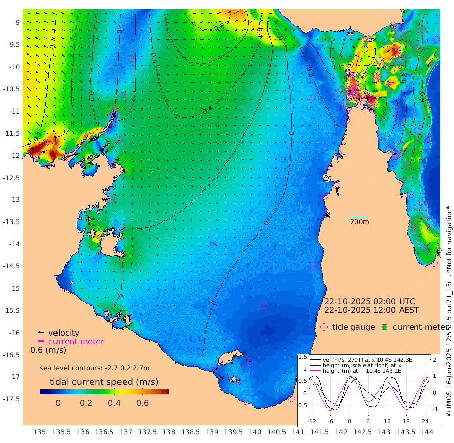 24cm/s 98T +3cm/s rms + 7cm/s -42T. ARA-GOC87 57m 8cm/s 123T +3cm/s rms + 2cm/s -2T. ARA-GOC87 60m 21cm/s 87T +2cm/s rms + 3cm/s 61T. ARA-GOC87 47m 107cm Daru 115cm Bobo Island 46cm Meer Island Barge 64cm Bramble Cay 85cm Unnamed Cay 102cm Pearce Cay 83cm Stephens Island 80cm Merrie England Shoals 99cm Mutacomal Reef 79cm Darnley Island Barge 51cm East Cay 95cm Yorke Island Barge 92cm Rennel Island 108cm Aureed Island 103cm Dungeness Reef 119cm Zagai Island 102cm Yam Island 86cm Dauan Island 93cm Saibai Island 100cm Phipi Reef 117cm Warrior Reef - West 63cm Mabuiag Island Barge 88cm Half Way Island 117cm Coconut Island 94cm Dugong Islet 106cm Poll Island 100cm Kirkcaldie Reef 115cm Suarji Island 104cm Sue Islet -5cm Hawkesbury Island 92cm Alert Patches 98cm Twin Island 24cm Badu Island 99cm St Pauls (Moa Island) 26cm Kubin (Moa Island) 69cm Ince Point 53cm Thursday Island 58cm Nardana Patches 33cm Turtle Head 18cm Round Island -2cm Goods Island -24cm Booby Island -17cm White Rocks Area -15cm Carpentaria 88cm Papou Point -3cm Bampfield Head -20cm Crab Island -18cm Red Wallis Island 13cm Packe Island 113cm Harrington Reef -12cm Herald Camp 31cm Sharp Point 36cm Red Island Point 68cm Possession Island 87cm Alpha Rock 106cm Frederick Point 108cm Wyborn Reef Light 109cm Tetley Island 54cm Triangle Reef 104cm Turtle Head Island 46cm Maclennan Cay 27cm Raine Island 84cm Mcsweeny Reef 76cm Collette Reef 45cm Shadwell Reef 80cm Hannibal Island 65cm Round Point -27cm Vrilya Point 53cm Cape Grenville 52cm Hicks Island 51cm Sir Charles Hardy Island 17cm Harvey Island 41cm Kay Reef 34cm Rocky Island 32cm Chapman Island 28cm Ham Reef 32cm Jubilee Reef 32cm Night Island 31cm Unnamed Reef No. 3 33cm Morris Island 27cm 1st 3 Mile Opening 32cm Creech Reef 34cm Fife Island 31cm Eden Reef 27cm Stanley Island 32cm Normanby River -55cm Yabooma Island -31cm Hutchison River -43cm Elcho Island -50cm North West Crocodile Island 16cm Cape Wessel -20cm Stevens Island 55cm Guluwuru Island -27cm Hopeful Bay -1cm Auster Point -13cm Two Island Bay 6cm Cadell Strait 115cm Mallison Island 38cm Melville Bay (Gove Harbour) 45cm Truant Island 39cm Cape Arnhem 25cm Cape Grey 15cm Hawk Island -6cm Milner Bay (Groote Eylandt) -14cm Cape Beatrice -27cm West Island -21cm Centre Island -12cm Mornington Island -18cm West Wellesley Islands -27cm Bountiful Island -51cm Albert River Mouth -46cm Sweers Island -46cm Karumba -14cm Nassau River Offshore -4cm Christmas Creek -9cm Archer River -7cm Boyd Point -18cm Weipa (Humbug Point) -13cm Pennefather River -24cm Cullen Point
