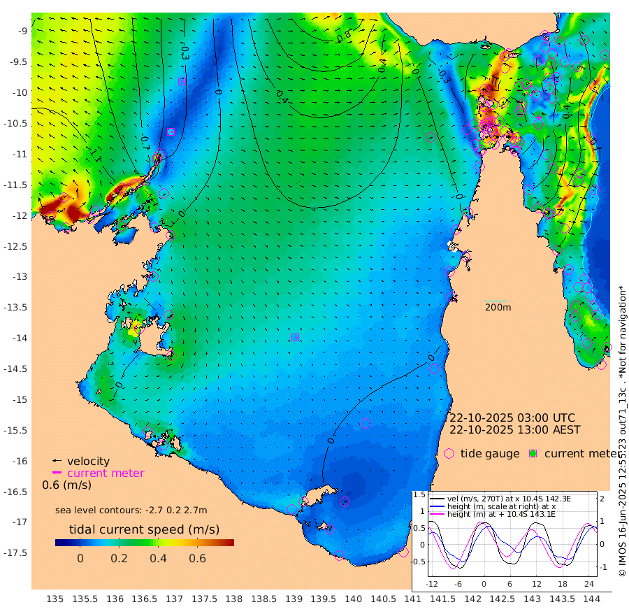 12cm/s 92T +3cm/s rms + 7cm/s -42T. ARA-GOC87 57m 10cm/s 125T +3cm/s rms + 2cm/s -2T. ARA-GOC87 60m 8cm/s 80T +2cm/s rms + 3cm/s 61T. ARA-GOC87 47m 72cm Daru 77cm Bobo Island 18cm Meer Island Barge 24cm Bramble Cay 46cm Unnamed Cay 62cm Pearce Cay 45cm Stephens Island 37cm Merrie England Shoals 61cm Mutacomal Reef 47cm Darnley Island Barge 17cm East Cay 65cm Yorke Island Barge 57cm Rennel Island 78cm Aureed Island 78cm Dungeness Reef 108cm Zagai Island 93cm Yam Island 96cm Dauan Island 104cm Saibai Island 99cm Phipi Reef 108cm Warrior Reef - West 72cm Mabuiag Island Barge 57cm Half Way Island 86cm Coconut Island 68cm Dugong Islet 87cm Poll Island 81cm Kirkcaldie Reef 108cm Suarji Island 91cm Sue Islet -1cm Hawkesbury Island 85cm Alert Patches 89cm Twin Island 28cm Badu Island 97cm St Pauls (Moa Island) 29cm Kubin (Moa Island) 69cm Ince Point 57cm Thursday Island 61cm Nardana Patches 37cm Turtle Head 20cm Round Island 4cm Goods Island -8cm Booby Island -7cm White Rocks Area 14cm Carpentaria 82cm Papou Point 6cm Bampfield Head -7cm Crab Island -4cm Red Wallis Island 17cm Packe Island 82cm Harrington Reef 2cm Herald Camp 34cm Sharp Point 36cm Red Island Point 64cm Possession Island 76cm Alpha Rock 86cm Frederick Point 70cm Wyborn Reef Light 76cm Tetley Island 29cm Triangle Reef 67cm Turtle Head Island 21cm Maclennan Cay 1cm Raine Island 49cm Mcsweeny Reef 41cm Collette Reef 18cm Shadwell Reef 40cm Hannibal Island 22cm Round Point -8cm Vrilya Point 19cm Cape Grenville 19cm Hicks Island 23cm Sir Charles Hardy Island 7cm Harvey Island 7cm Kay Reef 6cm Rocky Island 4cm Chapman Island 3cm Ham Reef 6cm Jubilee Reef 7cm Night Island 4cm Unnamed Reef No. 3 3cm Morris Island 4cm 1st 3 Mile Opening 7cm Creech Reef 3cm Fife Island -3cm Eden Reef -2cm Stanley Island -3cm Normanby River -130cm Yabooma Island -124cm Hutchison River -121cm Elcho Island -123cm North West Crocodile Island -38cm Cape Wessel -97cm Stevens Island 1cm Guluwuru Island -96cm Hopeful Bay -60cm Auster Point -70cm Two Island Bay -76cm Cadell Strait 49cm Mallison Island -13cm Melville Bay (Gove Harbour) -8cm Truant Island 6cm Cape Arnhem 4cm Cape Grey -2cm Hawk Island -5cm Milner Bay (Groote Eylandt) -11cm Cape Beatrice -2cm West Island 5cm Centre Island -1cm Mornington Island -3cm West Wellesley Islands -16cm Bountiful Island -49cm Albert River Mouth -45cm Sweers Island -44cm Karumba -5cm Nassau River Offshore 6cm Christmas Creek -3cm Archer River 6cm Boyd Point -8cm Weipa (Humbug Point) -4cm Pennefather River -5cm Cullen Point